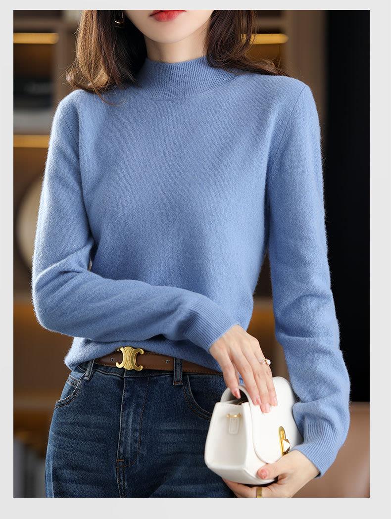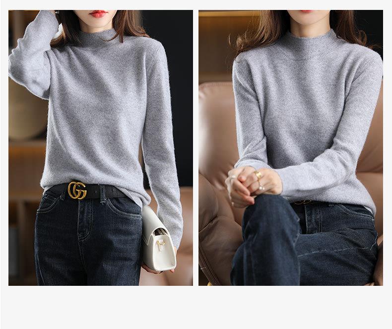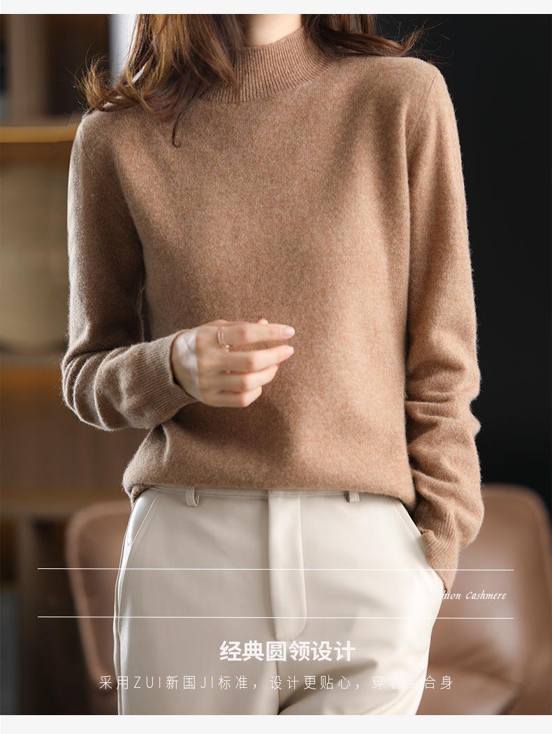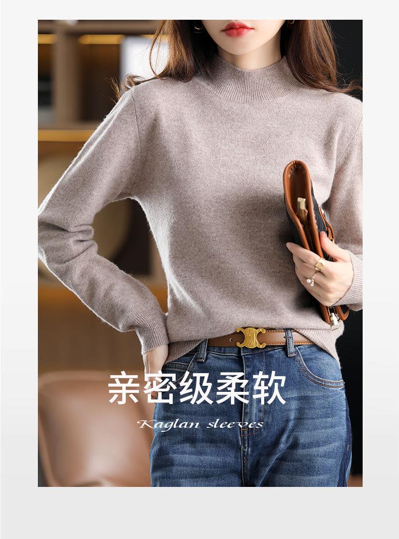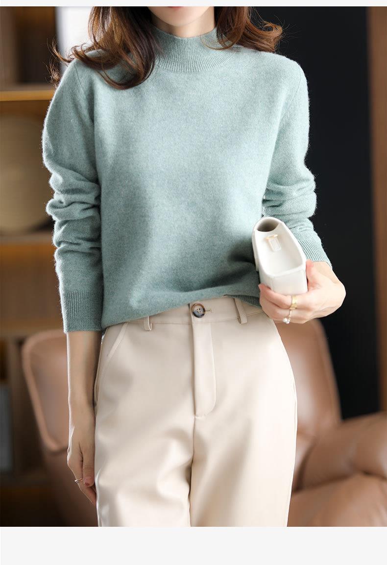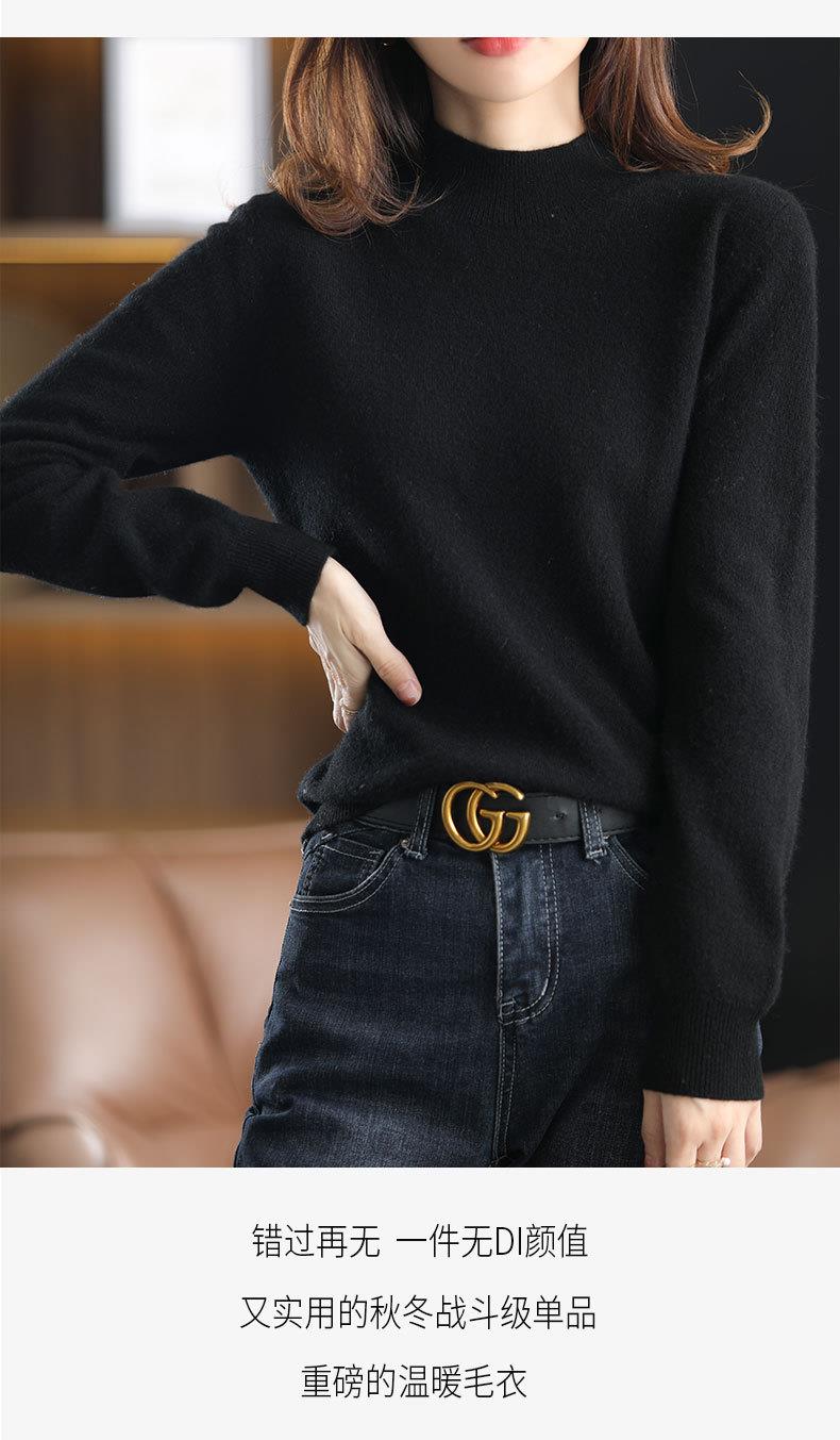 新品半高领针织衫女秋冬短款套头纯色宽松毛衣加厚打底衫一件代发