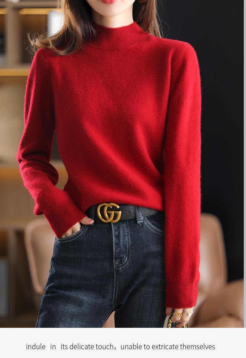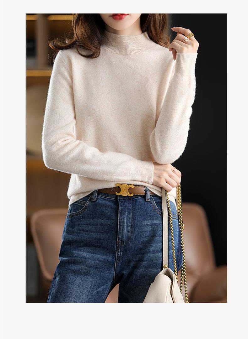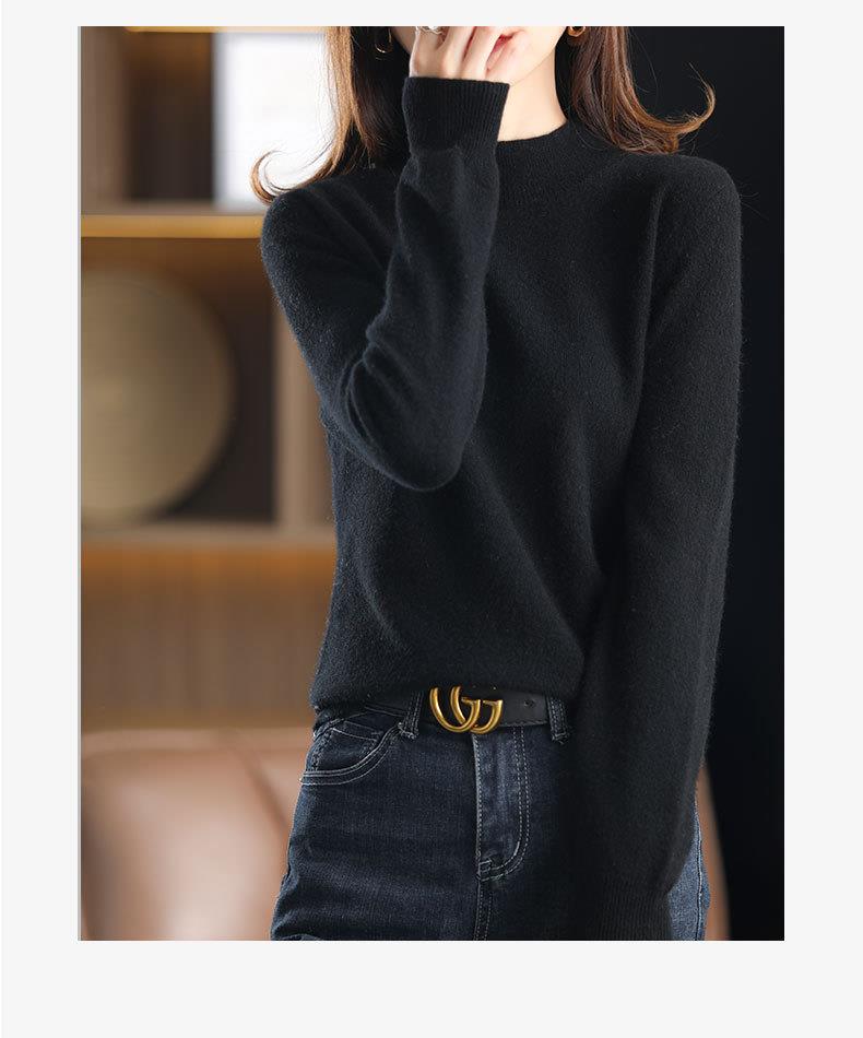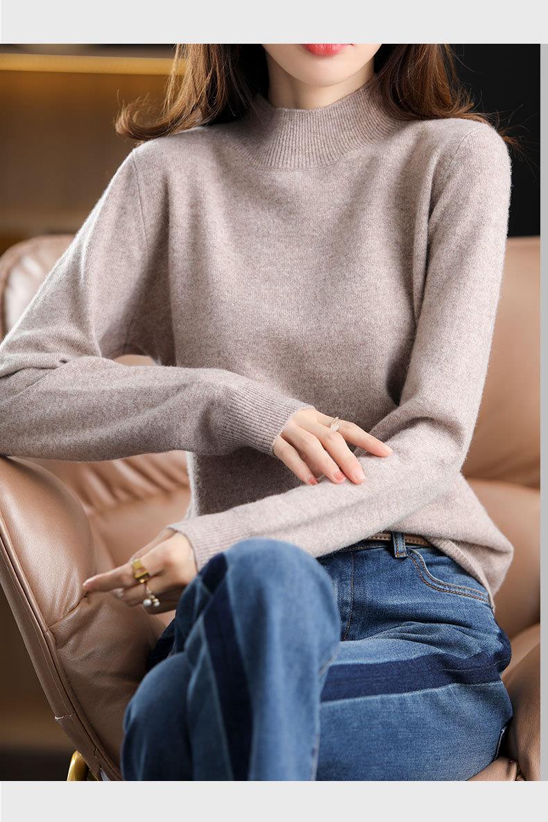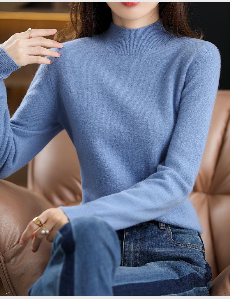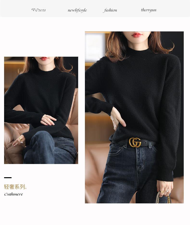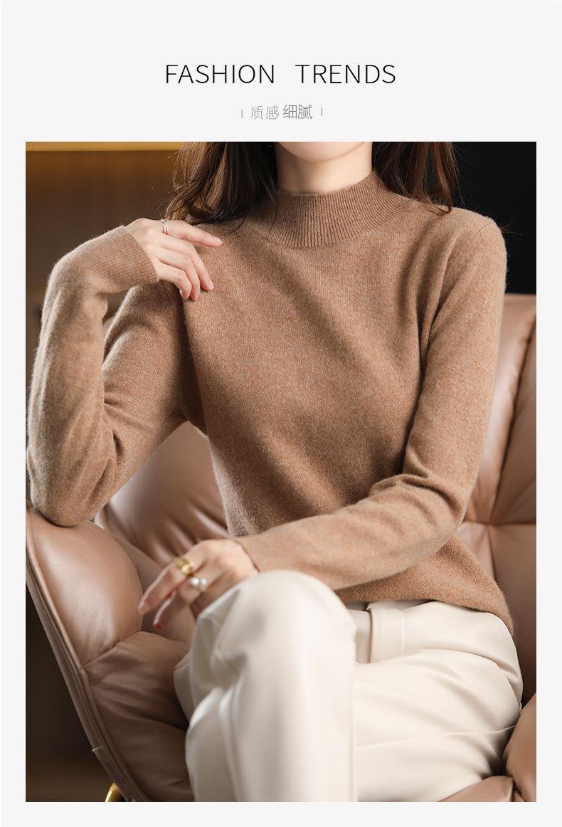 新品半高领针织衫女秋冬短款套头纯色宽松毛衣加厚打底衫一件代发