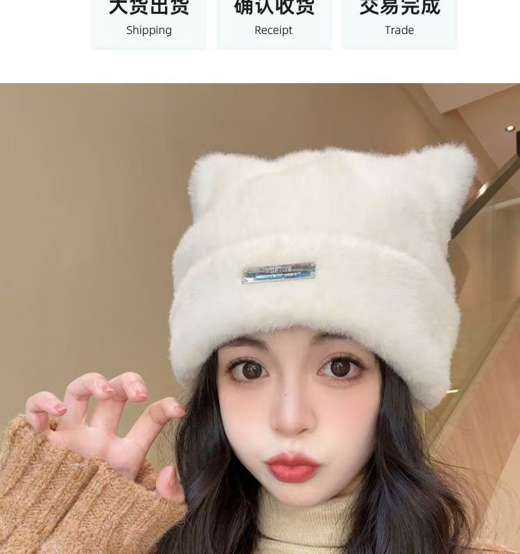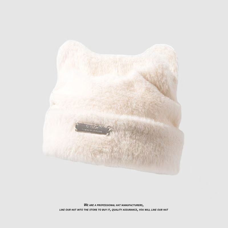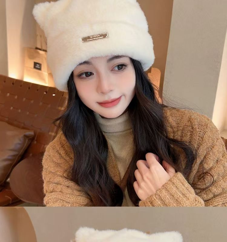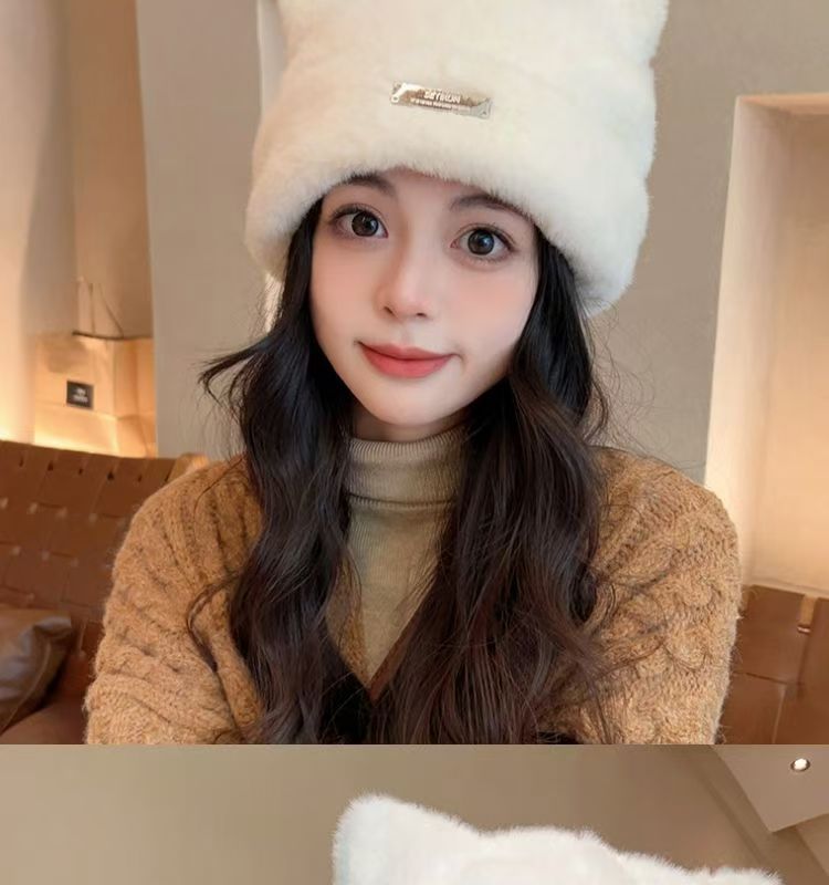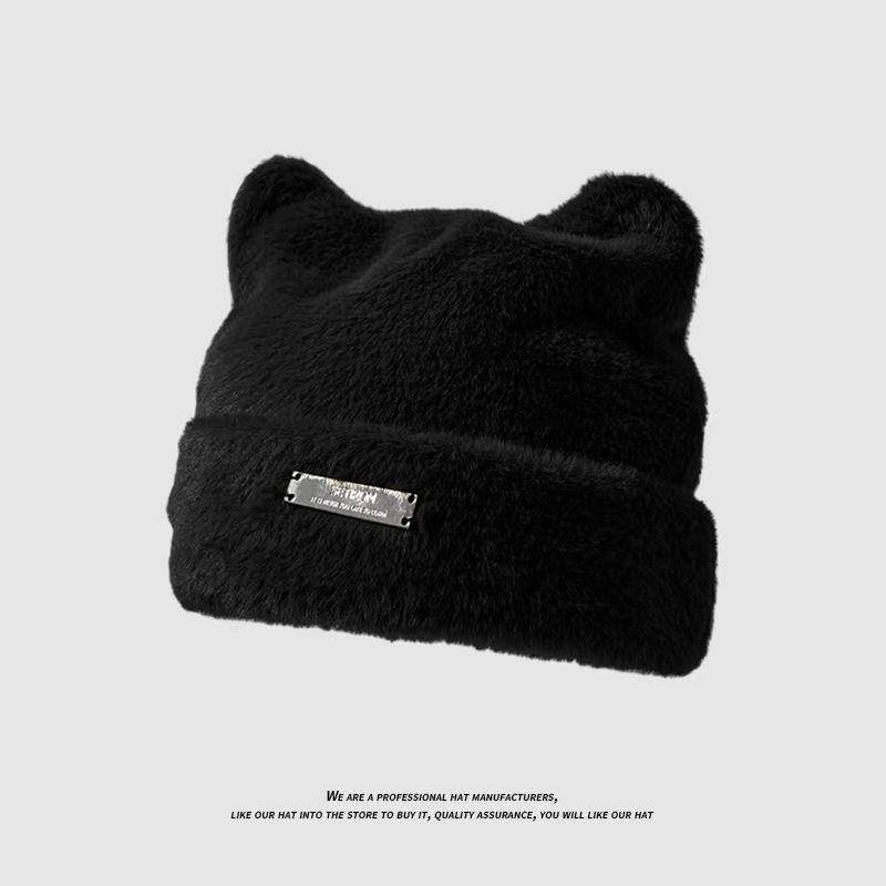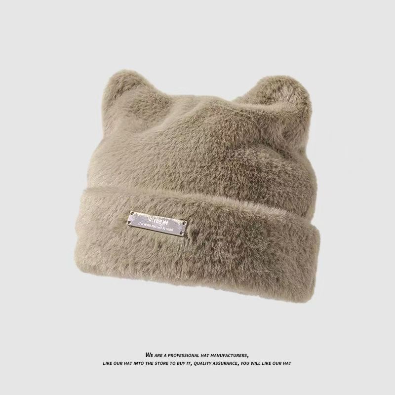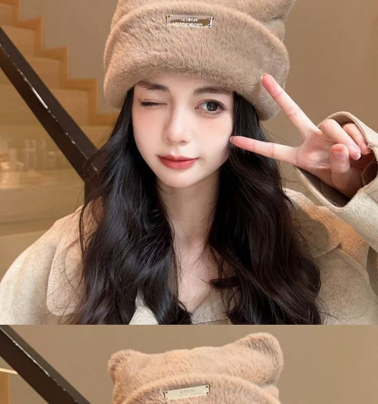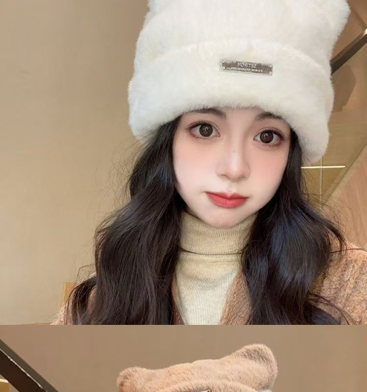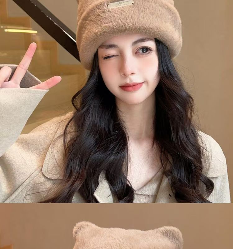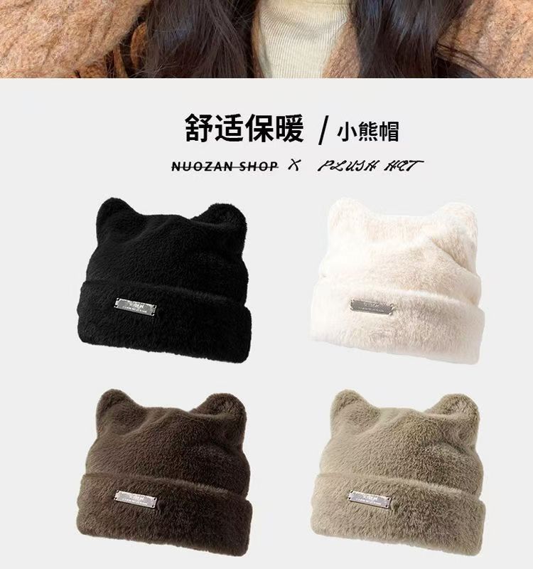 【软糯可爱!奶乎乎小熊帽】秋冬小熊耳朵毛绒帽子女加厚保暖护耳毛线帽大头围百搭包头针织帽。ry