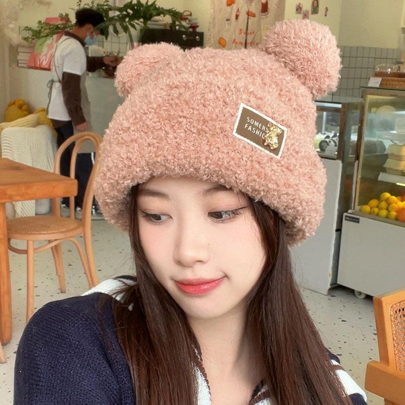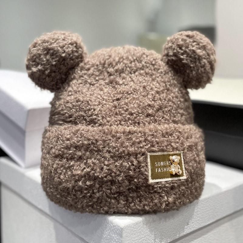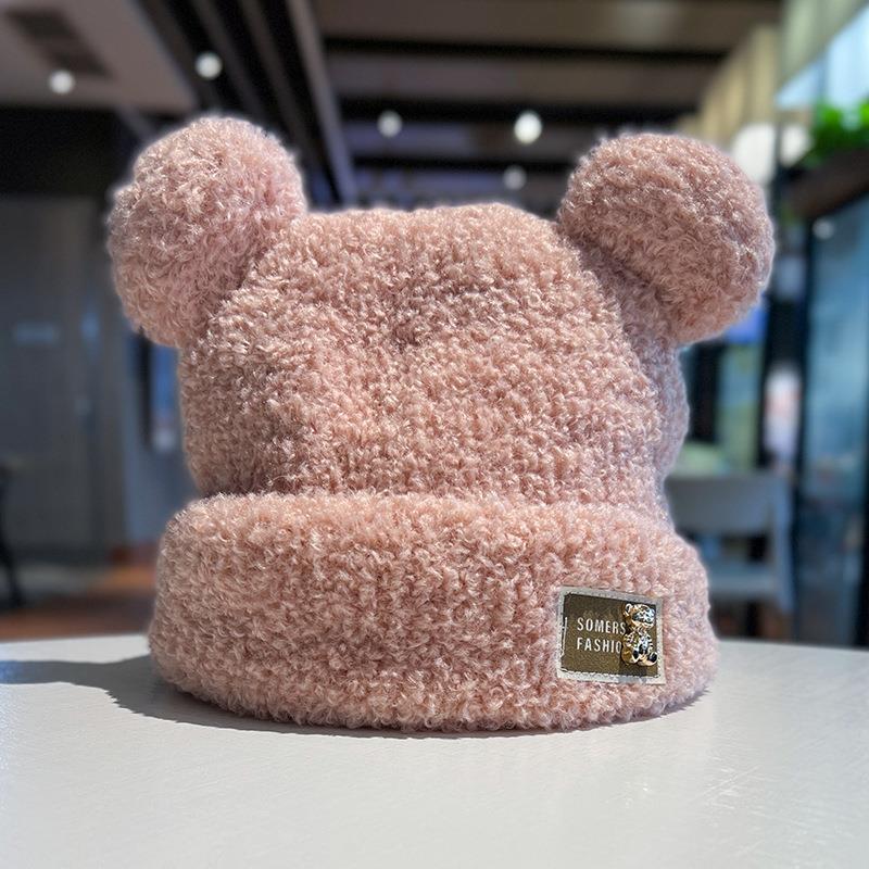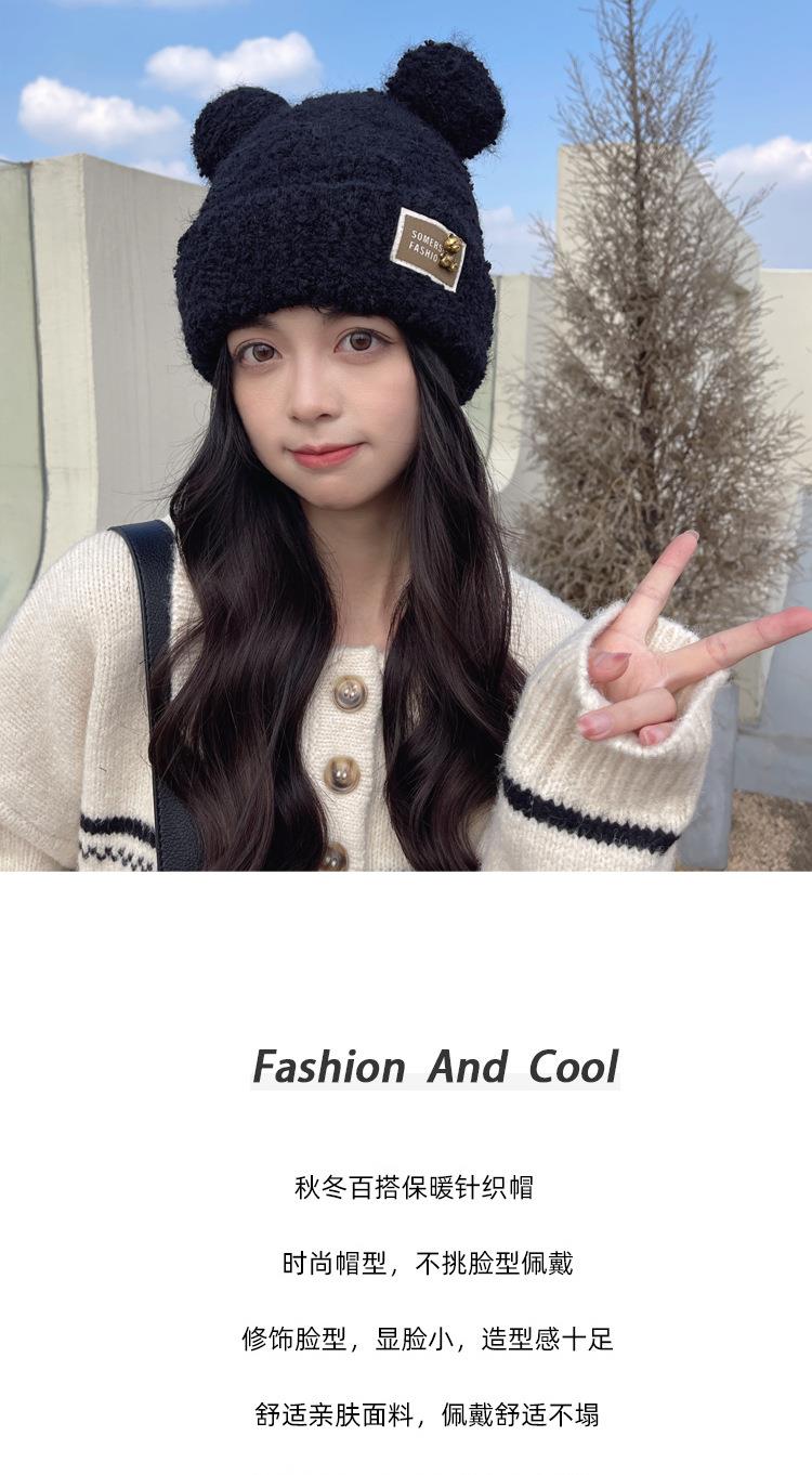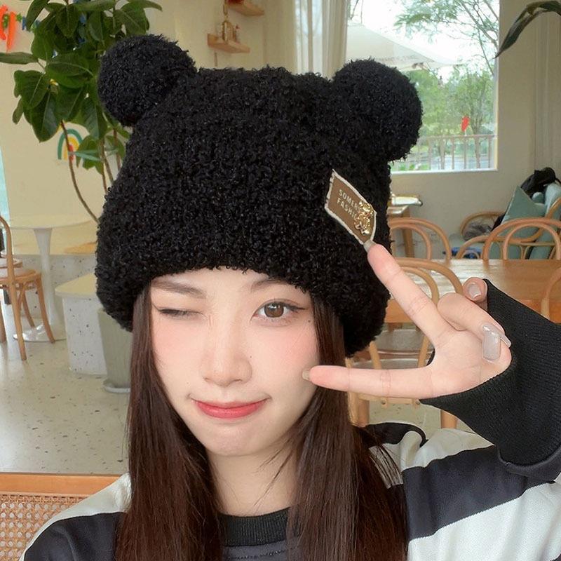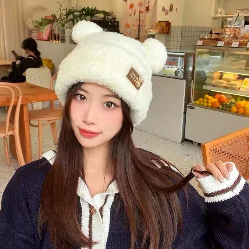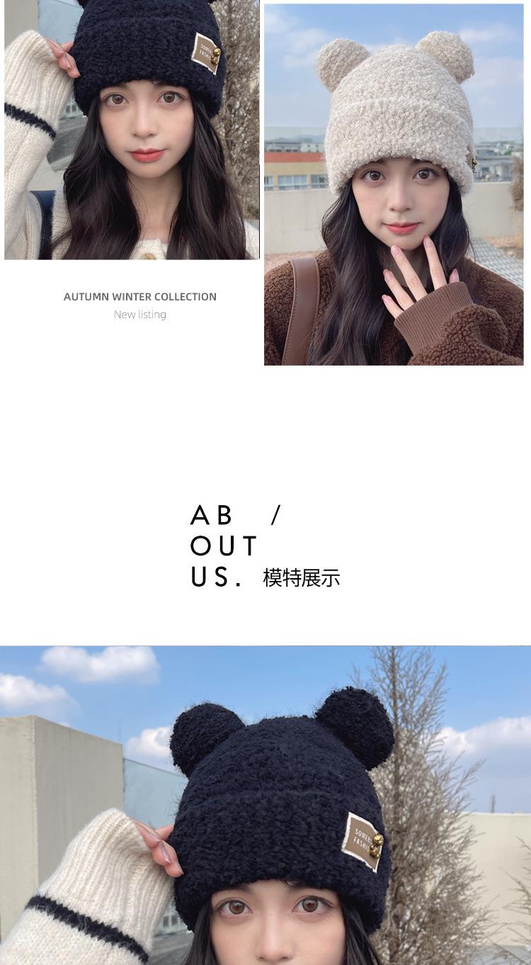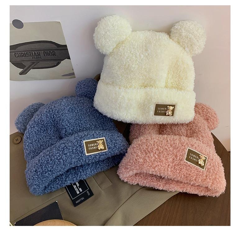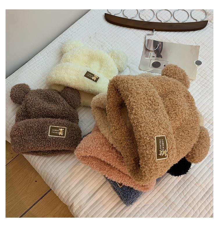 冬季可爱卡通毛绒帽小熊耳朵套头帽女日系保暖加厚护耳针织帽
