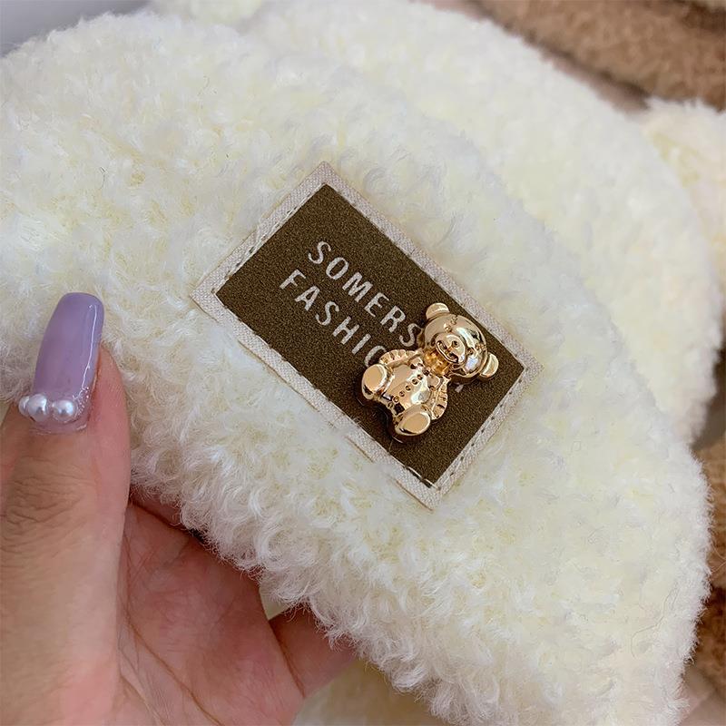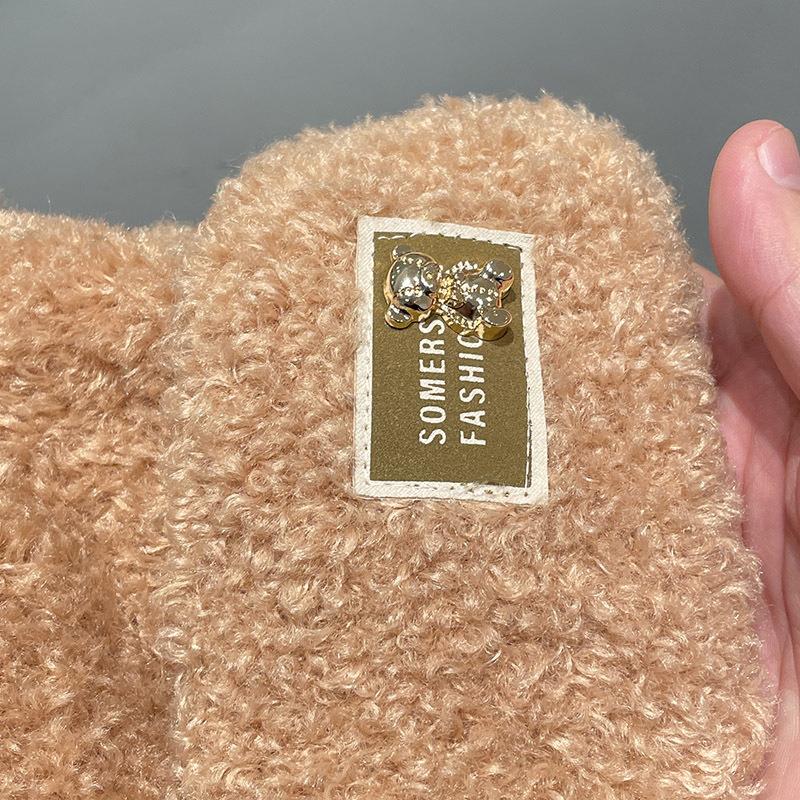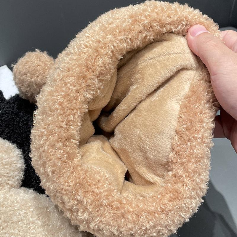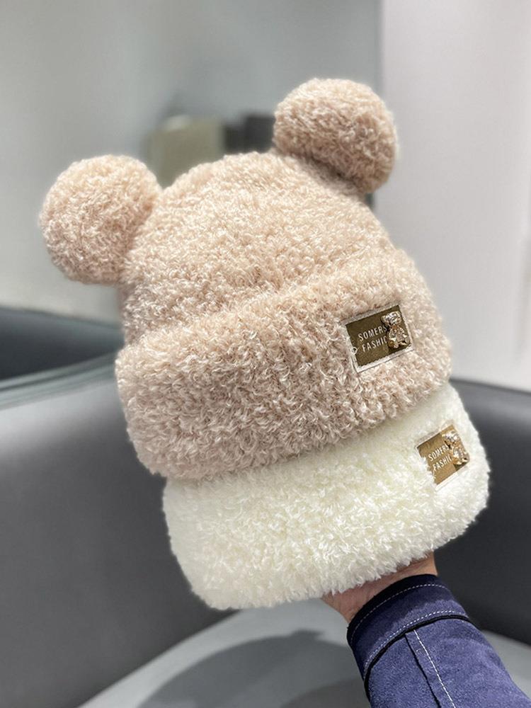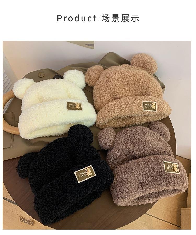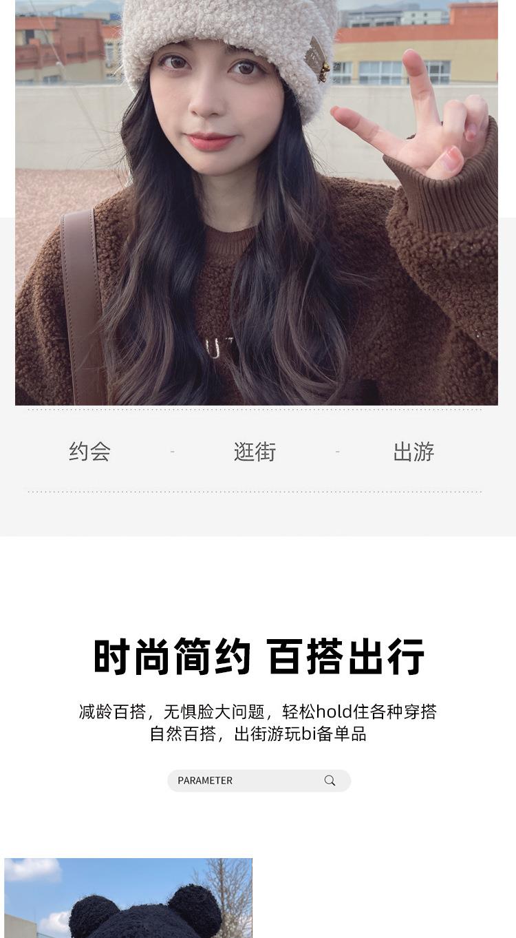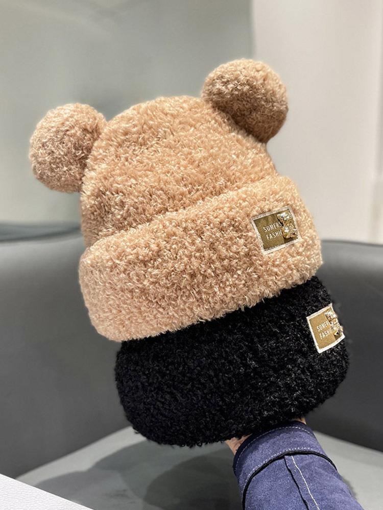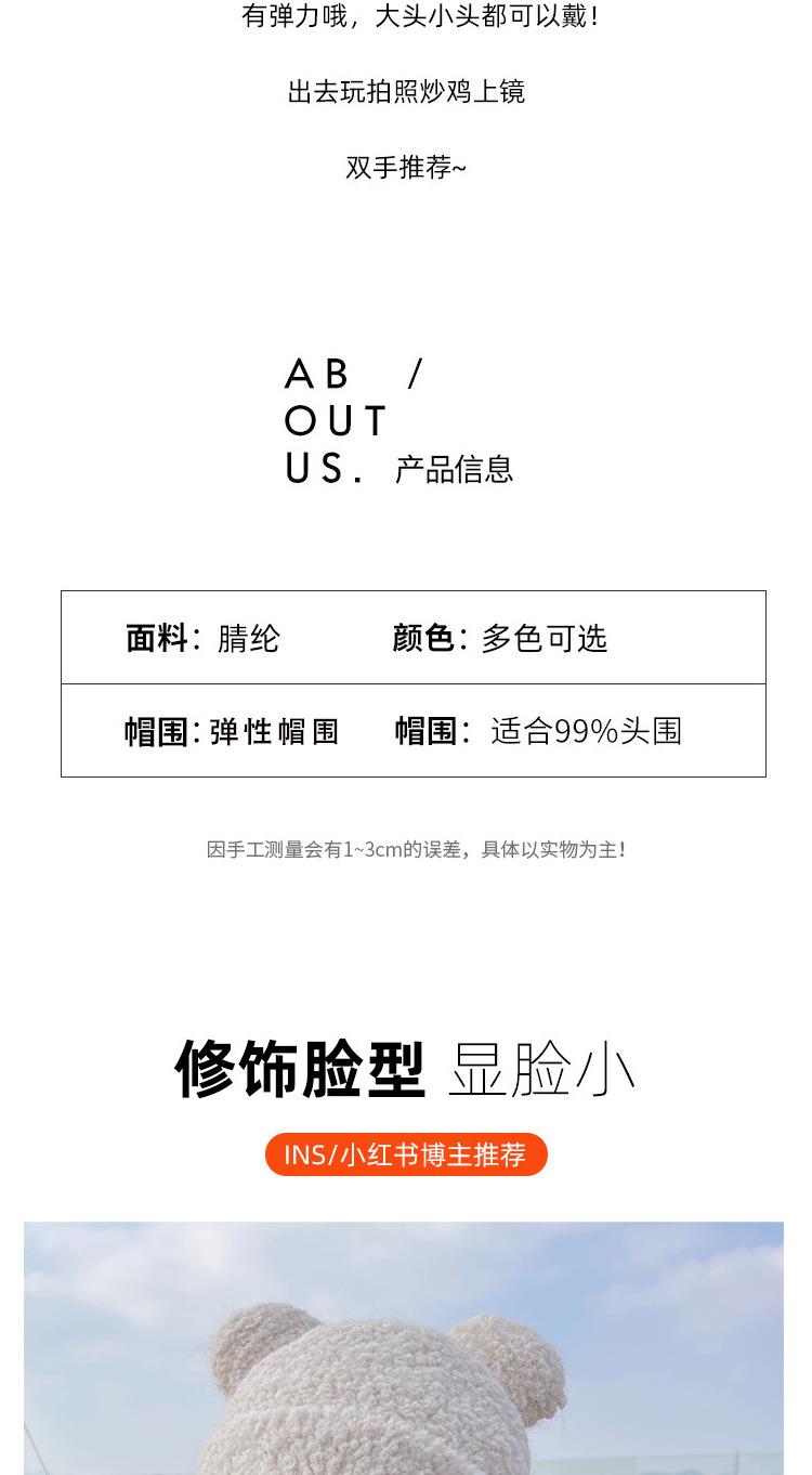 冬季可爱卡通毛绒帽小熊耳朵套头帽女日系保暖加厚护耳针织帽