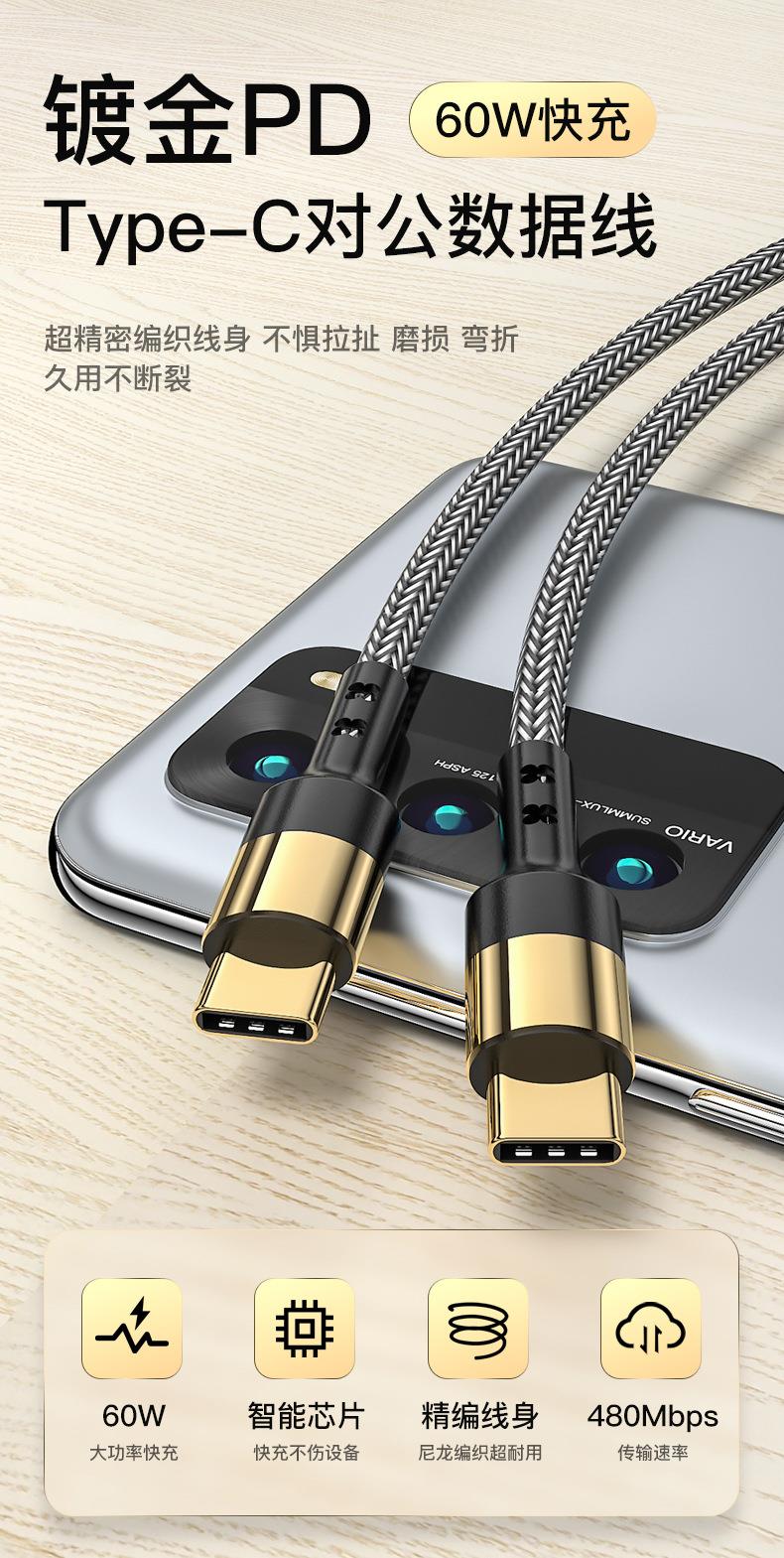 PD快充线CTOC60W双头适用于type-c3A苹果15充电线iphone15数据线