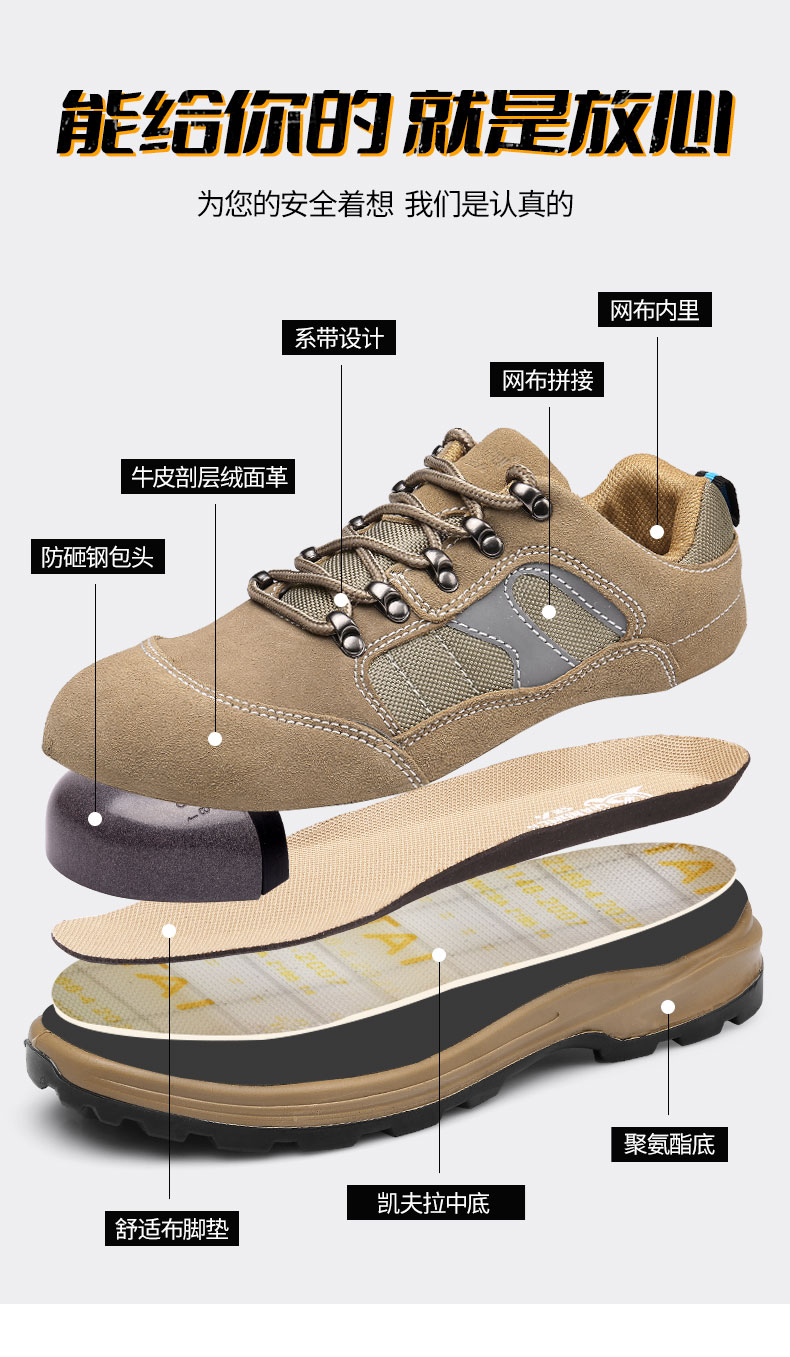 强人3515劳保鞋男防砸防刺穿功能鞋反绒皮防滑耐磨安全防护工作男鞋 ZC6014
