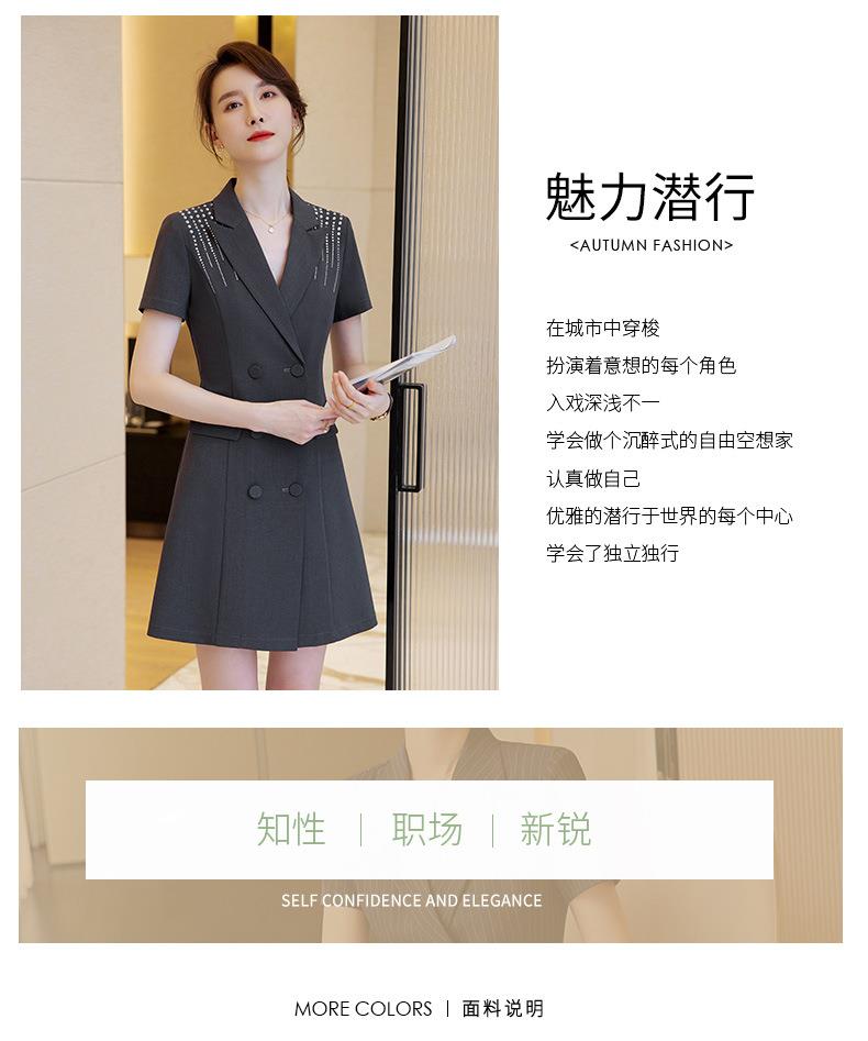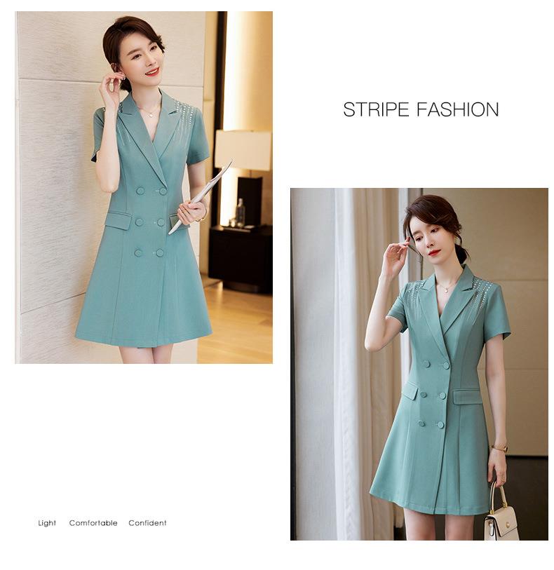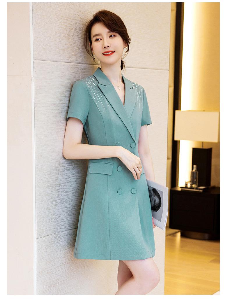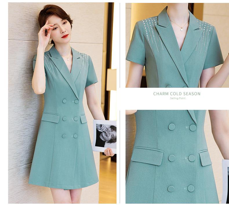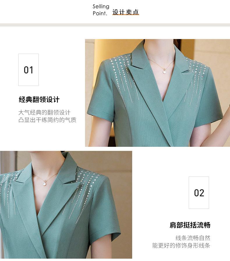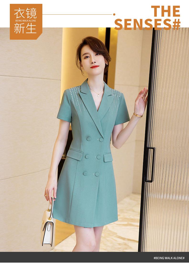 娜璐多 绿色连衣裙女短袖2023夏季新款高级感职业修身显瘦烫钻西装裙轻熟