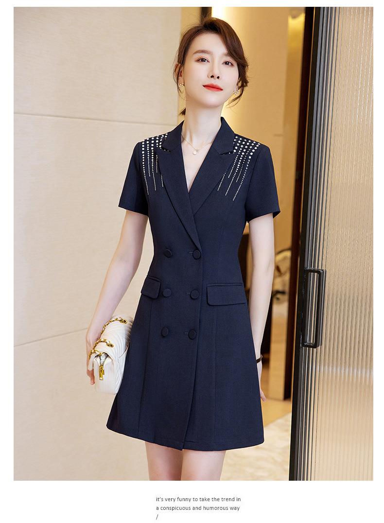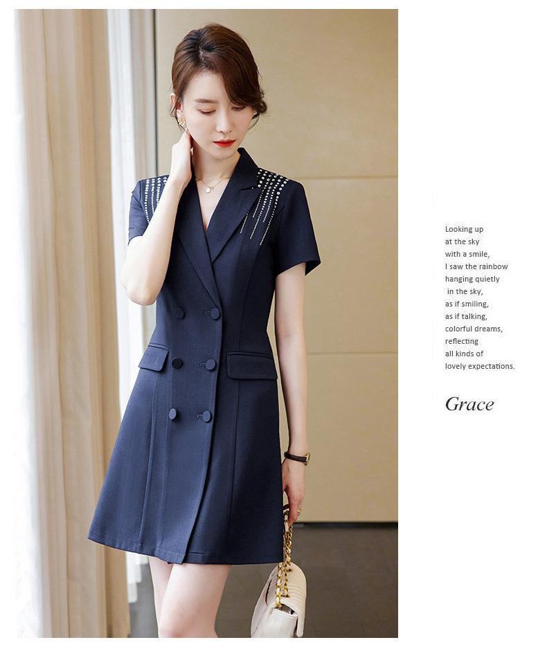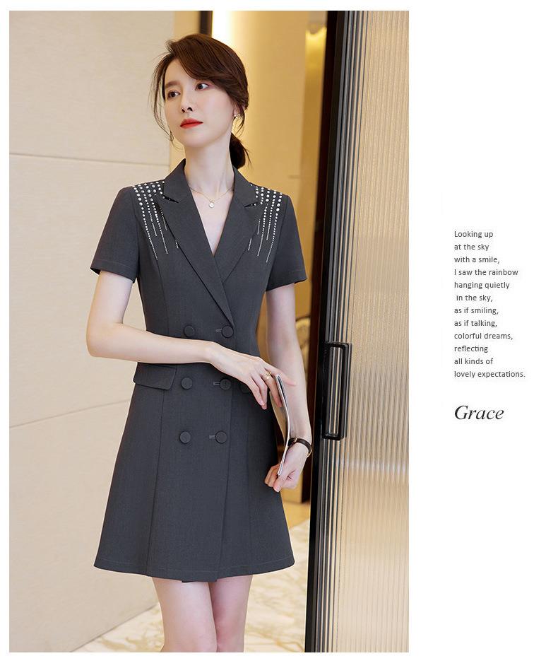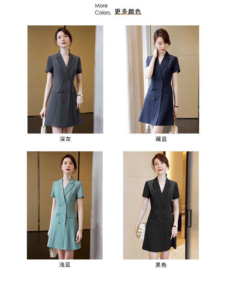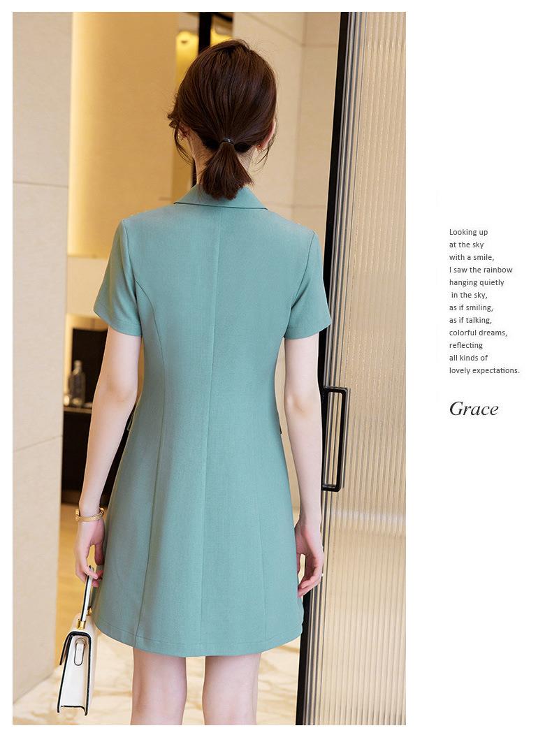 娜璐多 绿色连衣裙女短袖2023夏季新款高级感职业修身显瘦烫钻西装裙轻熟