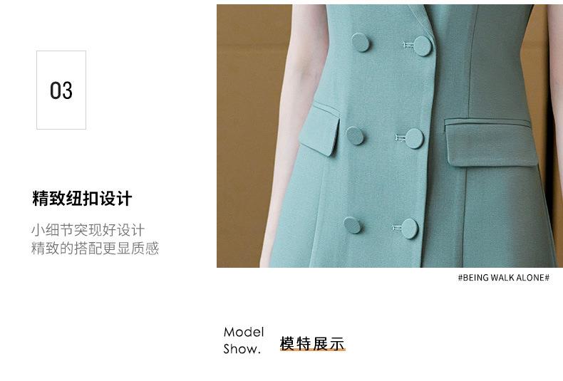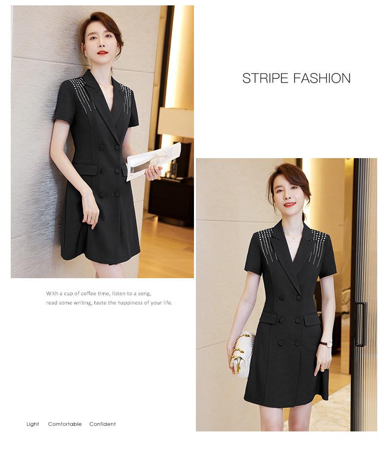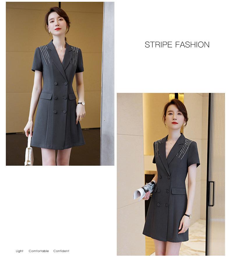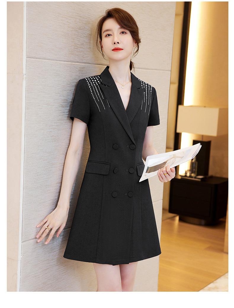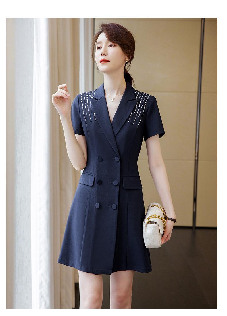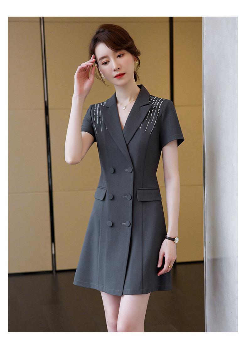 娜璐多 绿色连衣裙女短袖2023夏季新款高级感职业修身显瘦烫钻西装裙轻熟