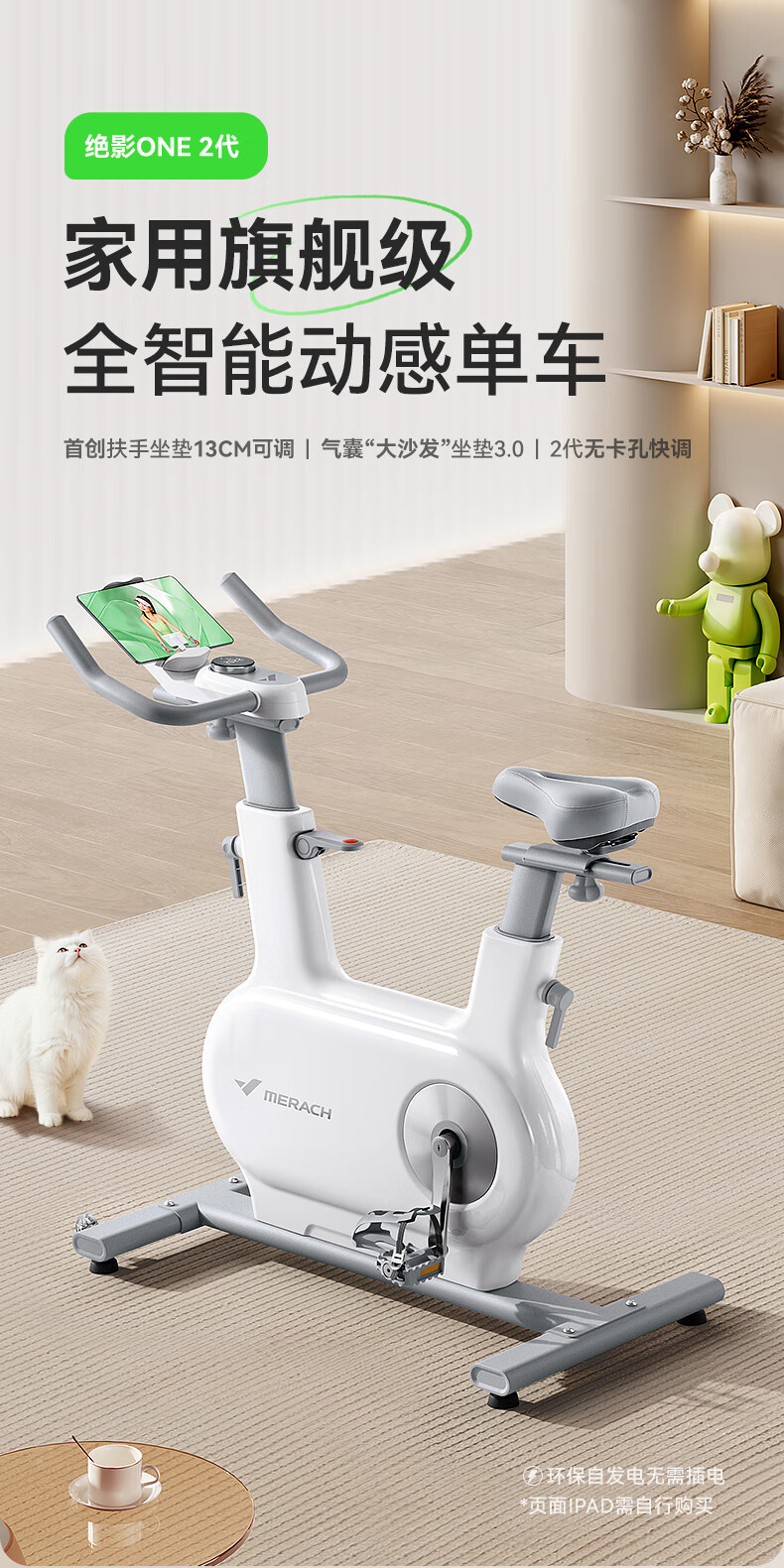 麦瑞克(MERACH)动感单车家用智能调阻自发电健身器材室内静音自行车 绝影ONEPro