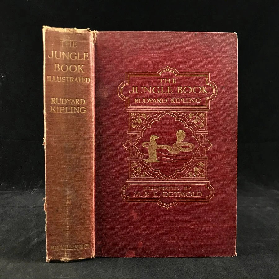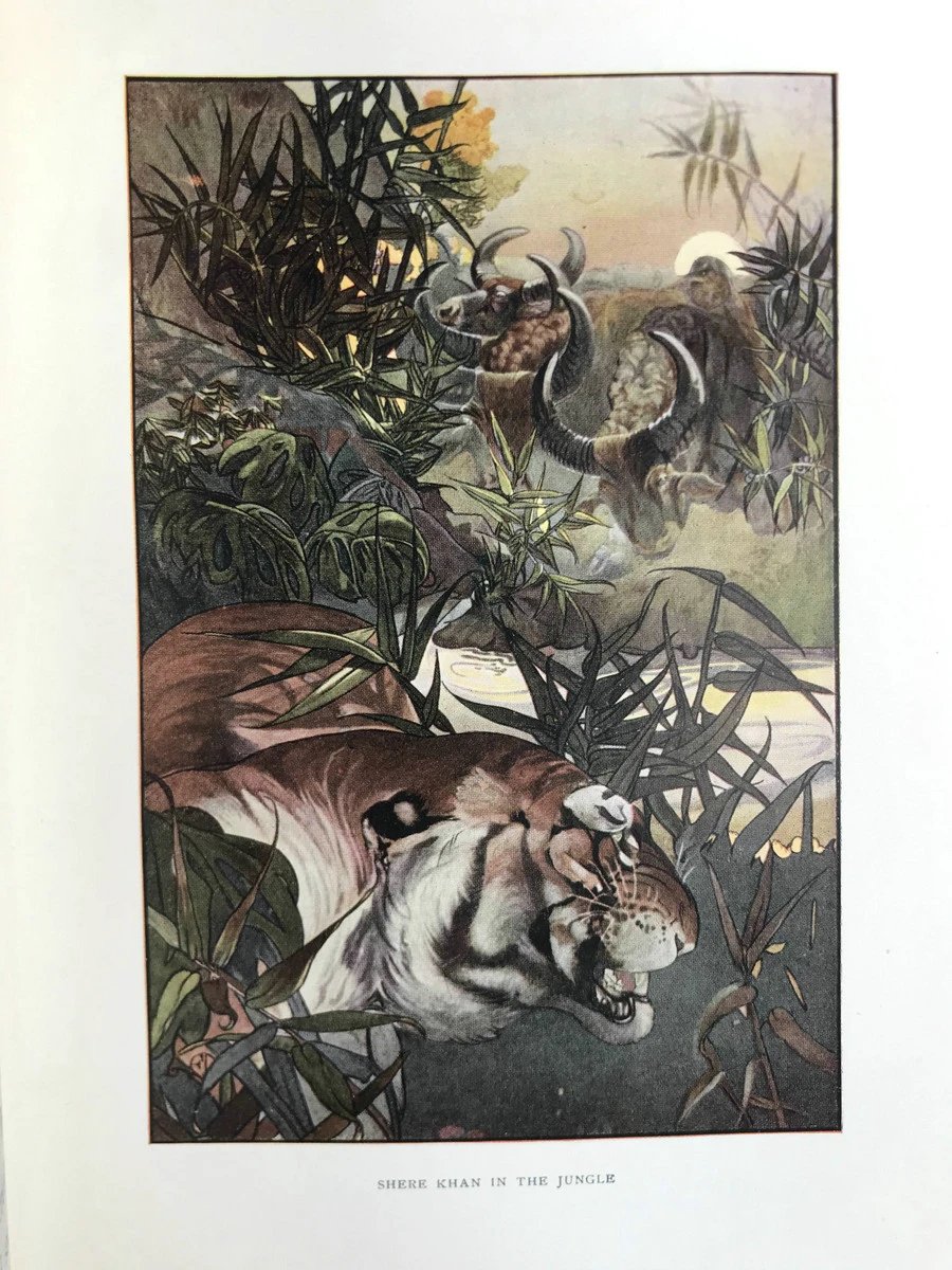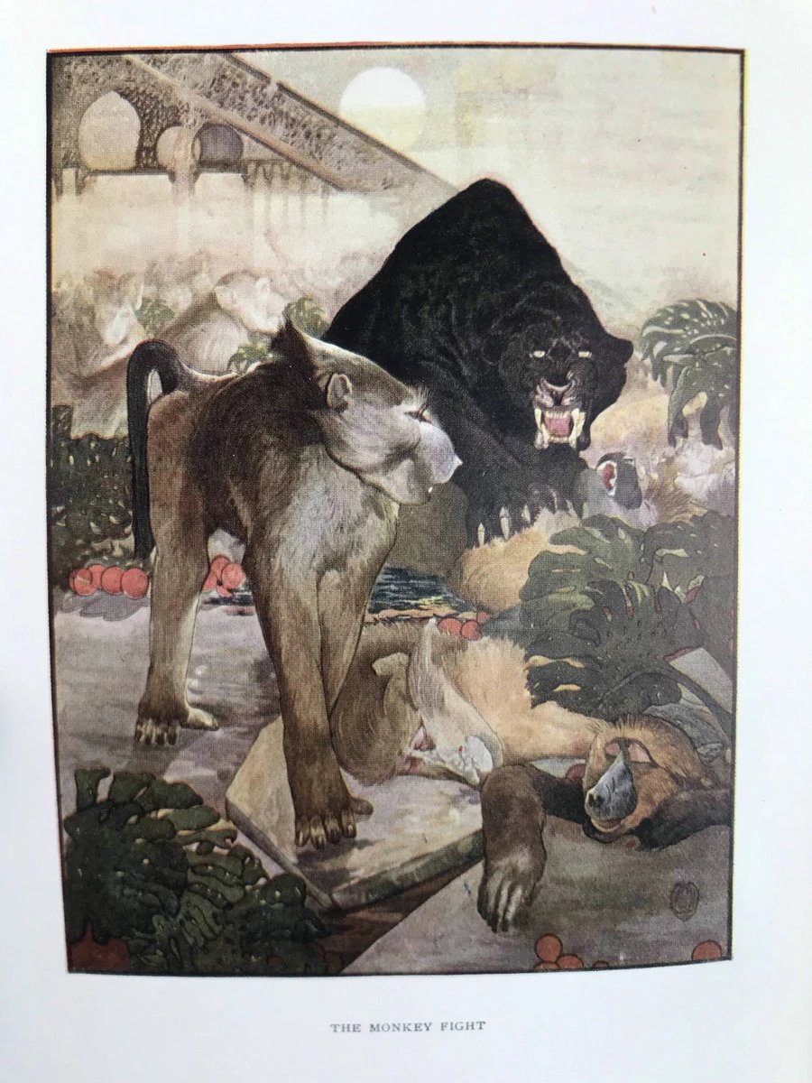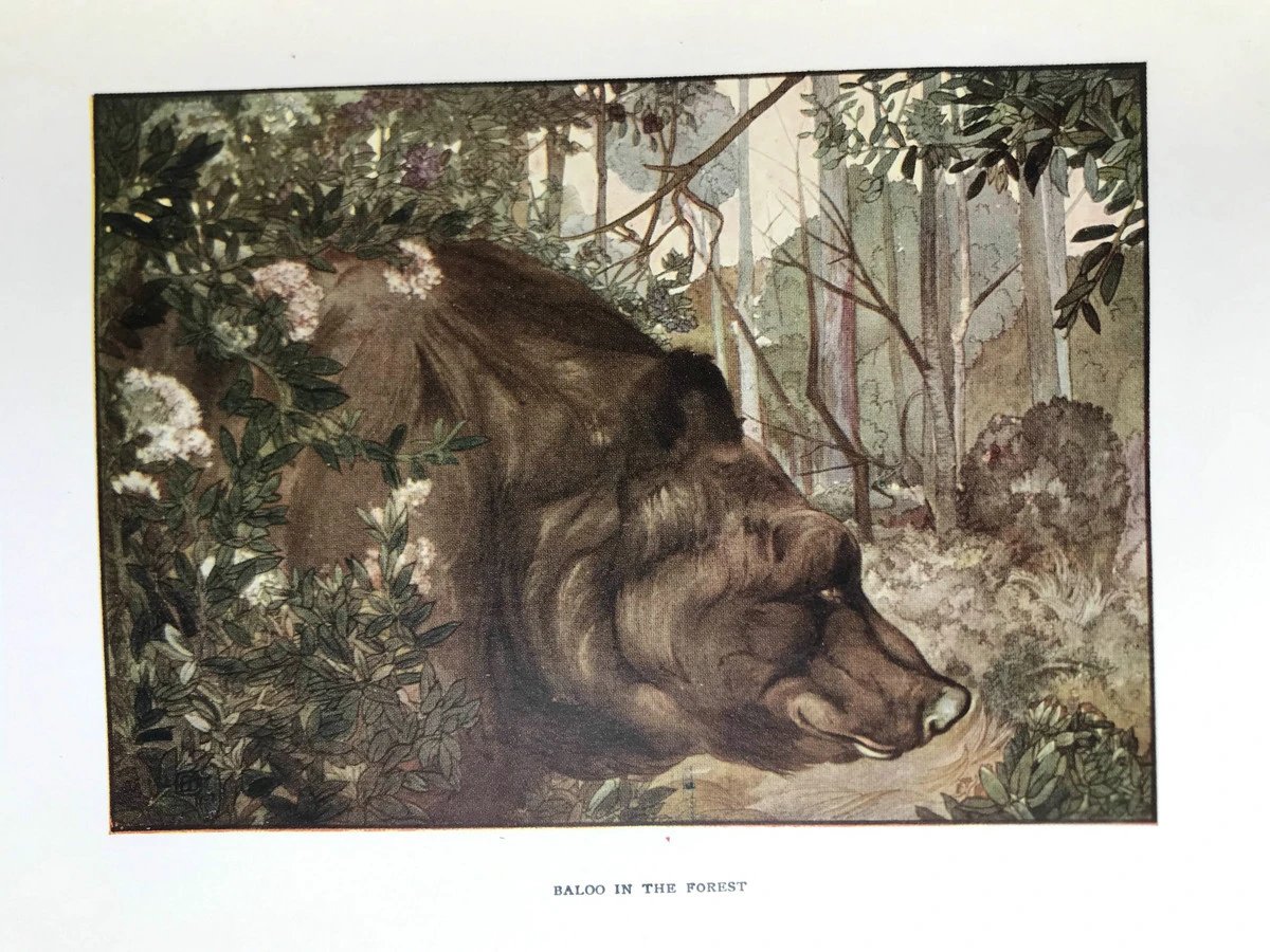 1909年 吉卜林《丛林之书》 16幅精美彩色插图 漆布精装32开