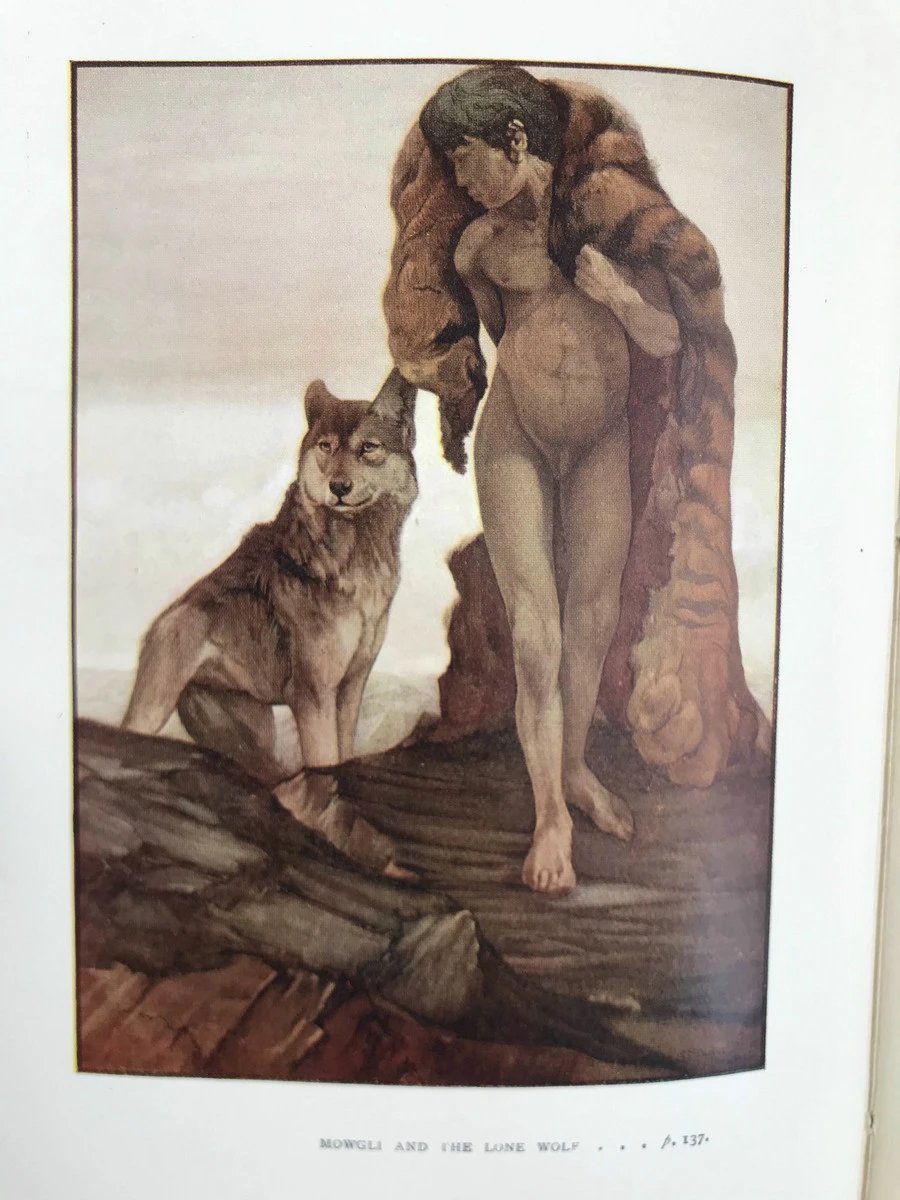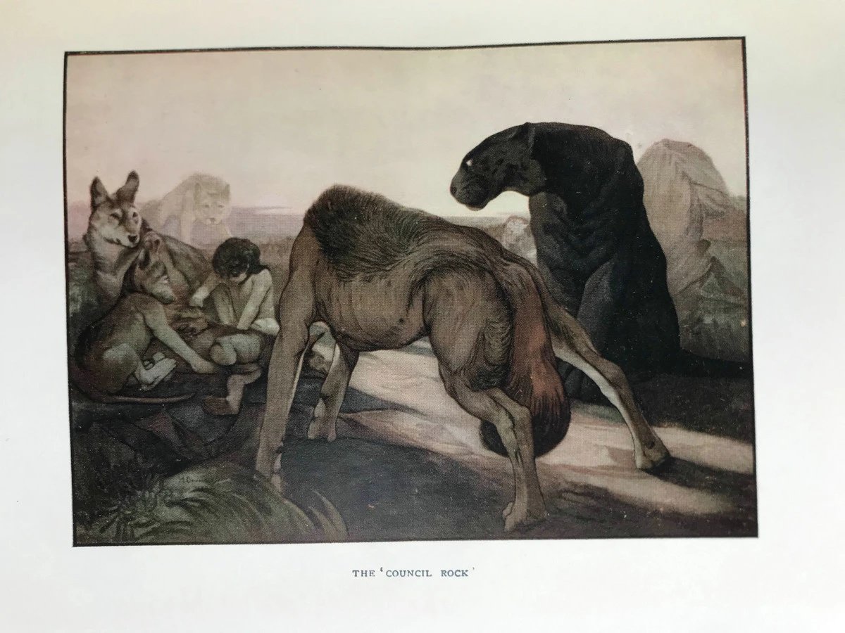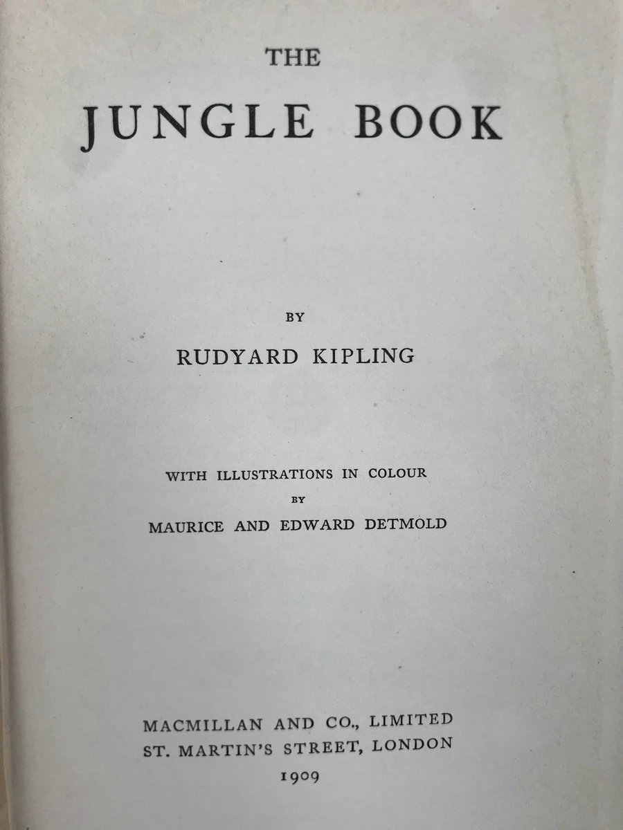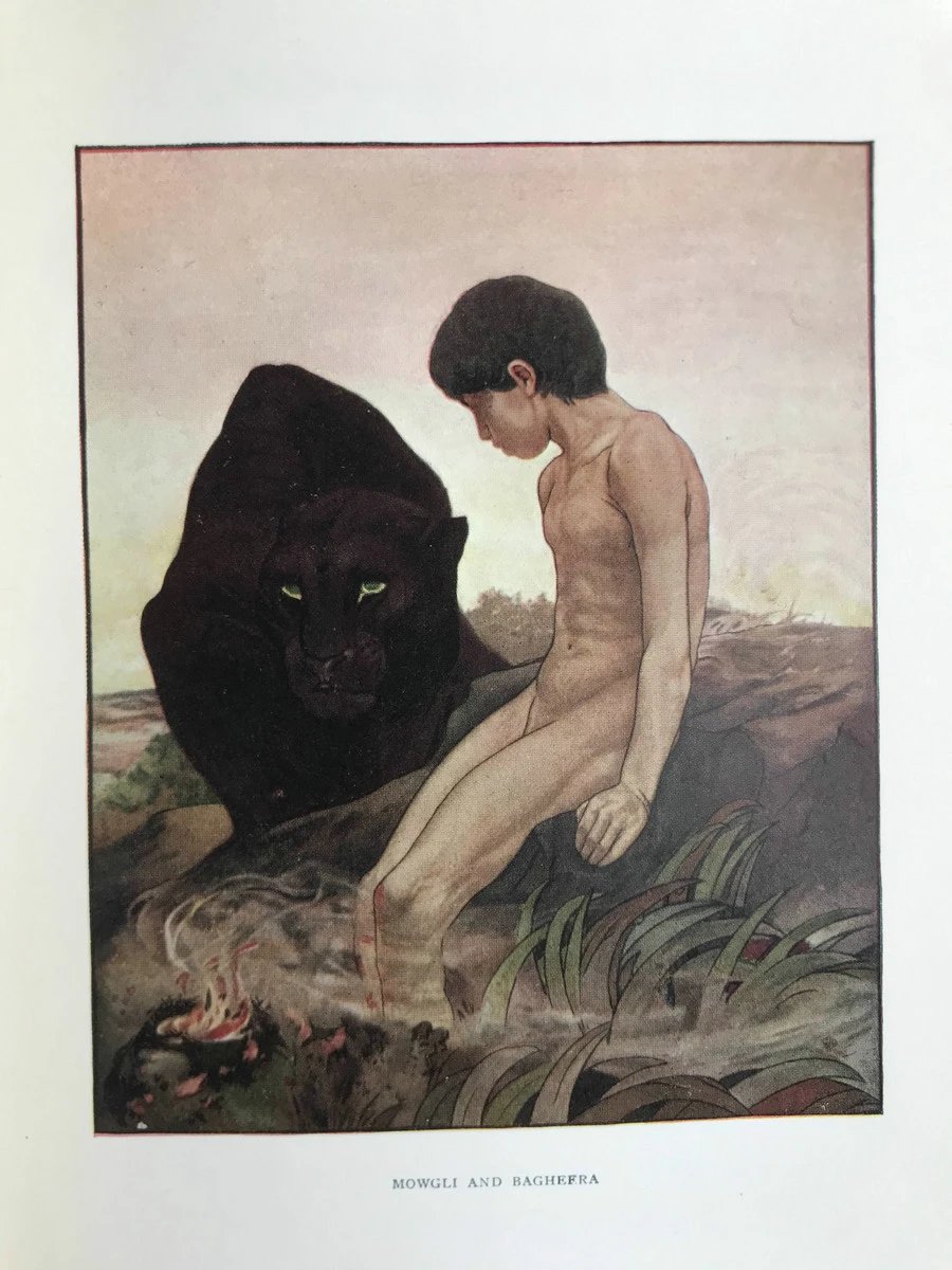 1909年 吉卜林《丛林之书》 16幅精美彩色插图 漆布精装32开