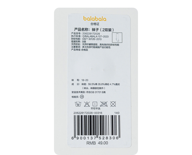 【三丽鸥IP商场同款】巴拉巴拉女童袜子夏网眼袜透气中筒袜两双装