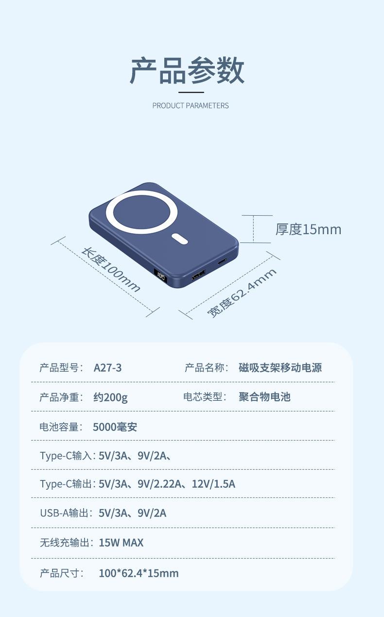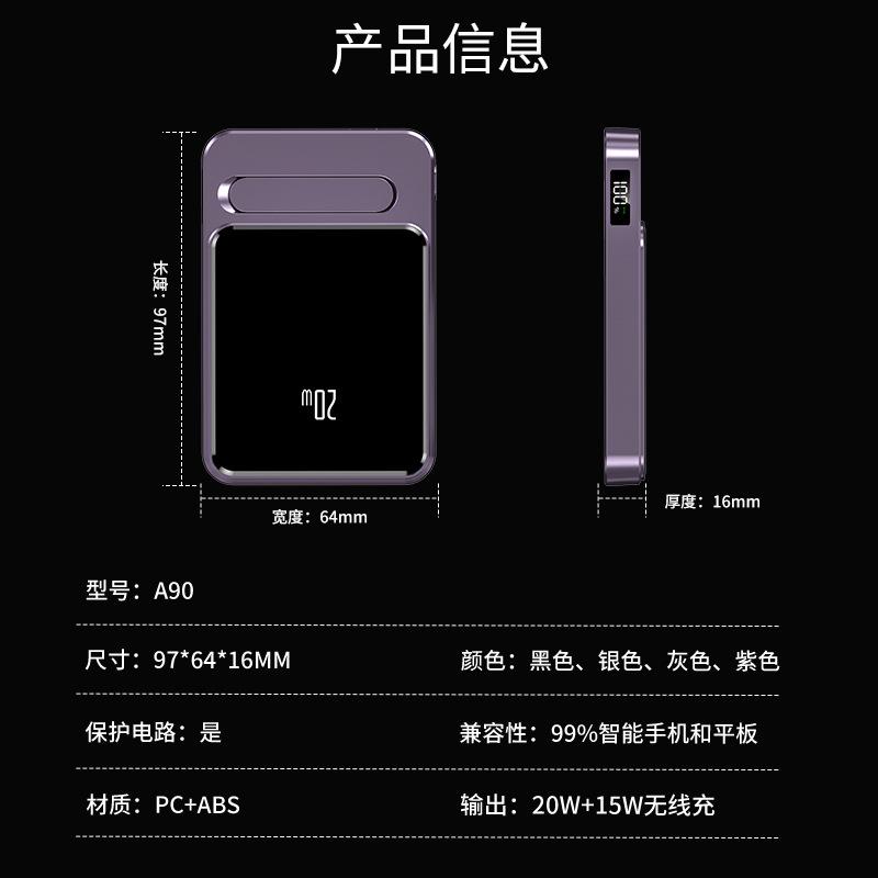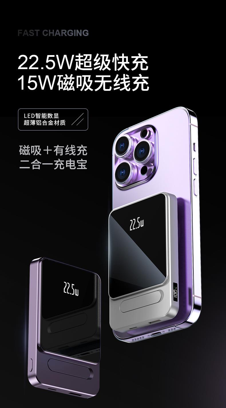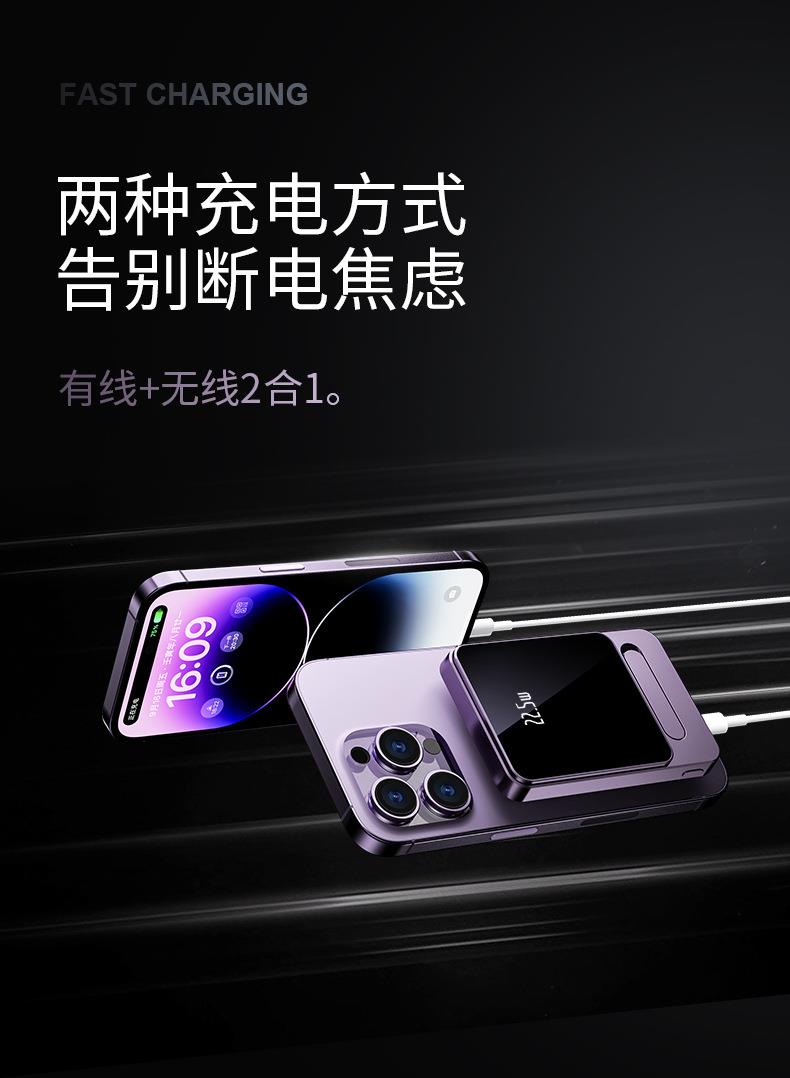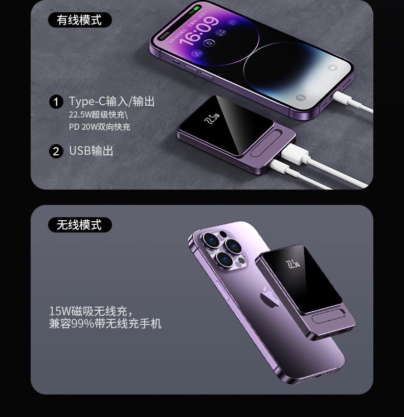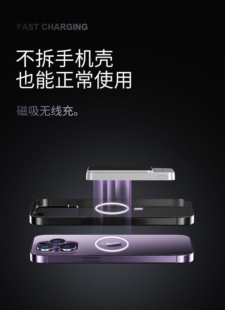 跨境适用苹果15 Magsafe磁吸无线充电宝快充背夹外接移动电源