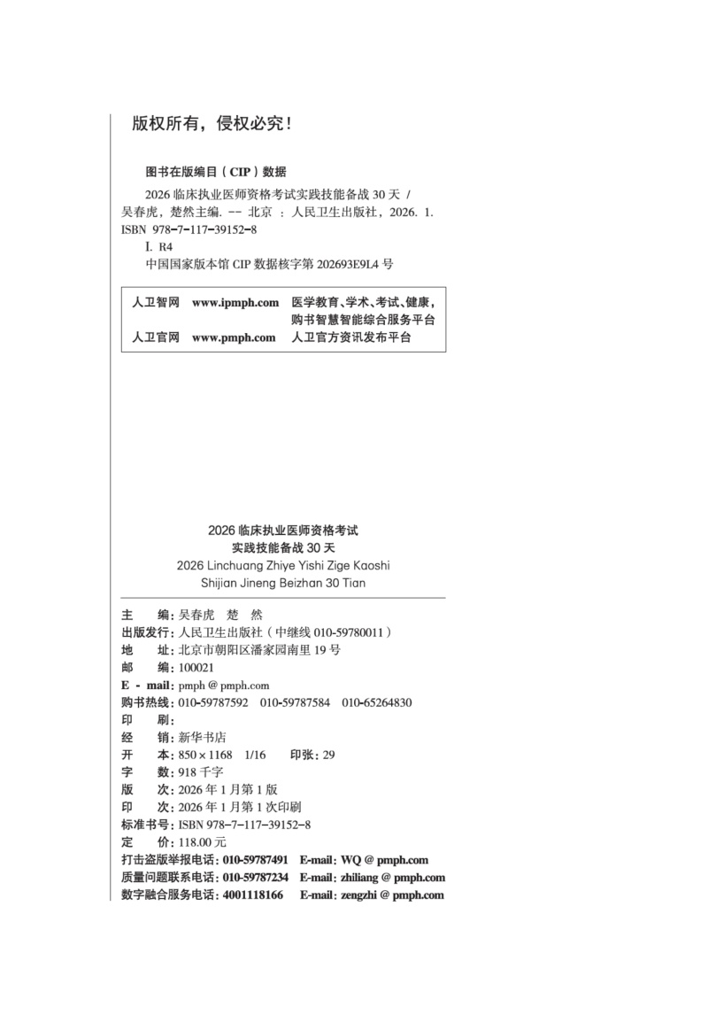 2026临床执业医师资格考试实践技能备战30天 吴春虎 楚然 主编 医师资格考试用书 2026执业医师 9787117391528人民卫生出版社