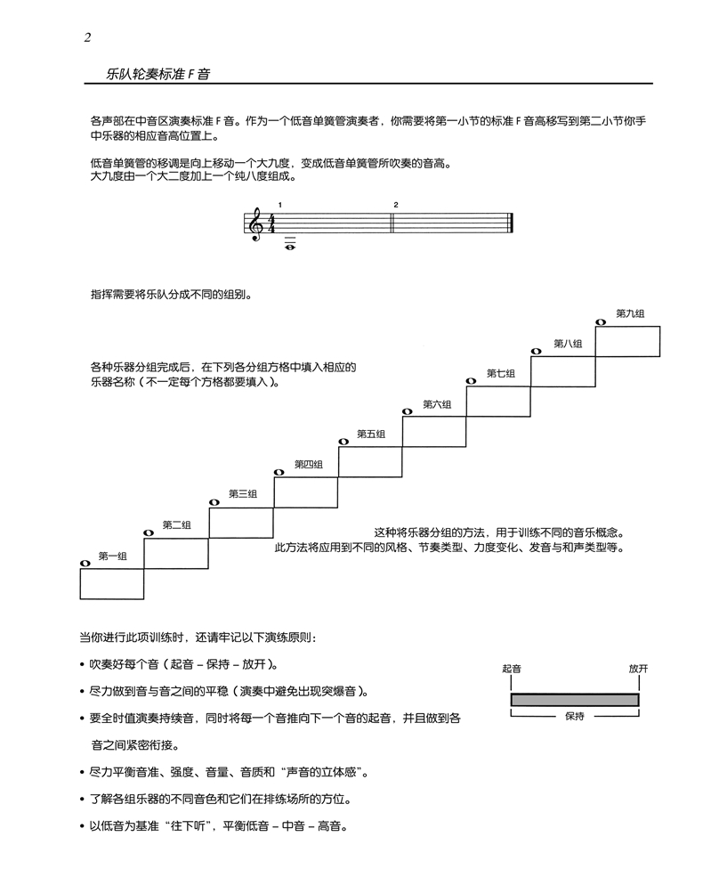 《管乐队标准化热身训练教程》旨在更好地组织日常排练和改进整个乐队的全面演奏水平。无论每天的排练时间仅5分钟,或是每天45分钟,这套教程能为处于任何水平、任何条件和状态的乐队提供机动性良好的排练选择,同时也能为广大乐队指挥们提供能适应每个学生的不同演奏水平的训练素材,并能很好的激励每一个学生为了掌握更高水平的演奏技能而努力训练。《管乐队标准化热身训练教程》共17册,分为长笛、双簧管、大管、单簧管、低音单簧管、高音单簧管、中音萨克斯管、高音萨克斯管、次中音萨克斯管、小号、圆号、长号、次中音号(高音谱号)、次中音号(低音谱号)、大管、打击乐与总谱。
