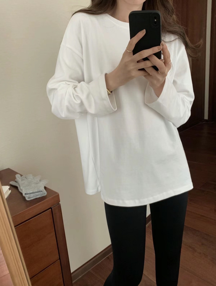 基础纯色T简直就是秋冬镇店之宝! 冬季双面澳绒面料,触感软糯舒适 长度遮住PP一点 做叠穿巨赞! 上身轻盈透气,且不易起球! 圆领设计拉长颈部线条显得脸型更加小巧 落肩袖修饰肩线,轻松穿出娇小感 无论面料、版型、做工、颜色、搭配度、 价格、都无可挑剔! 绝对的穿搭刚需硬货❗ 可以说衣柜里没有一件衣服是它不能搭配的!