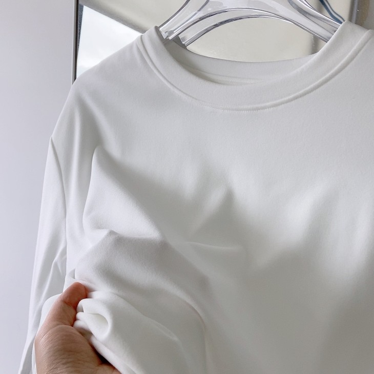 团长实拍细节: 五星推荐的大白T❗买一件绝对不够穿❗ 吊打市面单面又低克重版本版本 黑科技双面澳绒材质 是渗透到骨子里的舒服 非常暖柔 透气又保暖 弹性和回弹都非常好! 久穿不易变形 日常也很好打理 成衣不轻薄 单穿挺括有质感 叠穿也不显臃肿! 温暖厚实 实穿率高 贴身穿着也完全没有束缚!