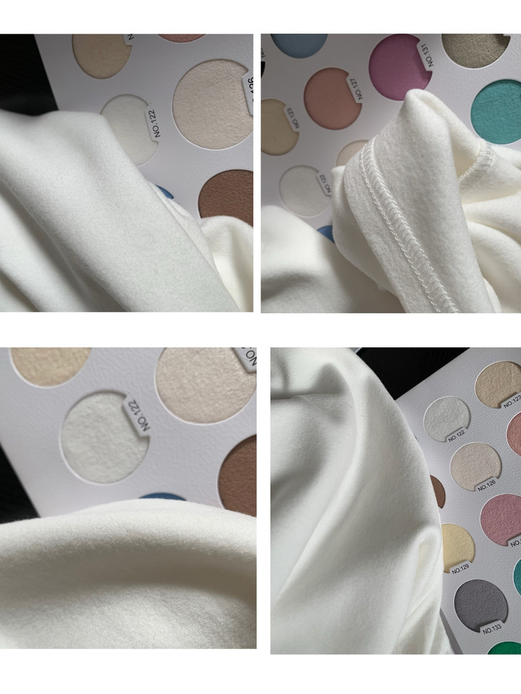 冬天还没过呐!姐妹 打底白T恤还得是双面绒!!搭配西装 毛衣 卫衣 羽绒服… 搭配届扛把子❗怎么穿都需要它! 区别于一般纯棉T!我们是高达300G一米! 整件衣服达到330G的双面澳绒磨毛面料 虽然是磨毛面料也不会起球 这点真的超棒!!