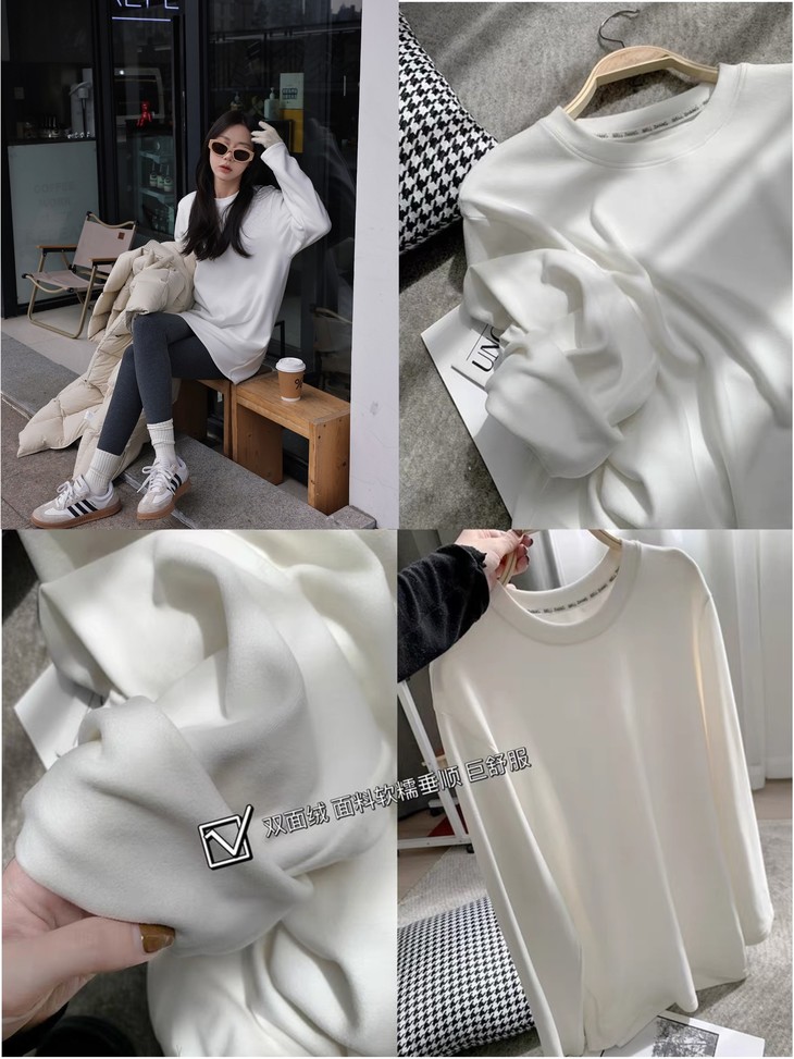 🔥高品系列⚠吊打市面各种单面版低克重❕秋冬续命打底❗【伊泺杉双面澳绒磨毛白T】 ⚠️330G双面澳绒面料❗️整件衣服将近一斤!