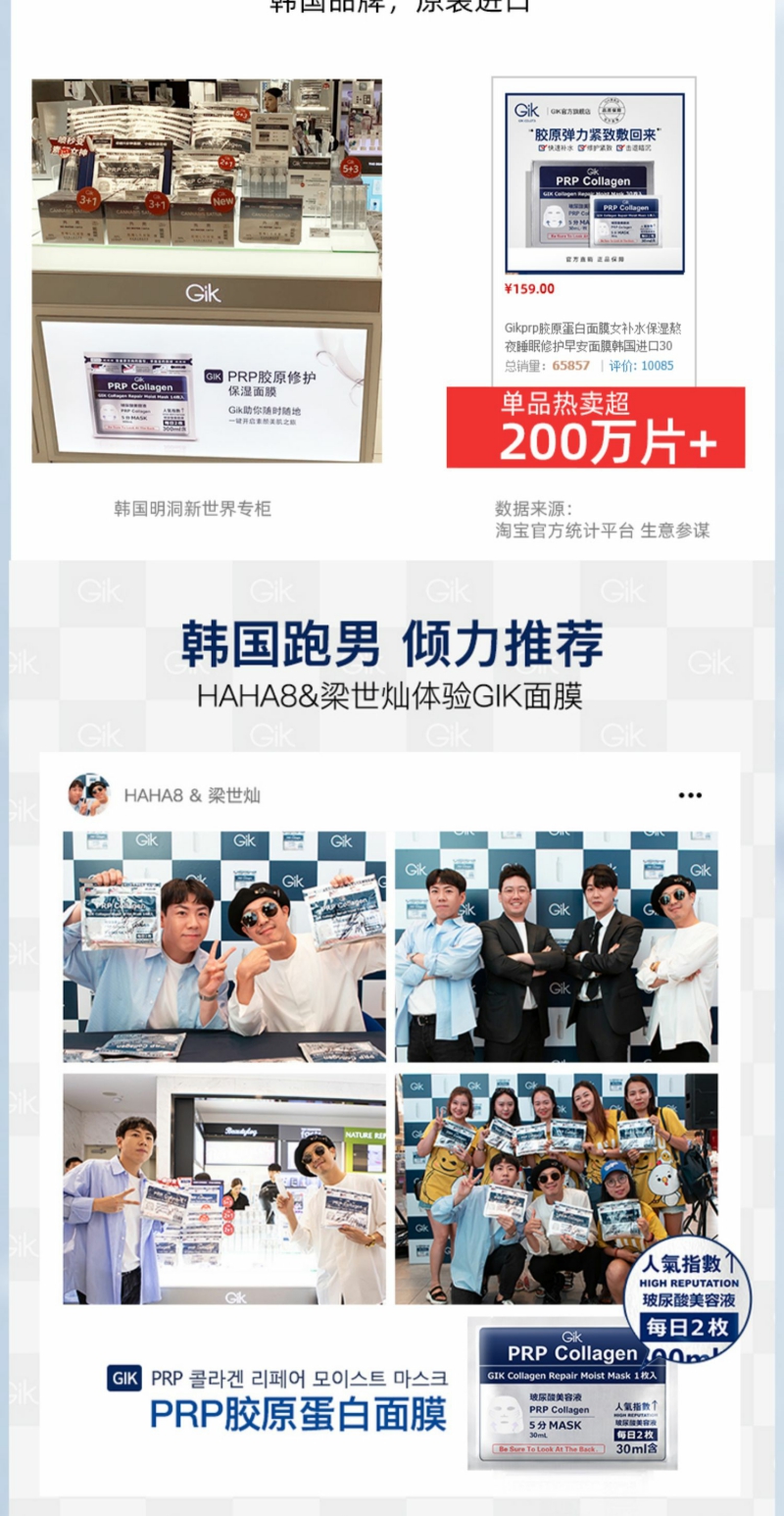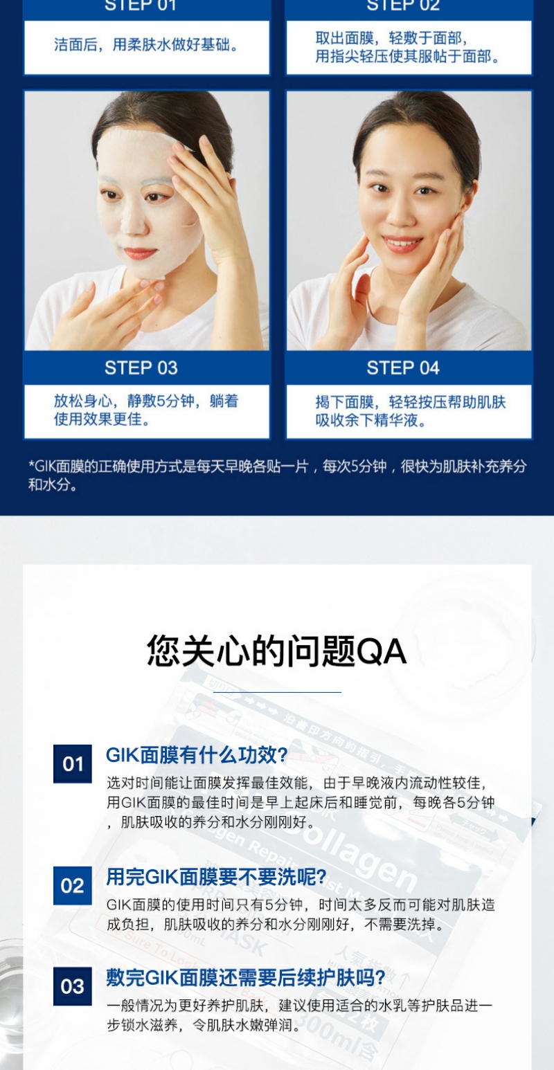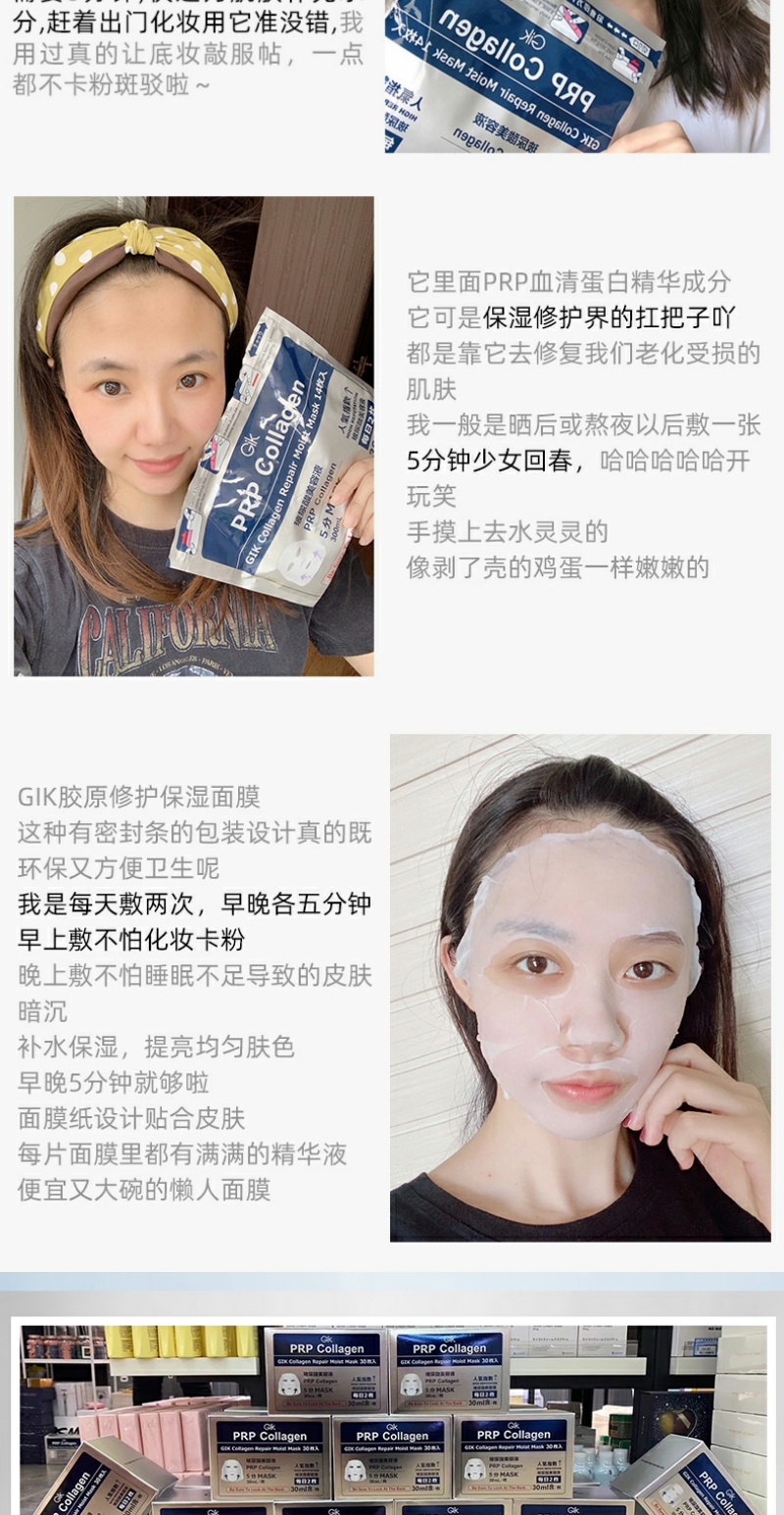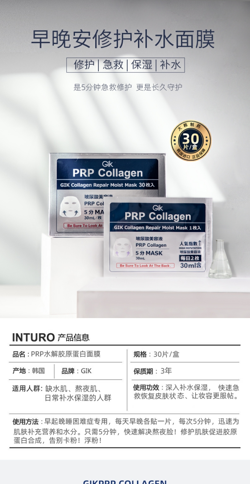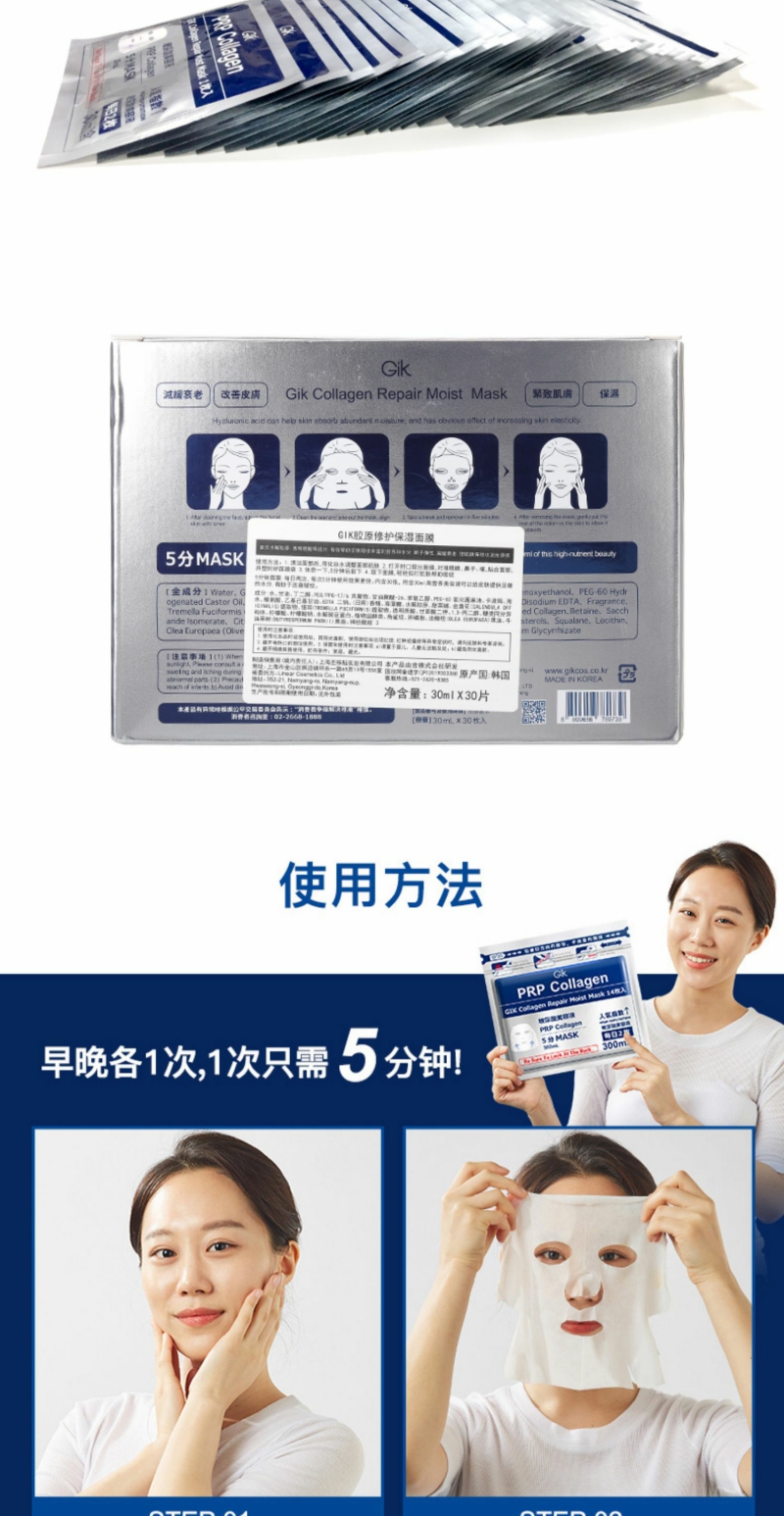 【YZ】Gik prp胶原蛋白面膜女补水保湿熬夜急救修护面膜韩国进口30片
