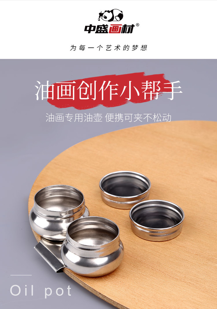 中盛画材油画油壶绘画调色器皿不锈钢塑料单口双口有盖无盖多款式
