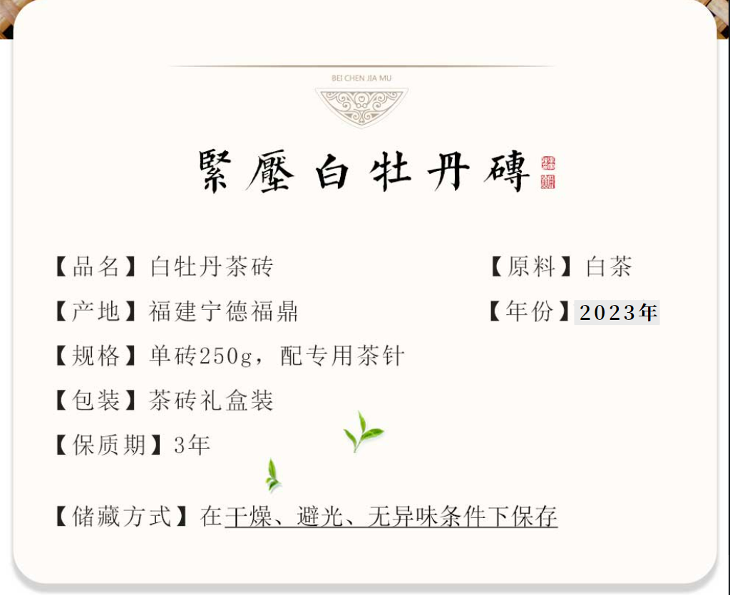 野乡风物丨白牡丹 250克单饼茶砖