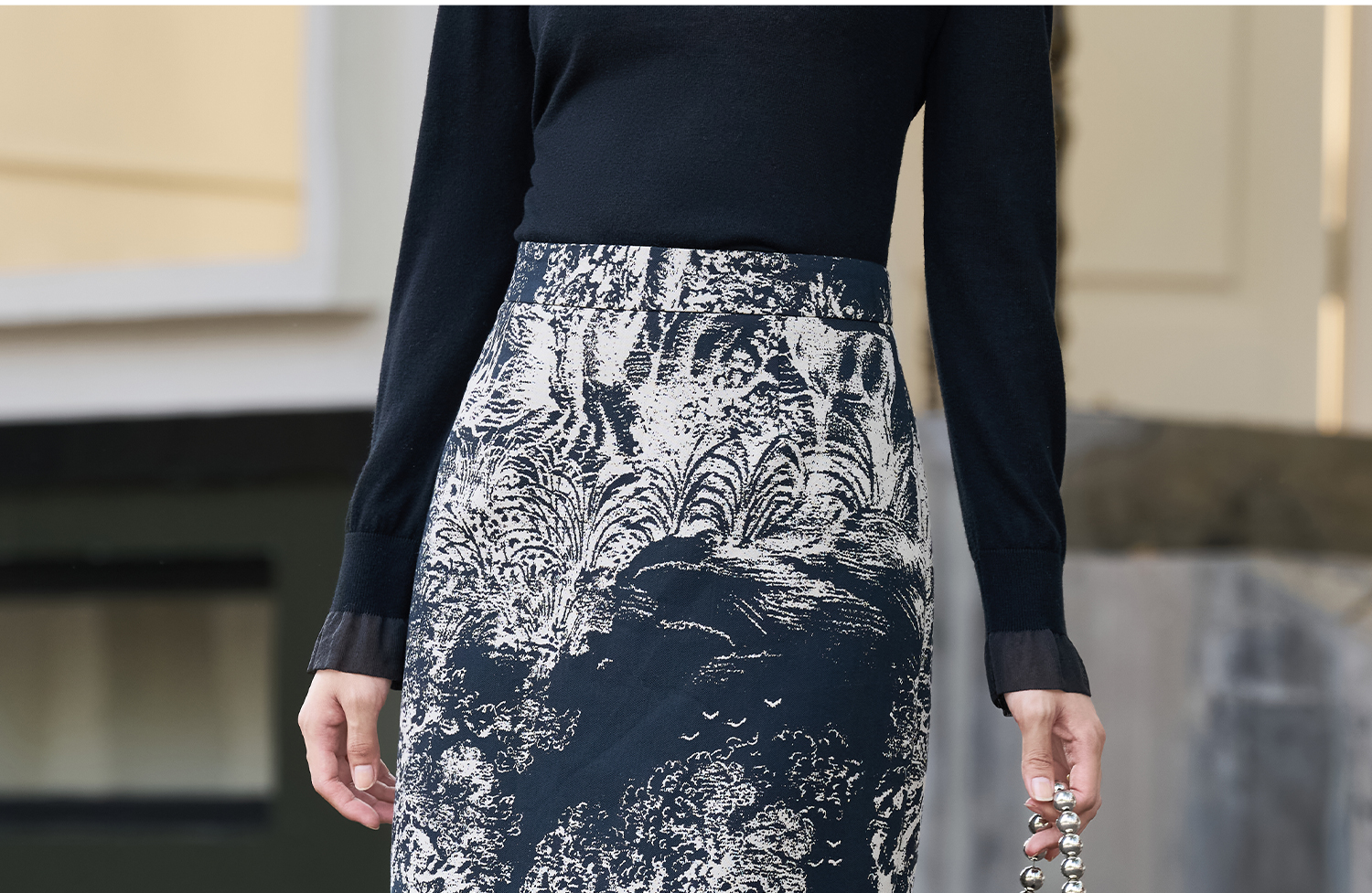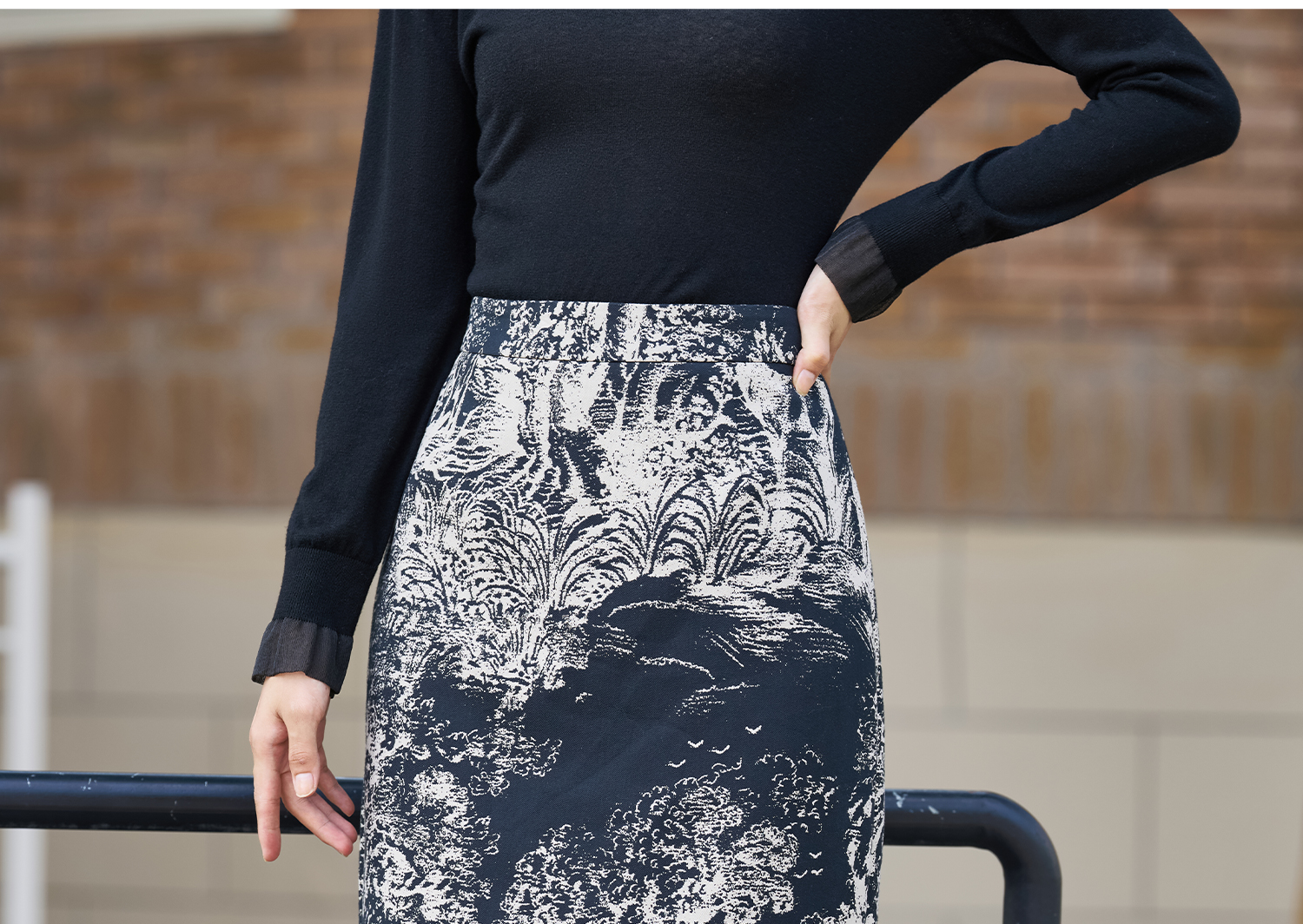 剩M 米思阳2026春季新款时尚设计感半身裙潮流国风水墨印花裙子女2058
