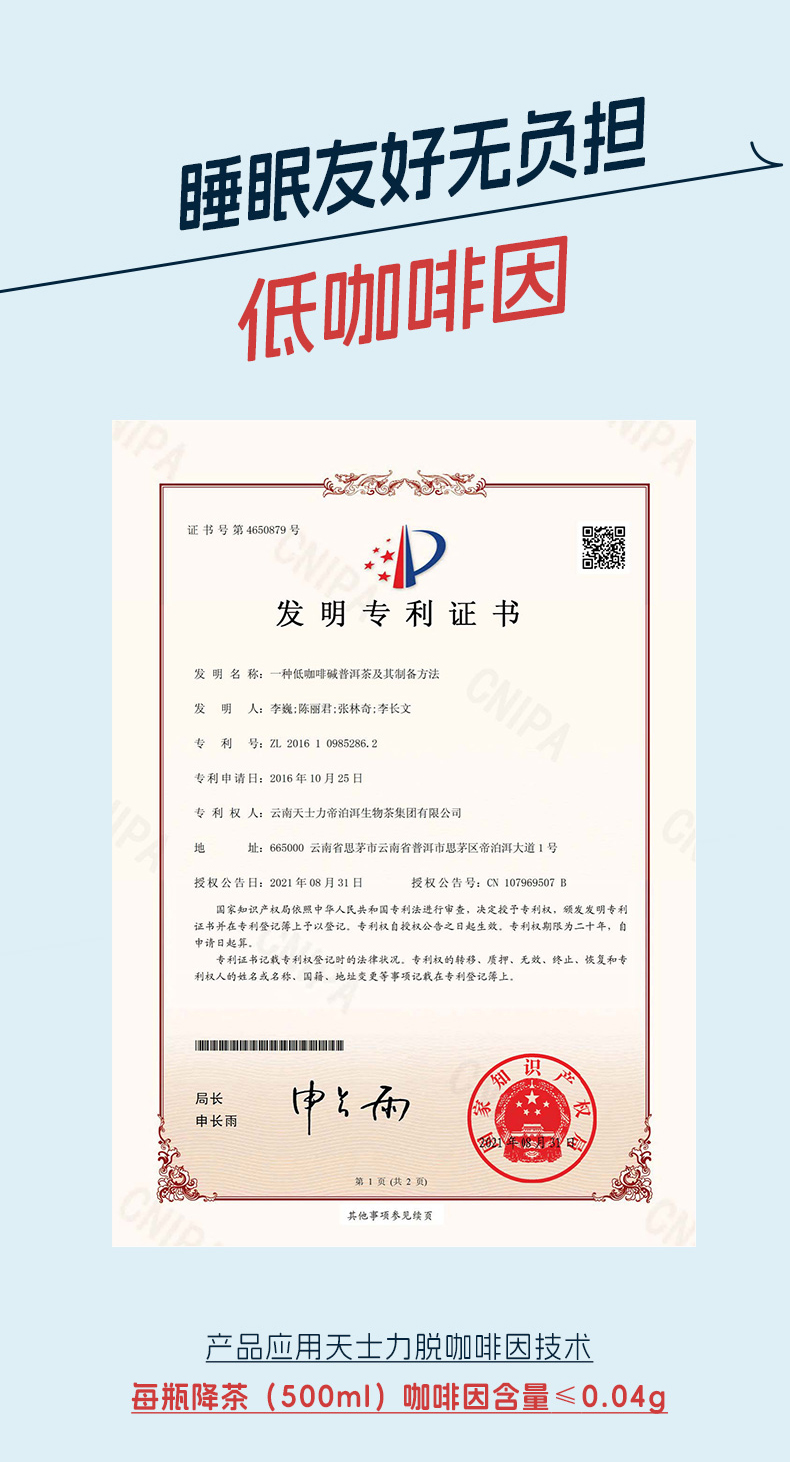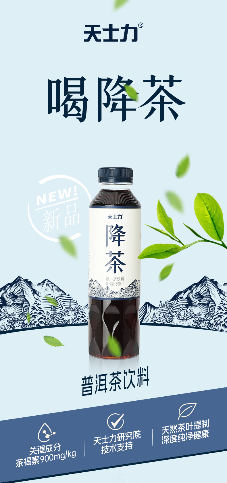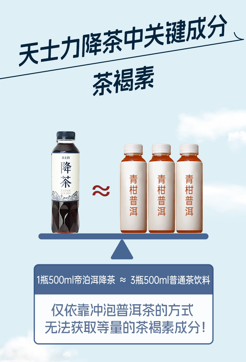 天士力降茶 普洱茶饮料500ml/瓶*15瓶/箱 0糖0脂0卡