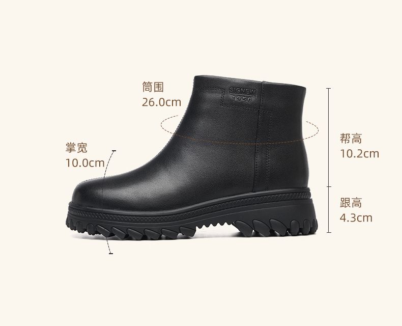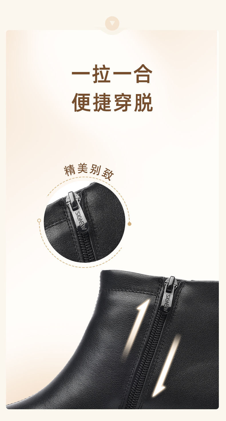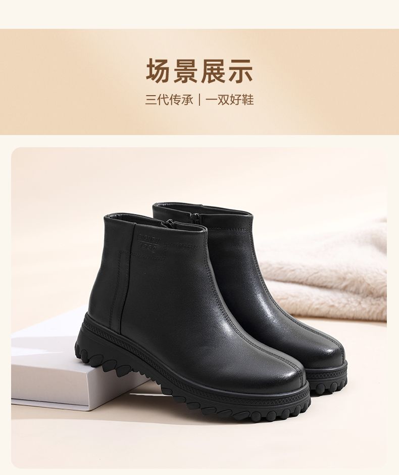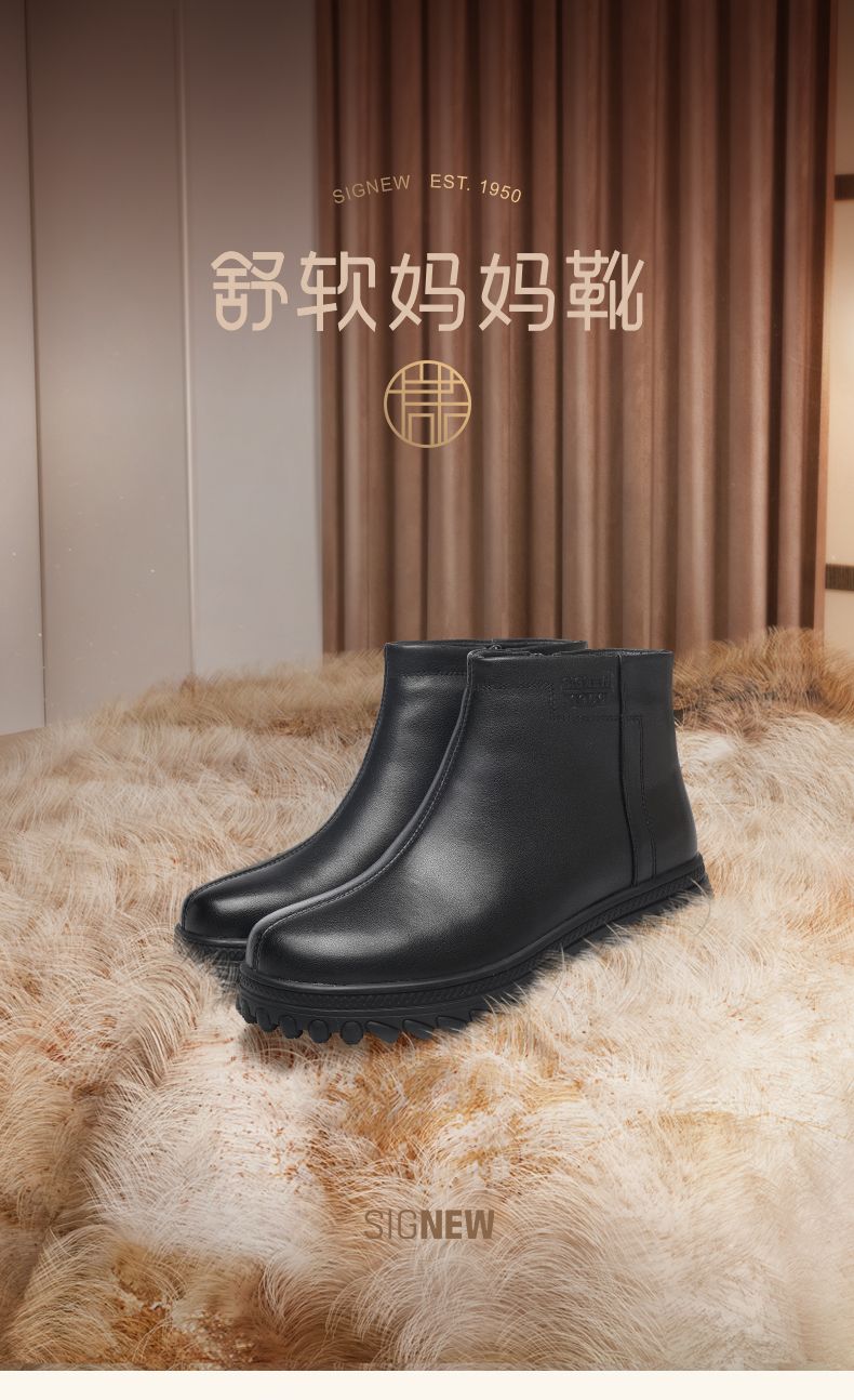 信诺女鞋加厚保暖羊毛短靴2024冬季新款棉鞋中老年靴子厚底妈妈鞋M523-5Y