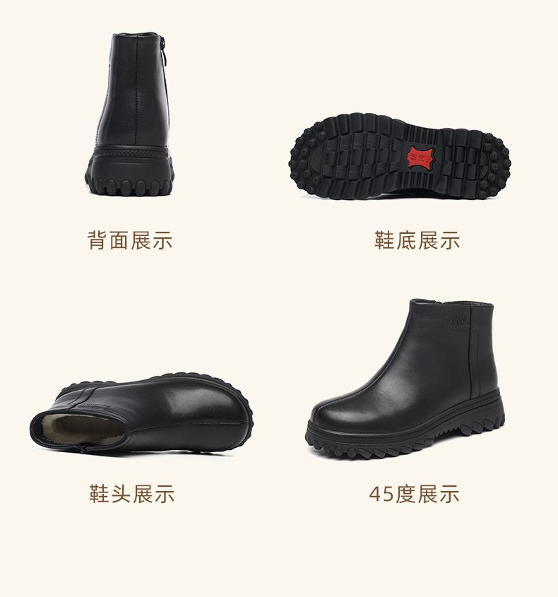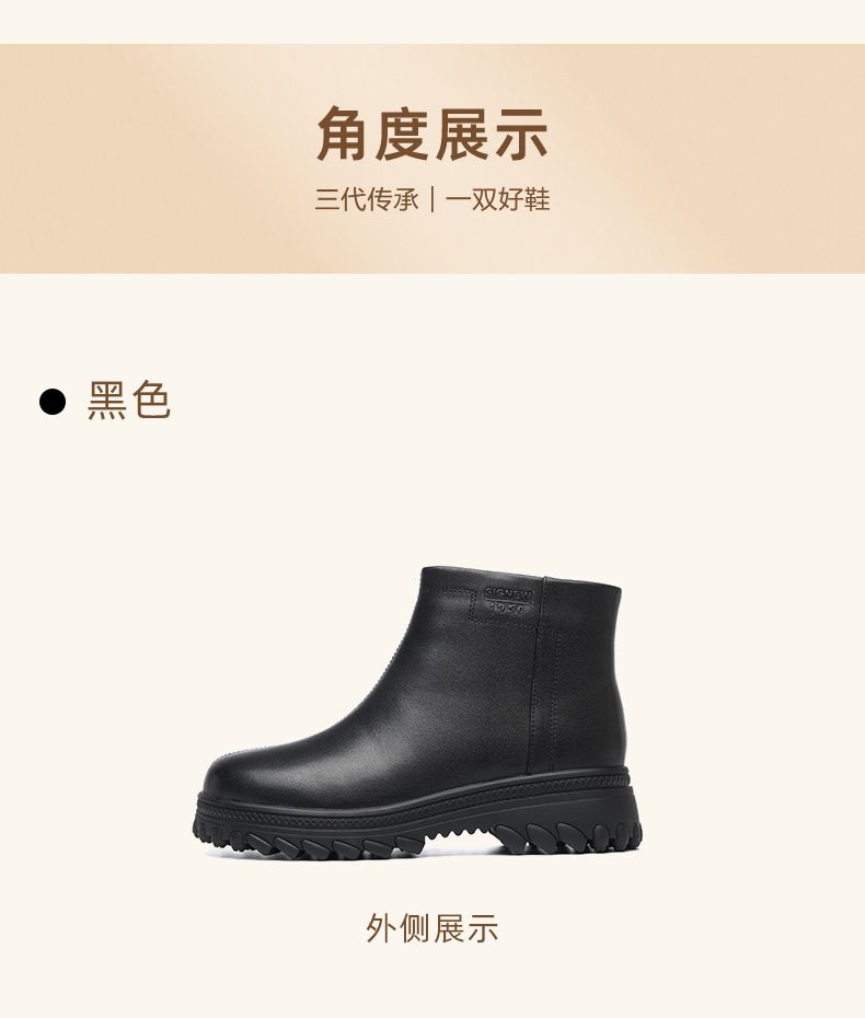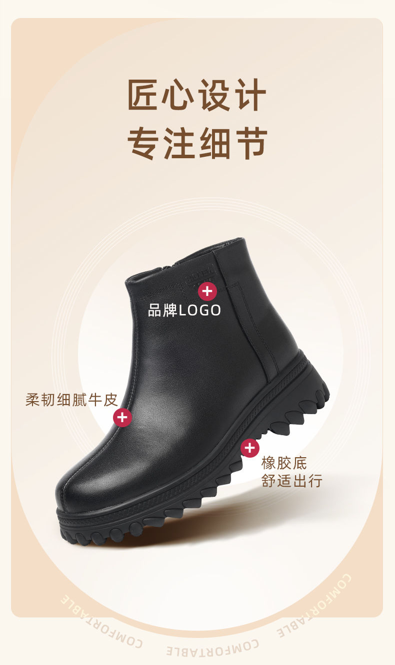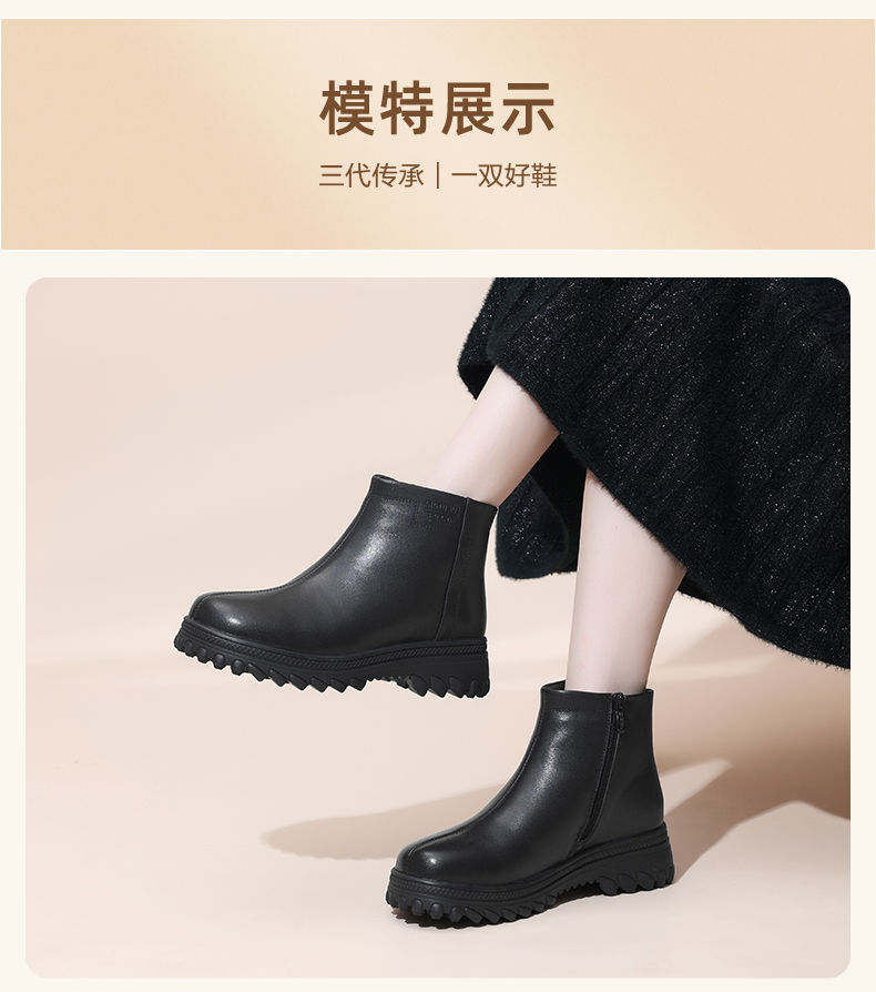 信诺女鞋加厚保暖羊毛短靴2024冬季新款棉鞋中老年靴子厚底妈妈鞋M523-5Y