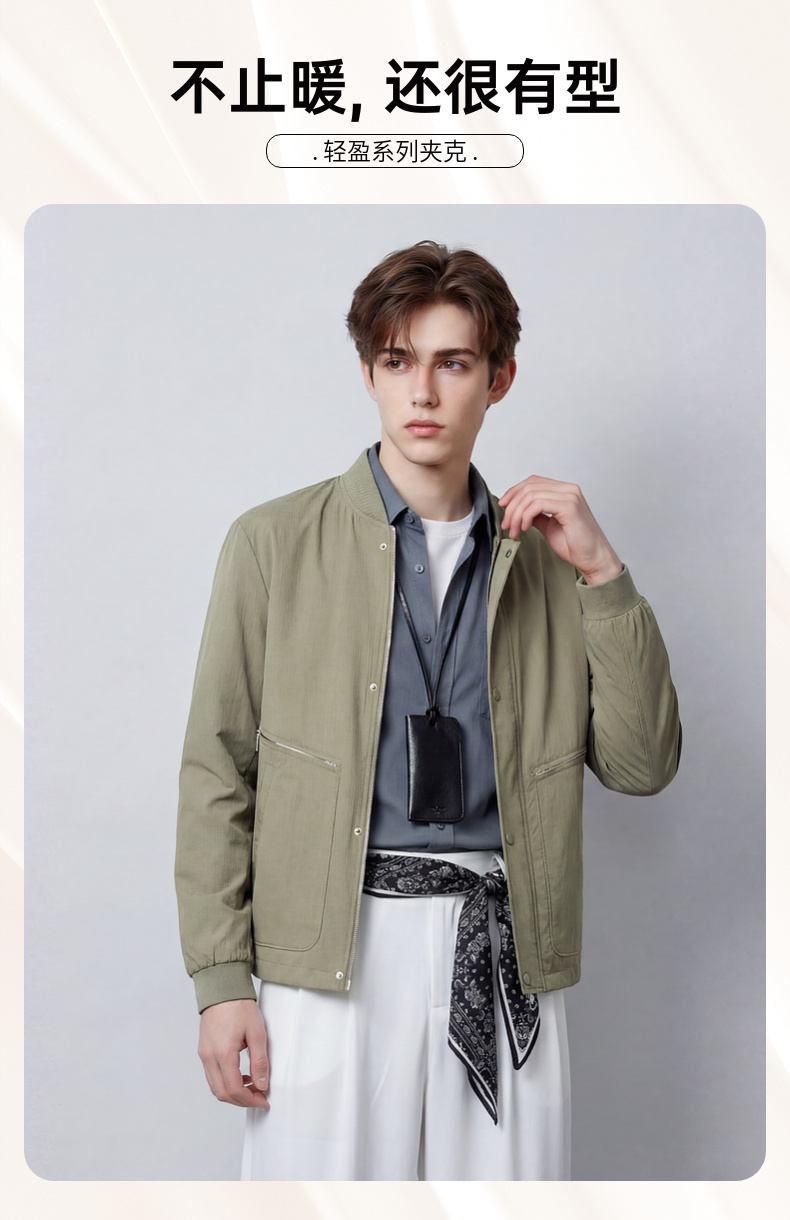 【易打理】圣得西轻便夹克2026新款春季棒球领纯色商务男士外套