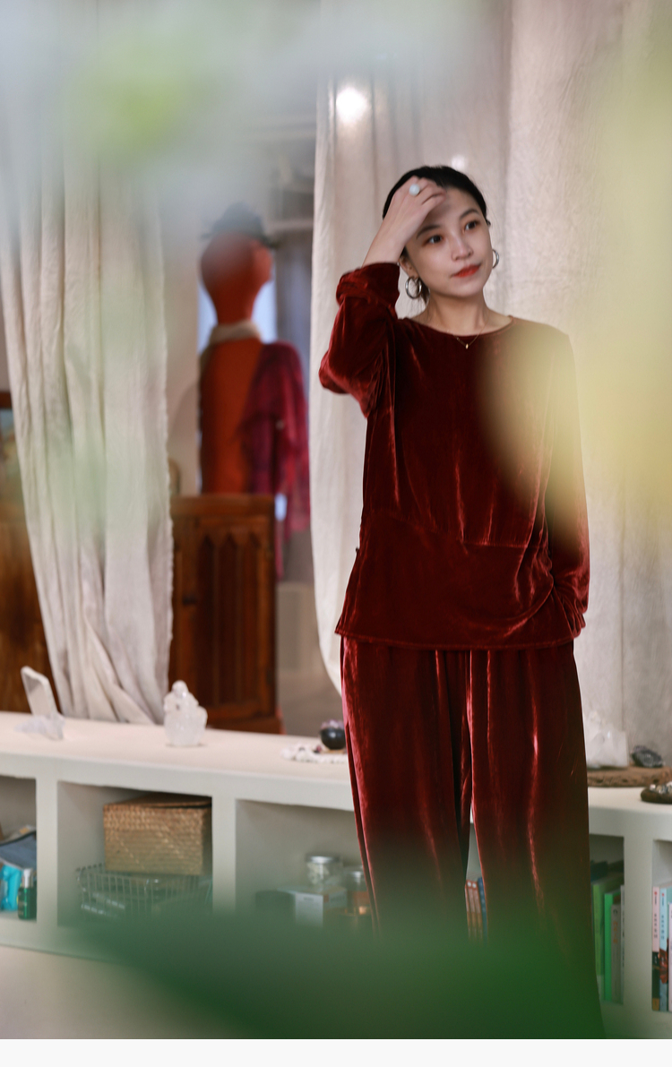 Petit Schan小闪 CLO#1038 A Moveable Feast 流动的盛宴 新年限定款重磅真丝丝绒染色套头上衣/裤子