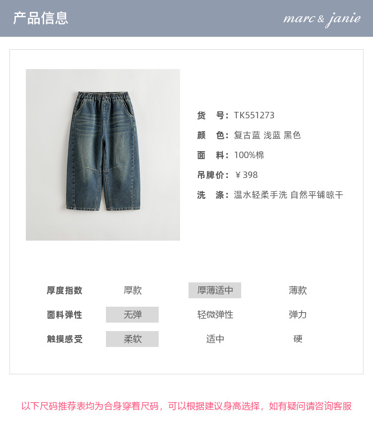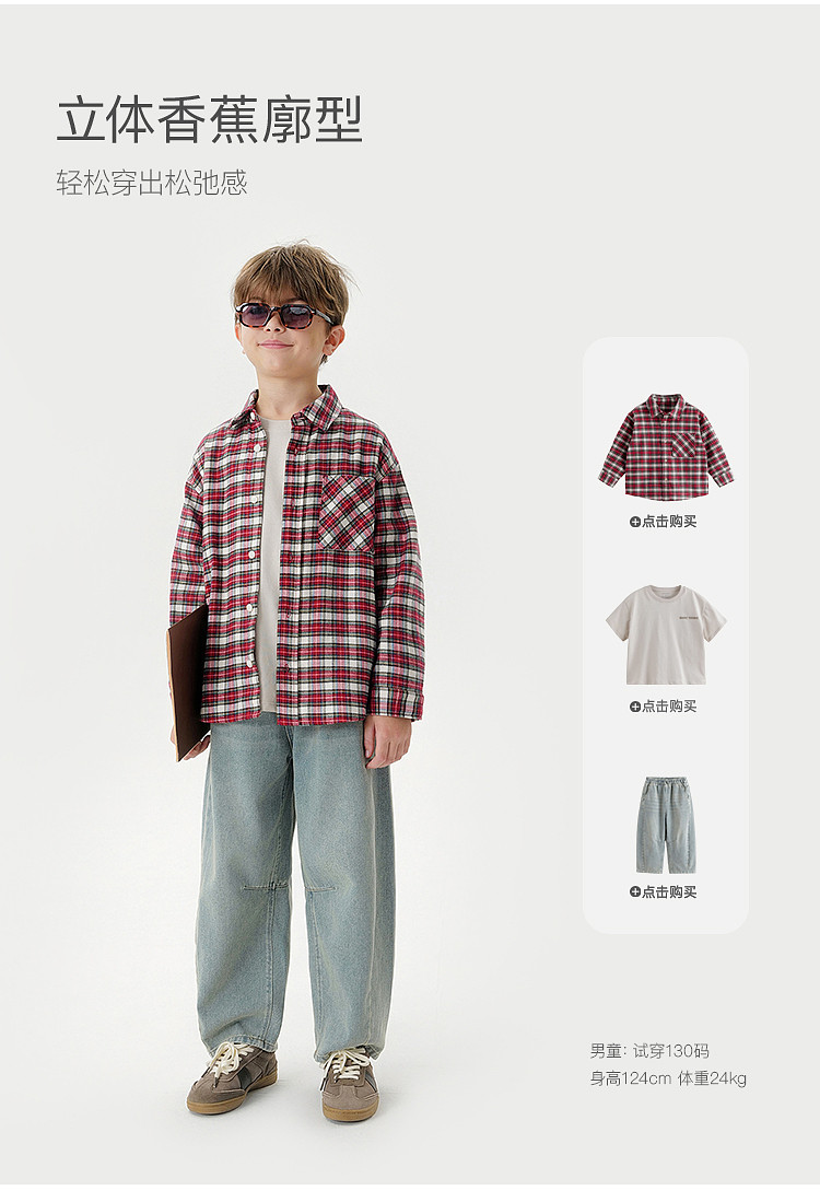 马克珍妮男童复古好搭牛仔香蕉裤 儿童裤子2025年秋装新品551273