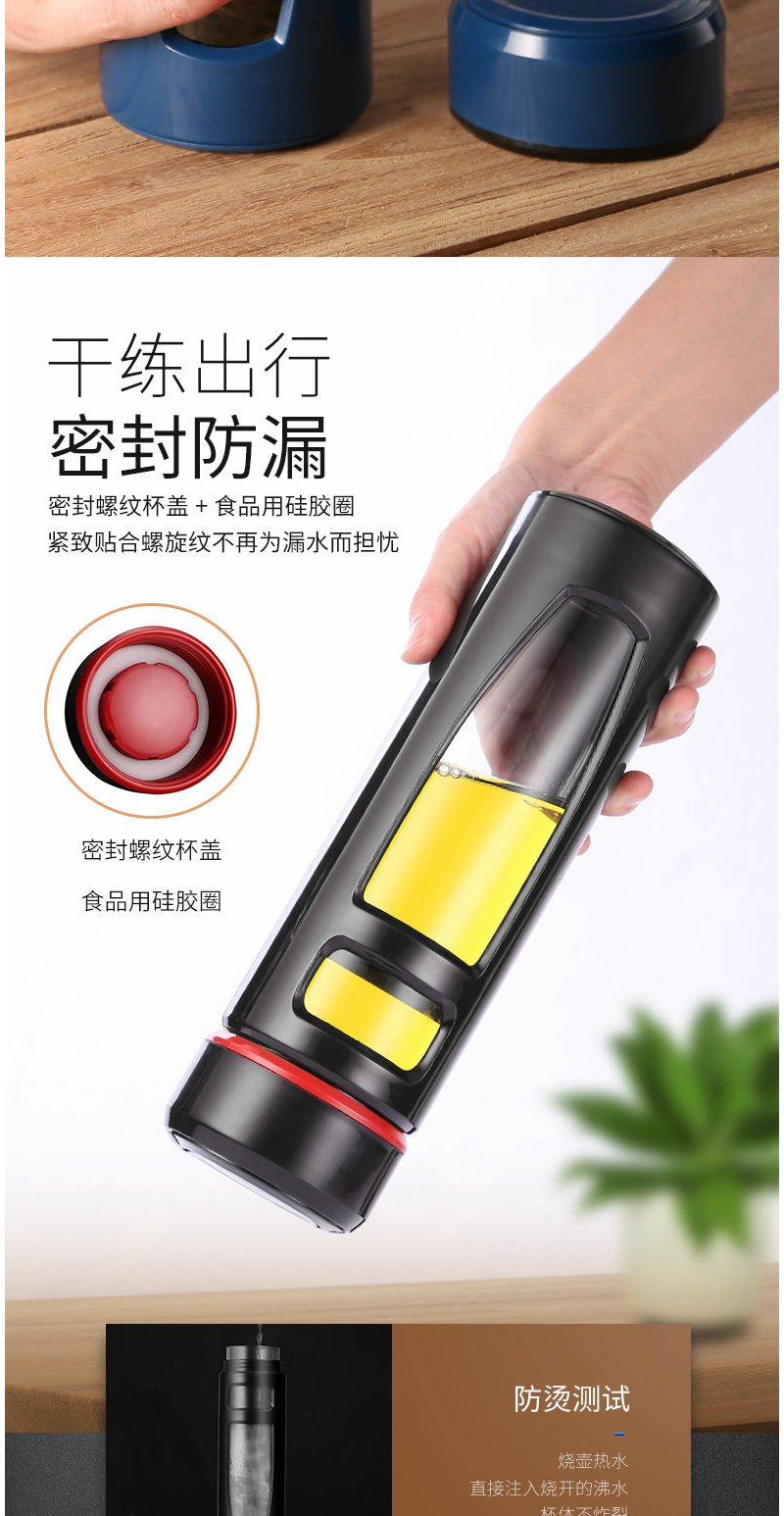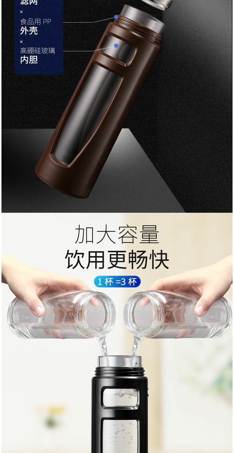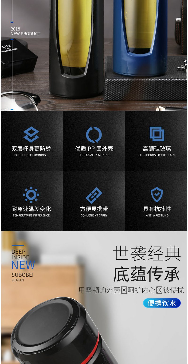大容量玻璃杯1000ml便携防摔随手男女办公礼品定制双层塑玻杯茶杯