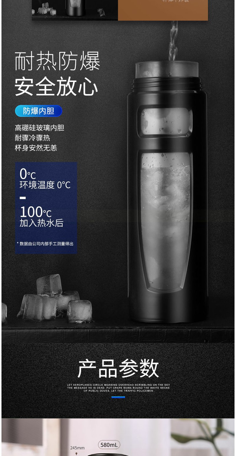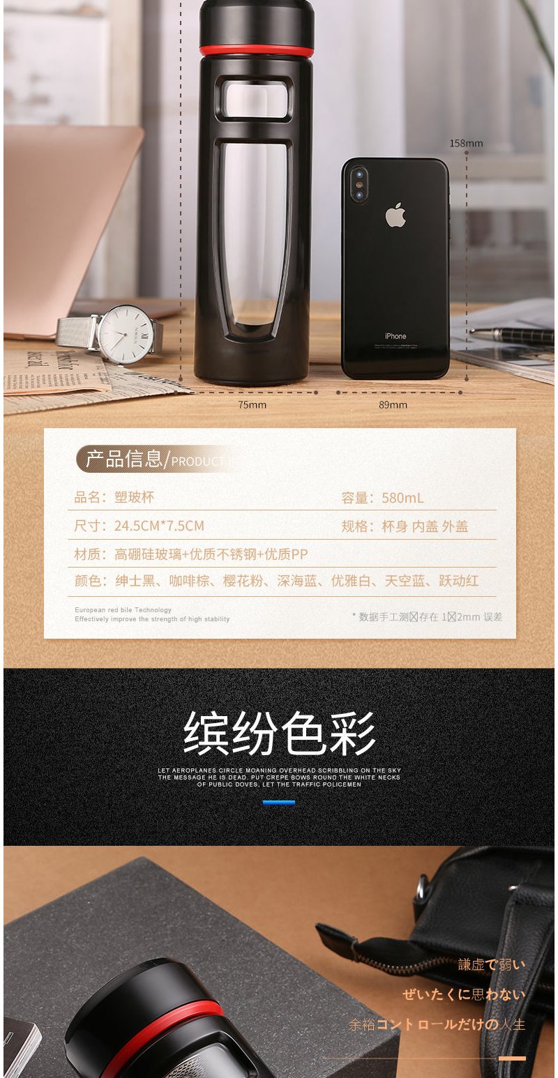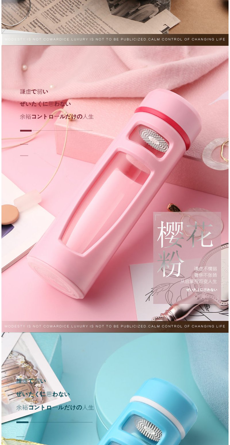 大容量玻璃杯1000ml便携防摔随手男女办公礼品定制双层塑玻杯茶杯