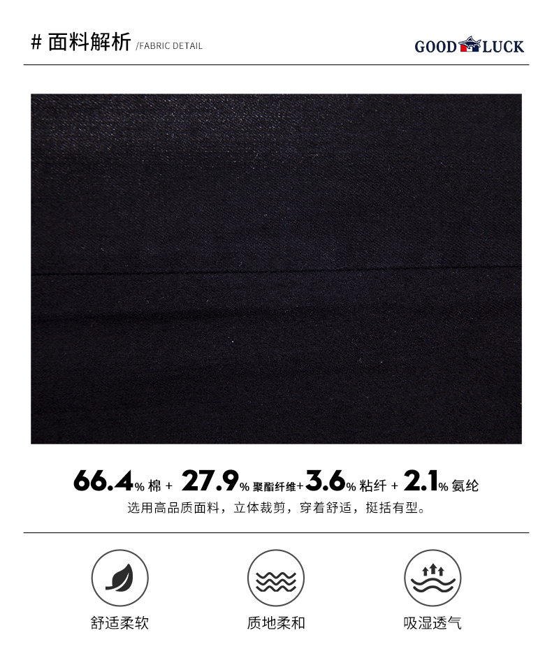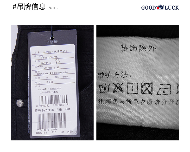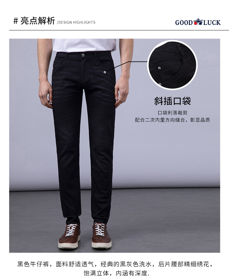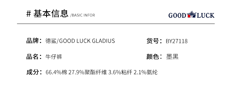 GOOD LUCK/德鲨弹力棉质混纺舒适直筒修身水洗牛仔裤BY27118-810