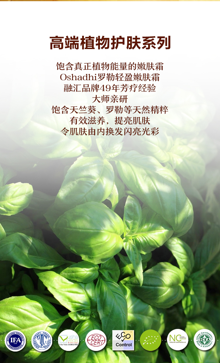 Oshadhi德国O家罗勒轻盈嫩肤霜面霜面部精华日霜晚霜滋润肌肤JPY带授权招加盟代理