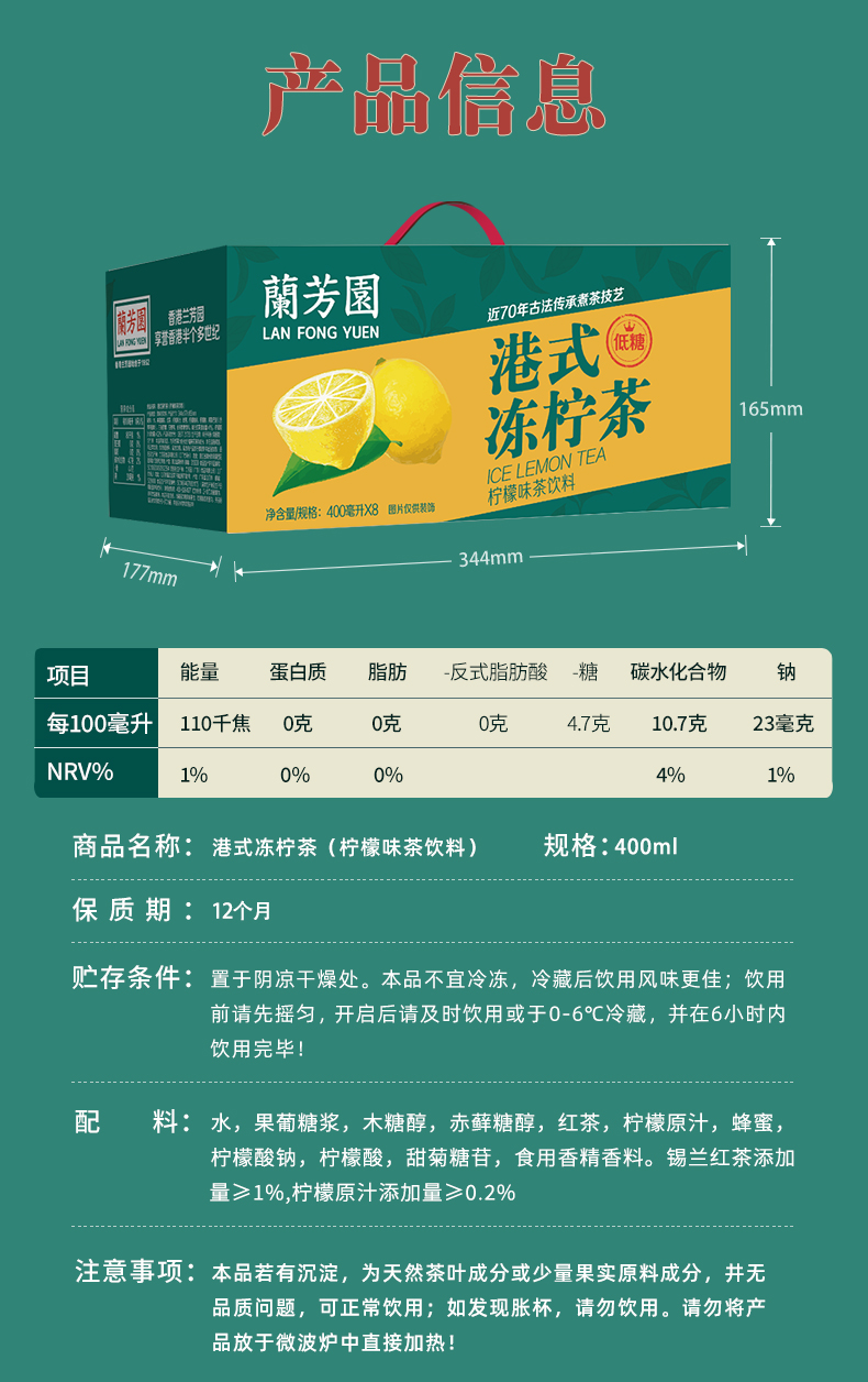 蘭芳園 LAN FONG YUEN 兰芳园正宗港式冻柠茶礼盒装400ml*8杯