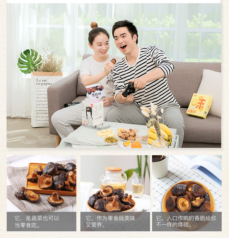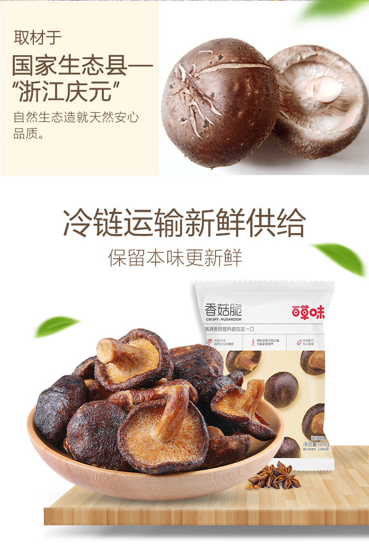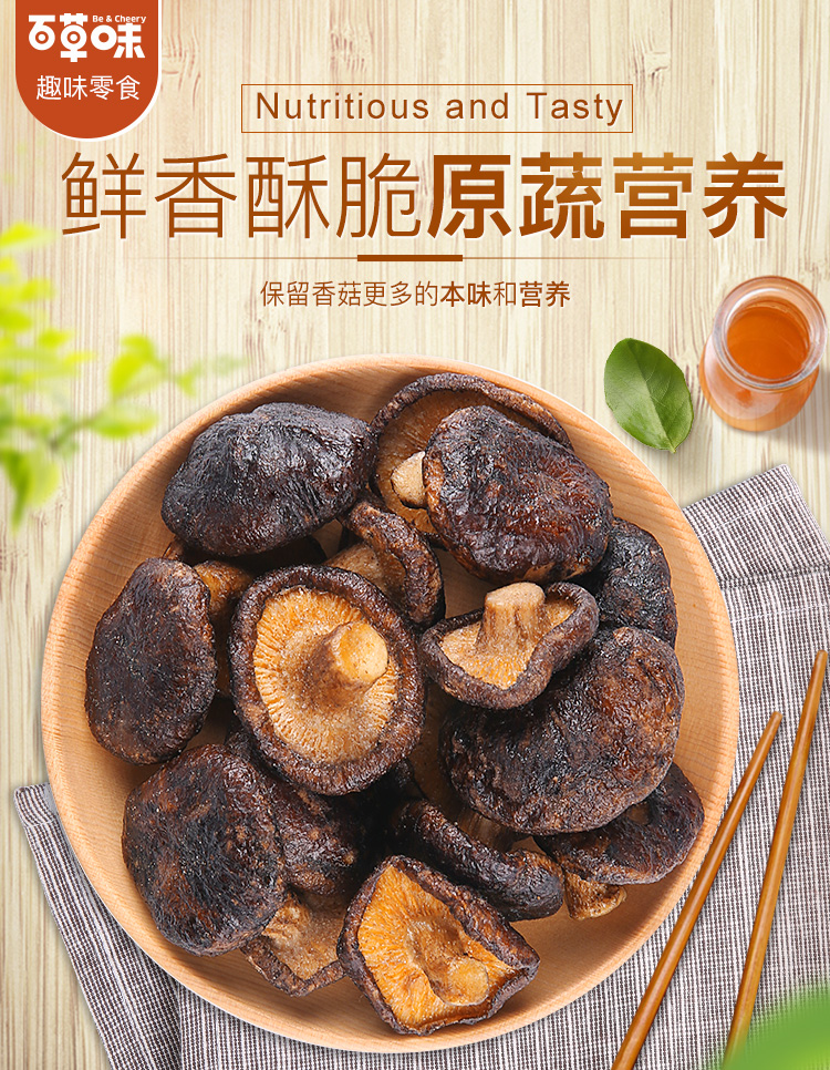百草味 香菇脆54g/袋 果干蜜饯 零食即食脱水蔬菜干蔬果脆休闲食品山珍香菇干蘑菇干