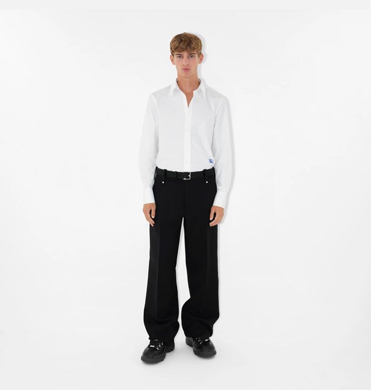 BURBERRY 巴宝莉 男士马术骑士徽标棉质长袖衬衫 白色 8079019 A1464