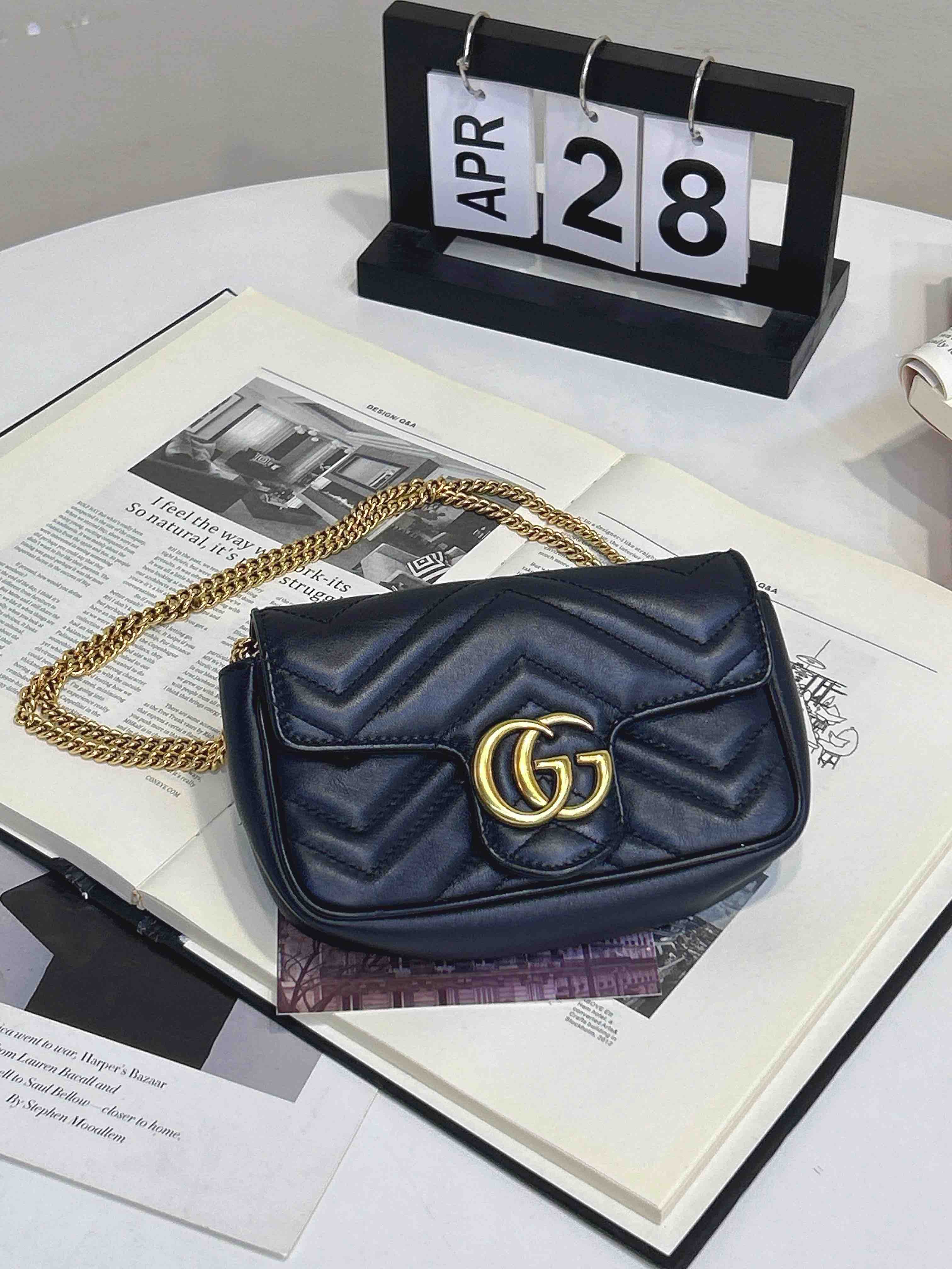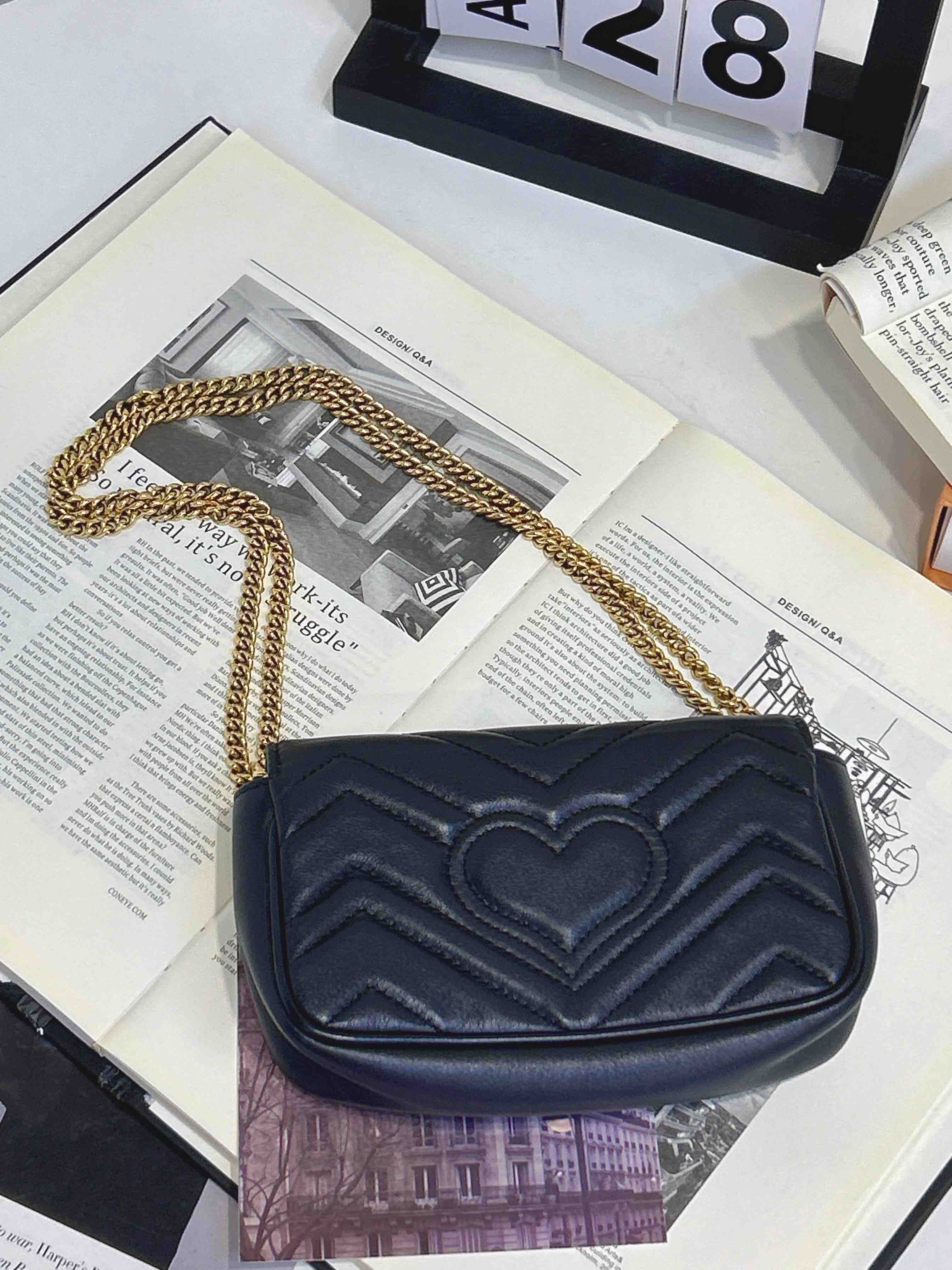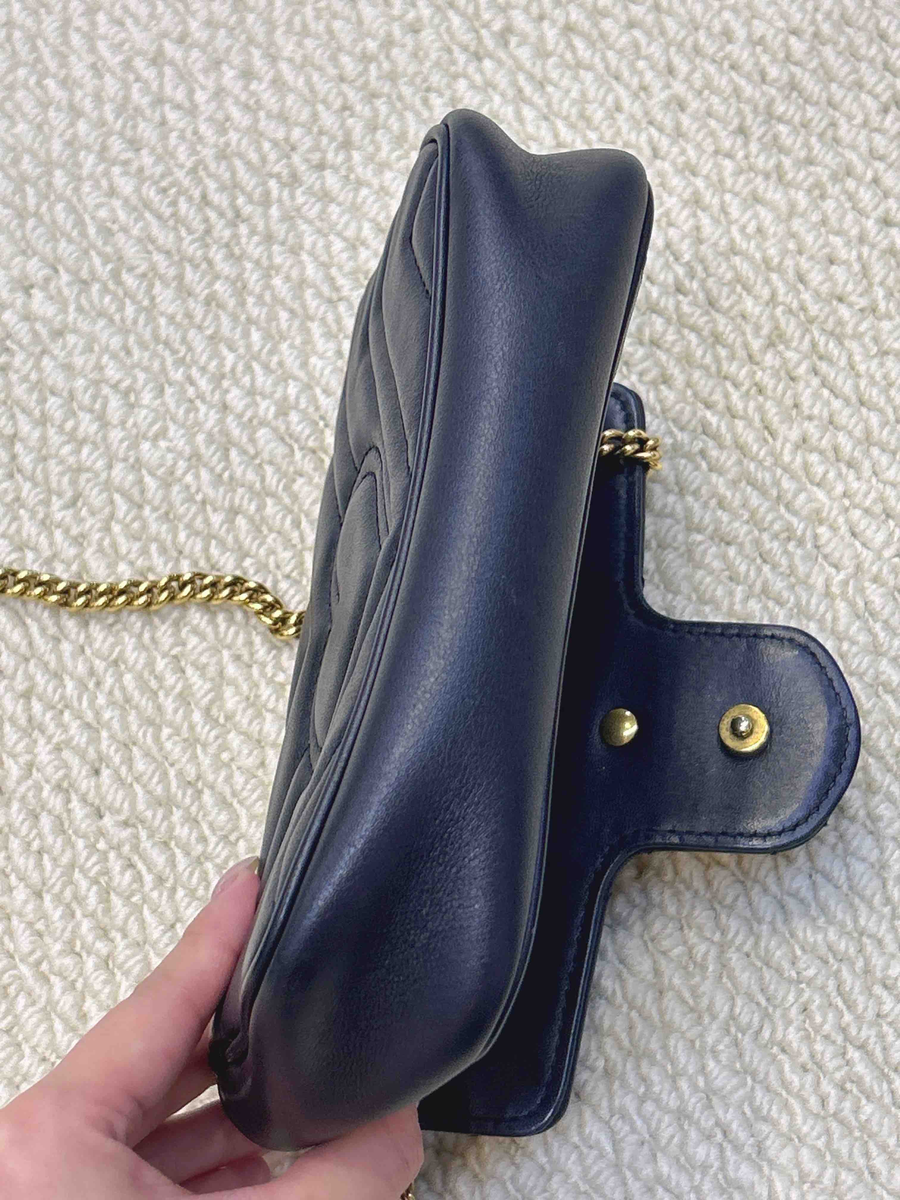 【商品详情】正品二手 Gucci mini 黑金 牛皮 双g 马蒙 斜挎包🥝 97新 17x9 缺钥匙扣 底边有一处微微使用磨损感绝 内翻盖轻微使用感 经典百搭