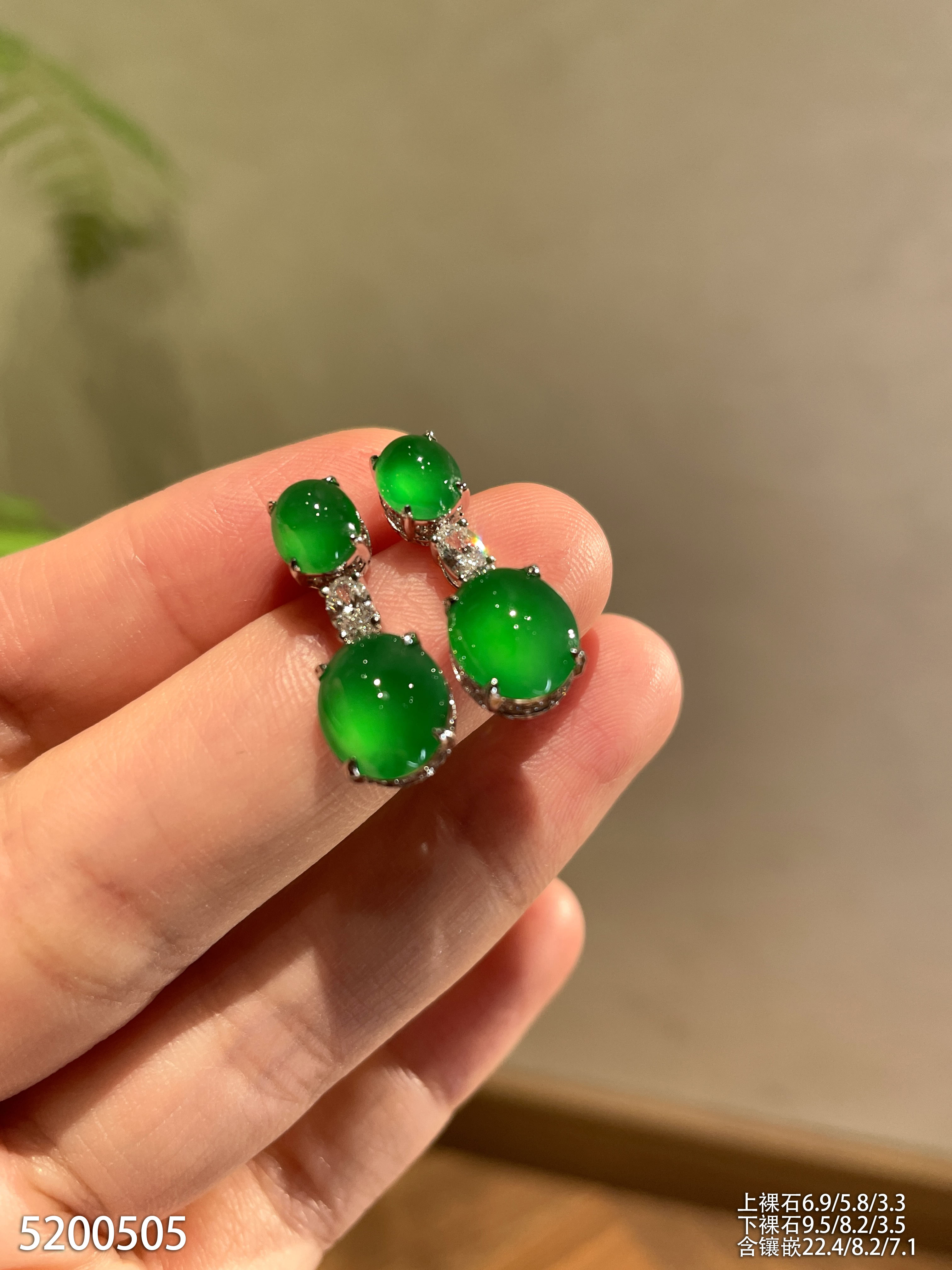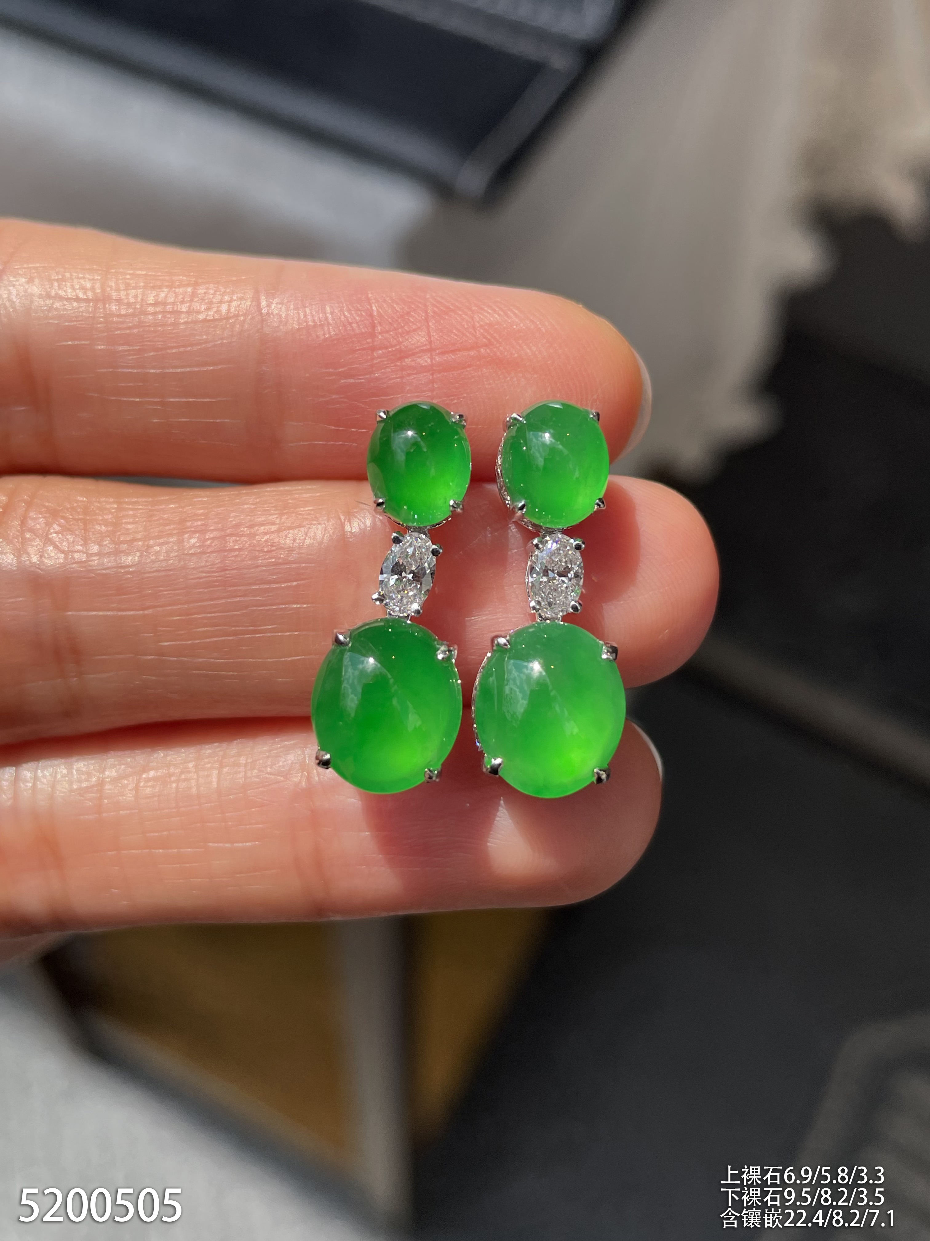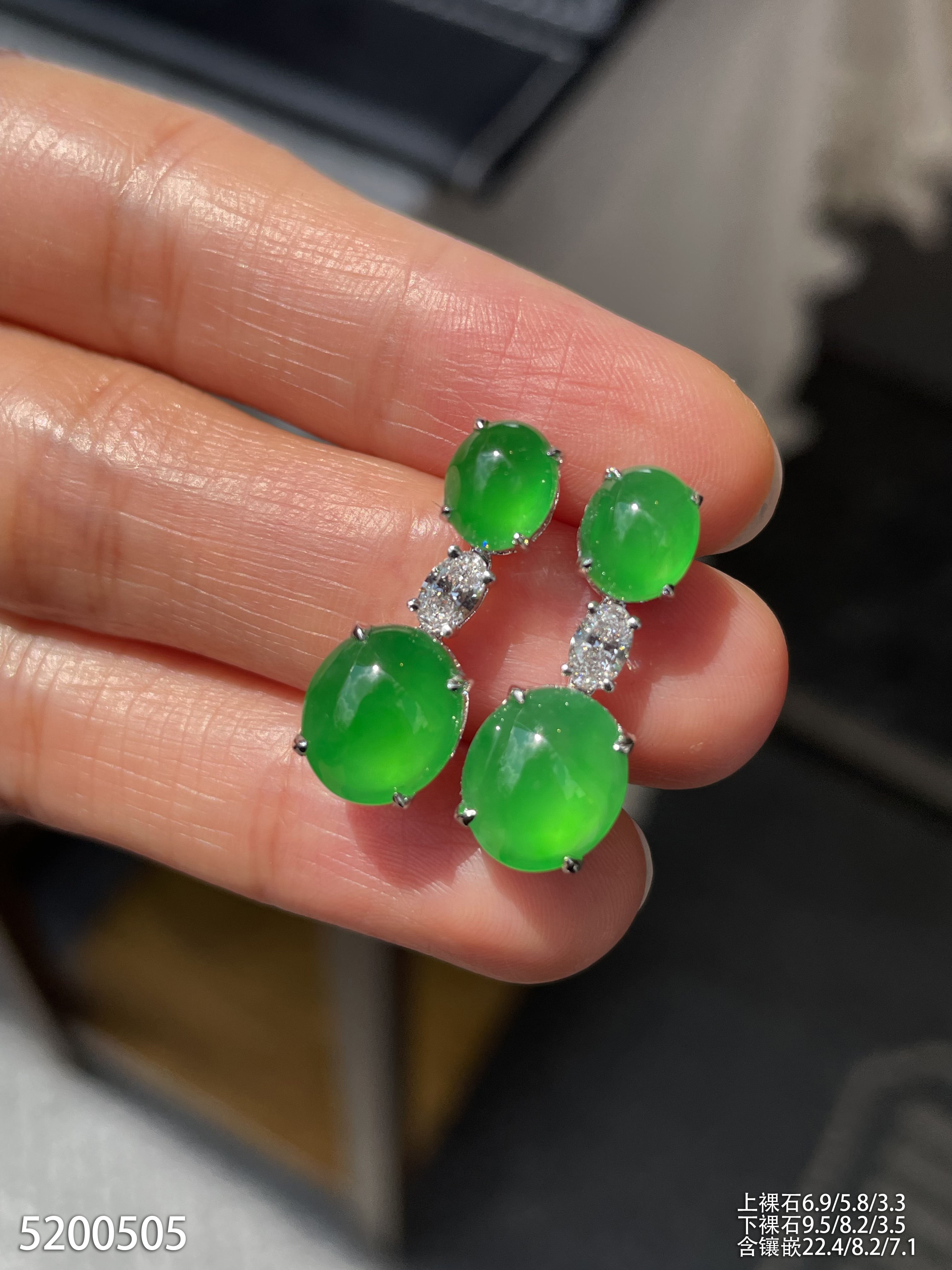 老坑玻璃种艳绿蛋面耳坠【5200505】具体价格微信咨询