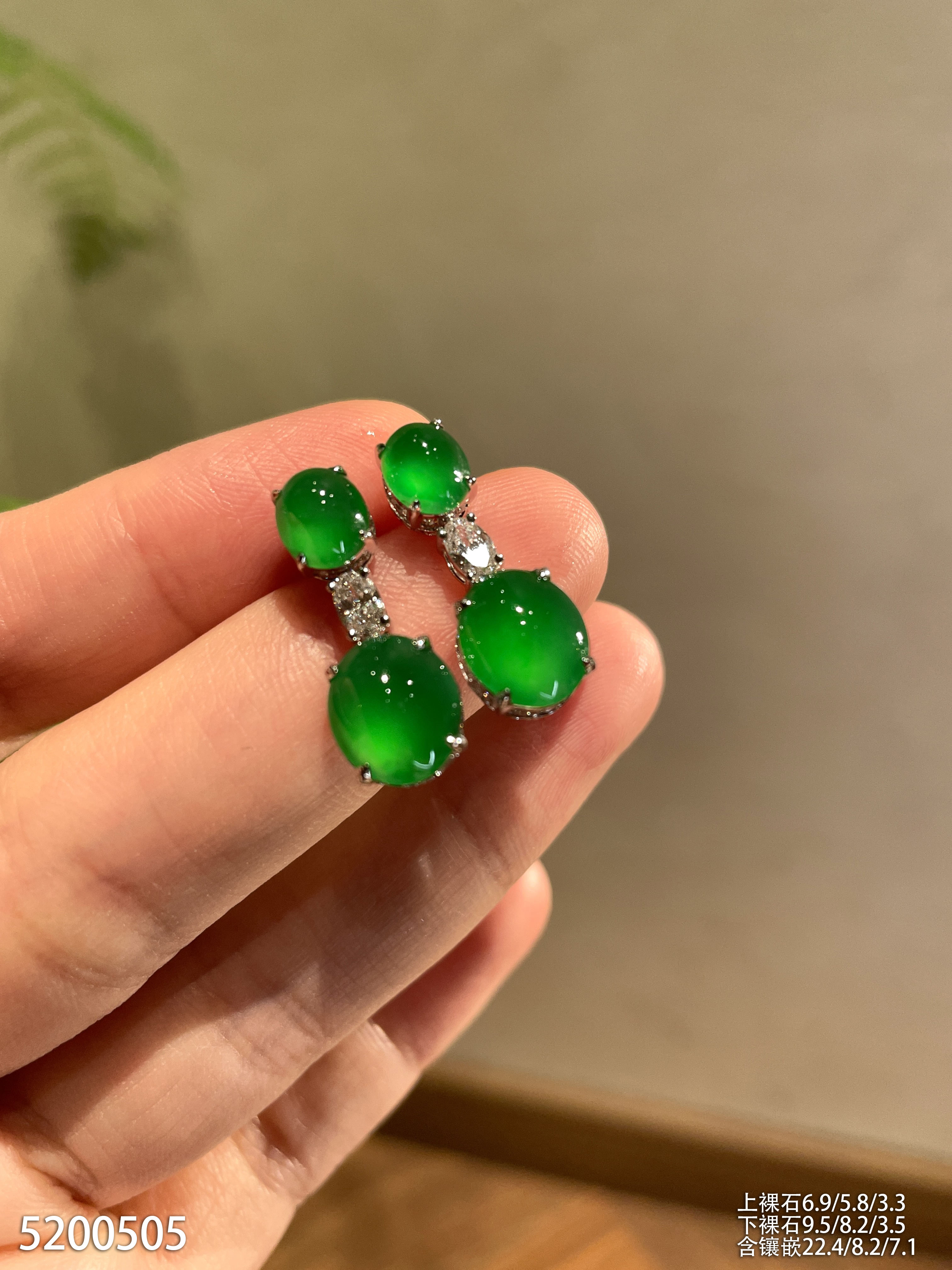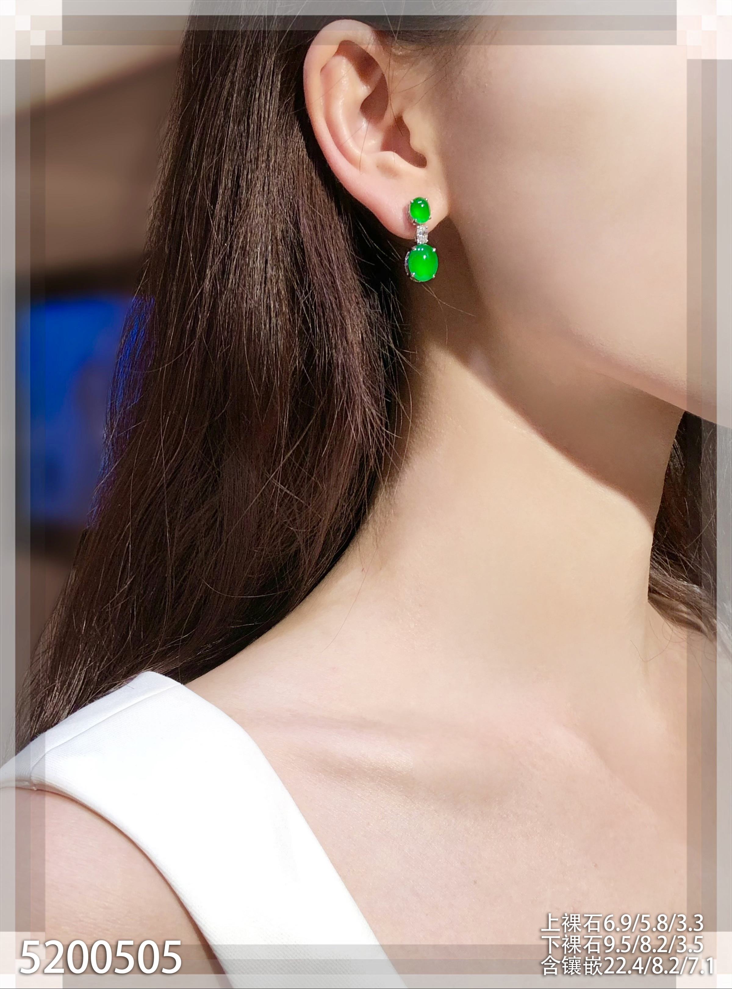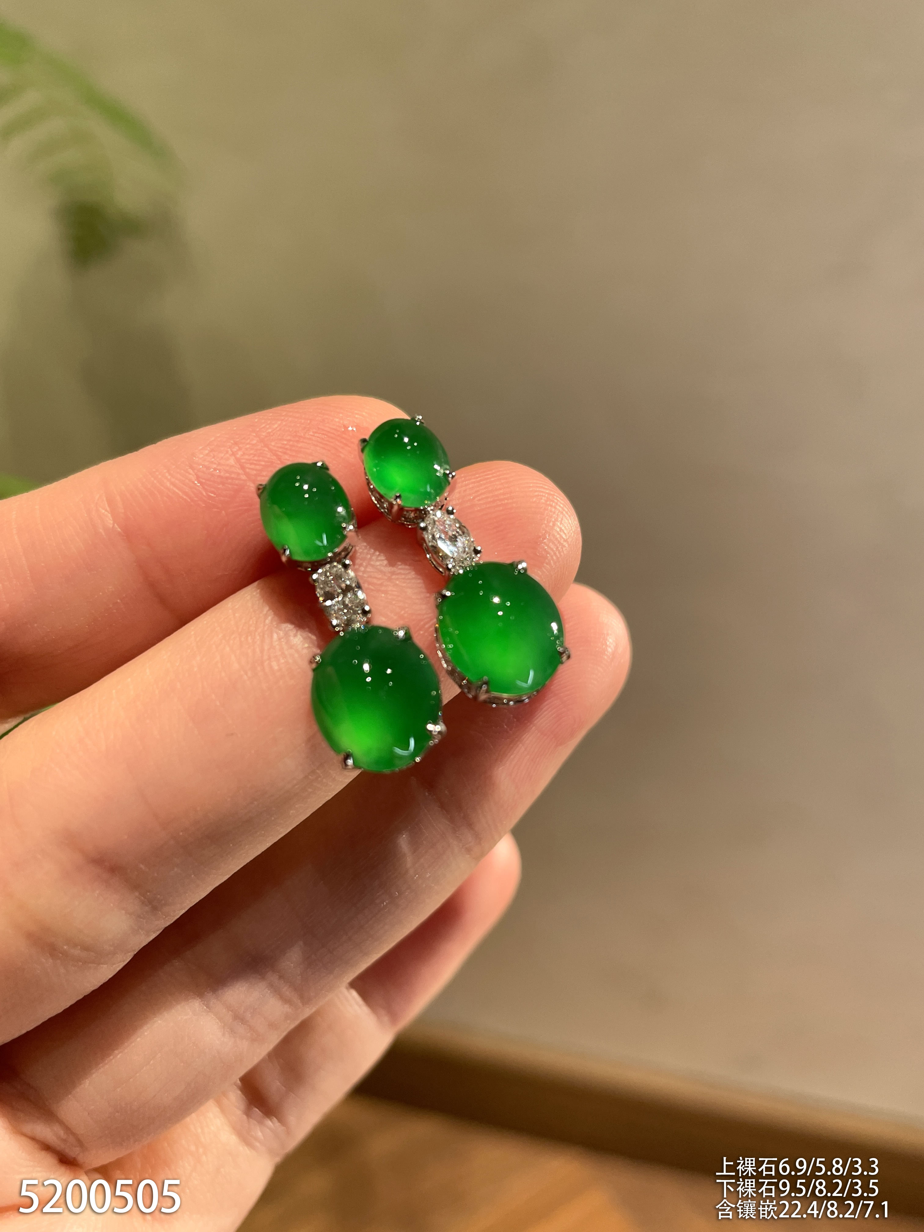 老坑玻璃种艳绿蛋面耳坠【5200505】具体价格微信咨询