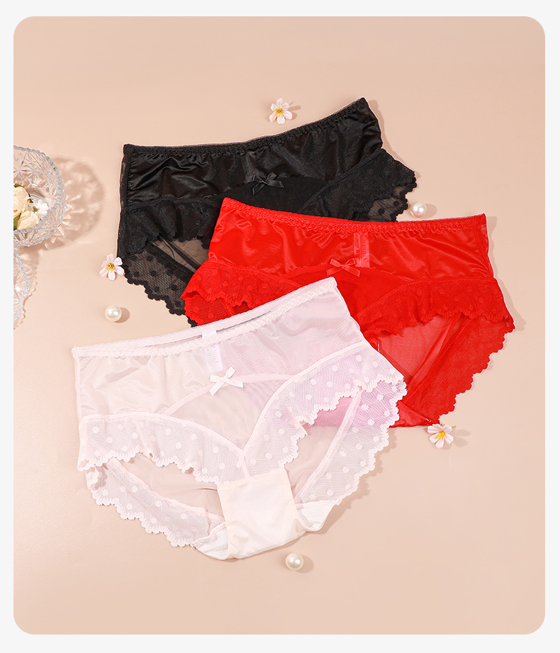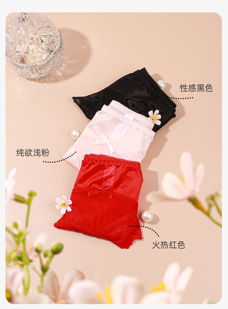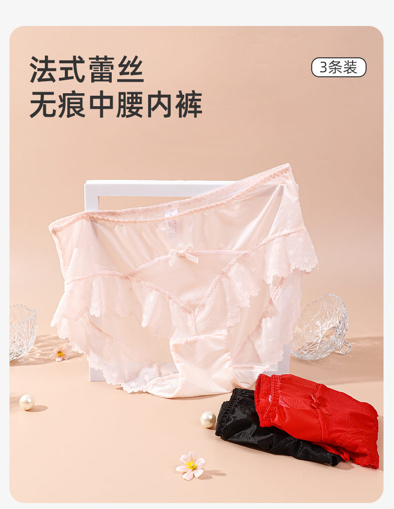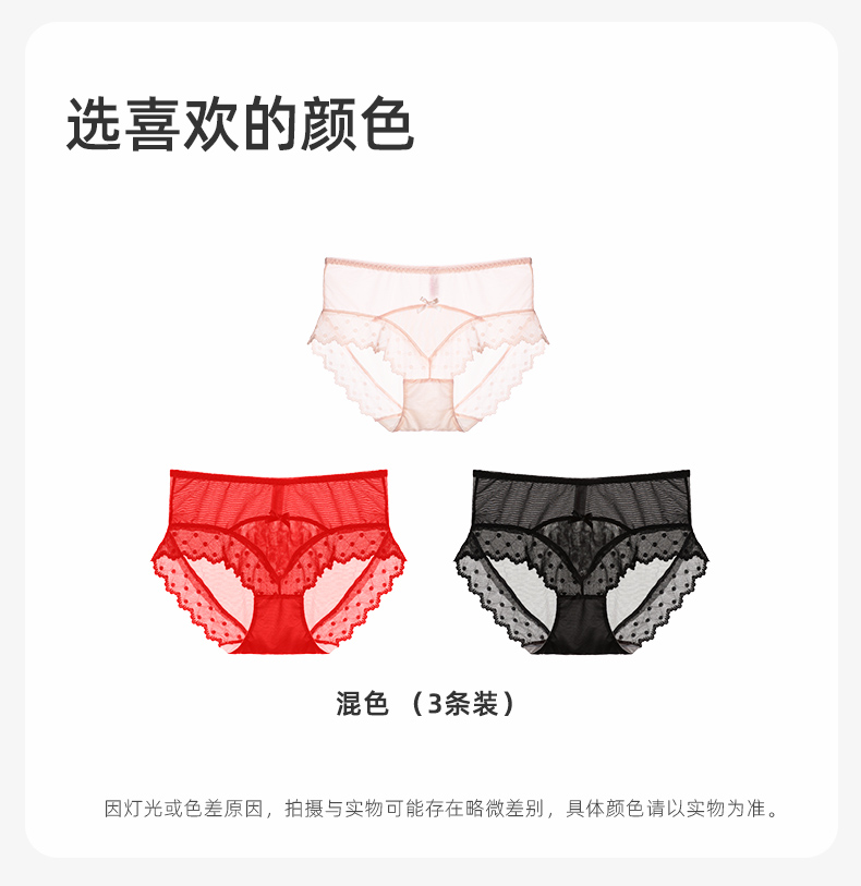 【3条装】熳洁儿女士内裤混色舒适透气无痕三角裤性感蕾丝中腰内裤23762110