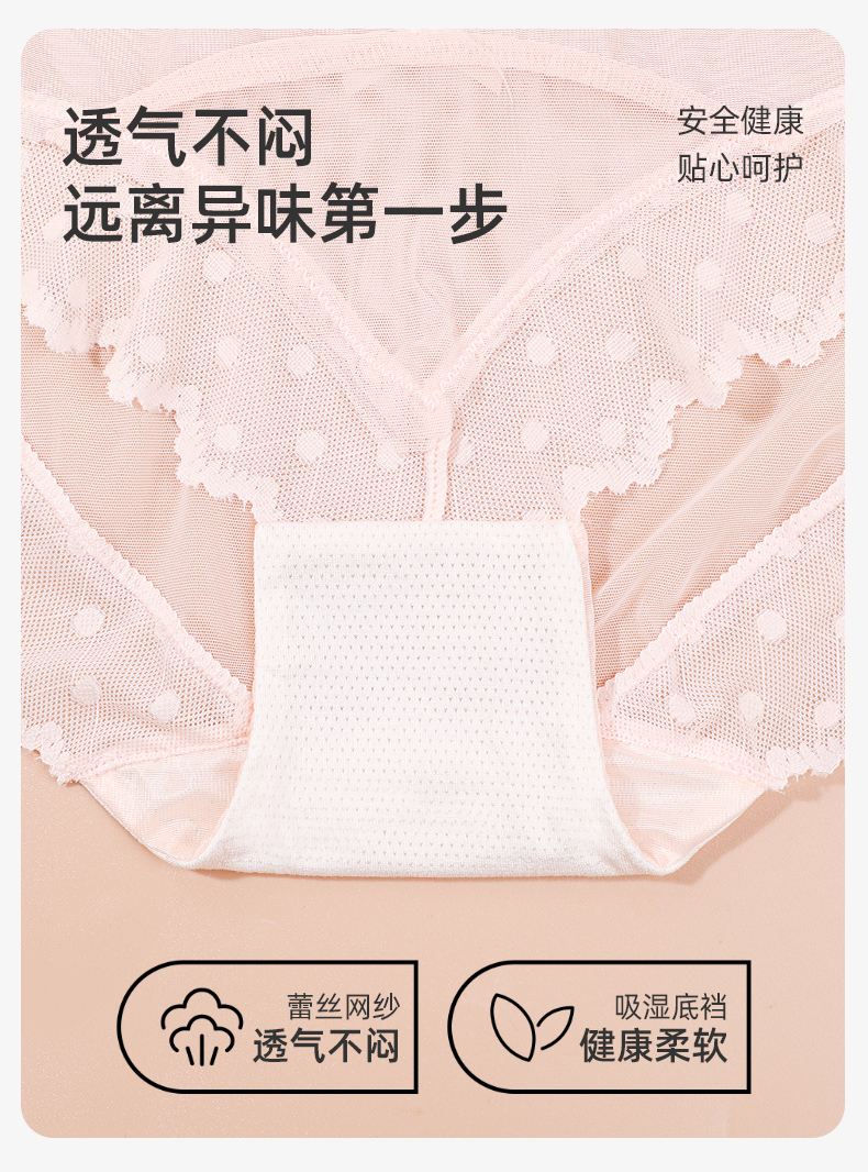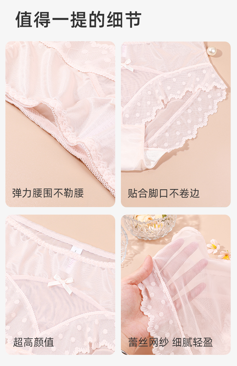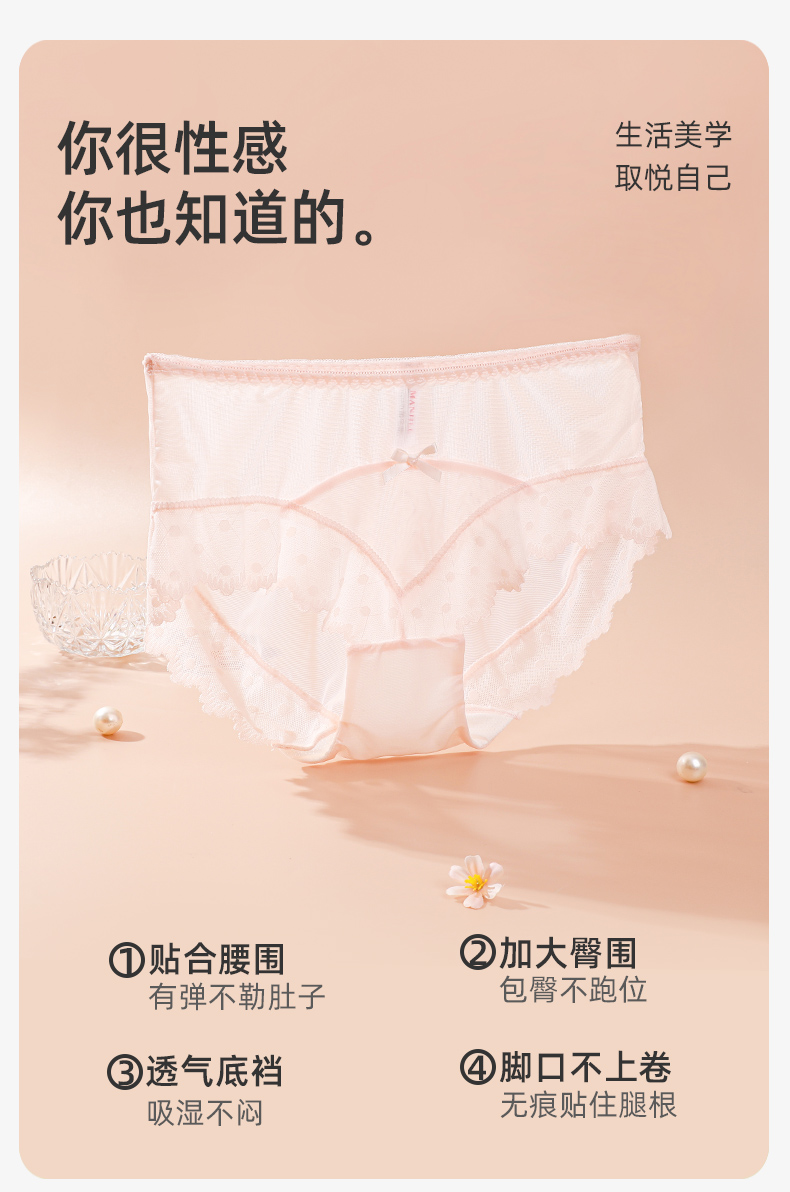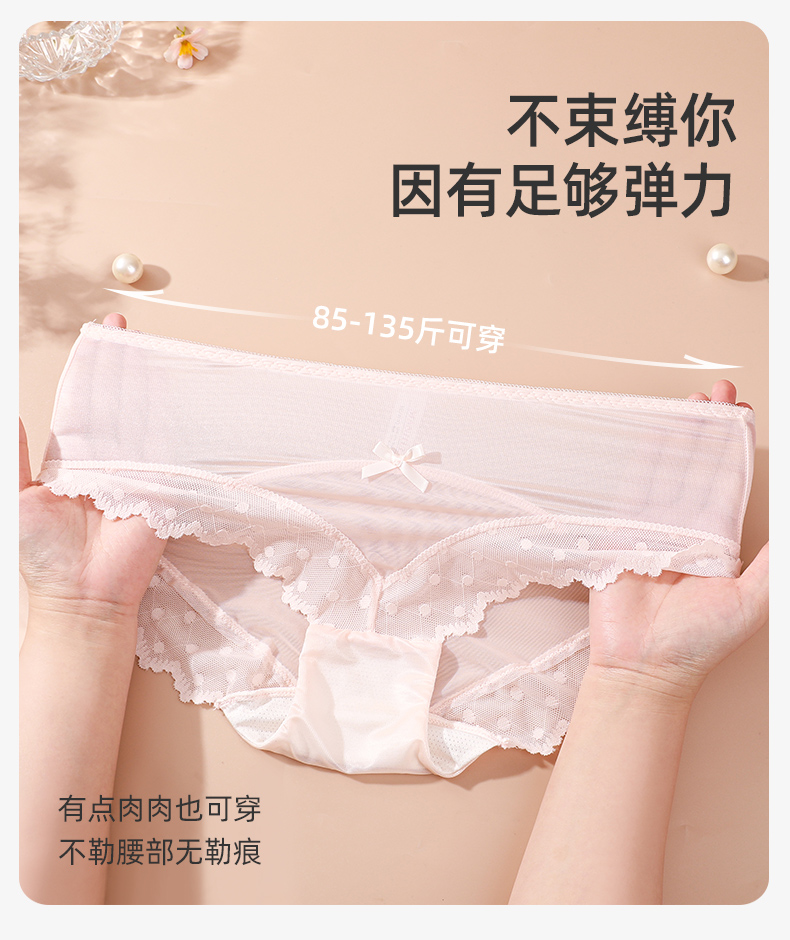 【3条装】熳洁儿女士内裤混色舒适透气无痕三角裤性感蕾丝中腰内裤23762110