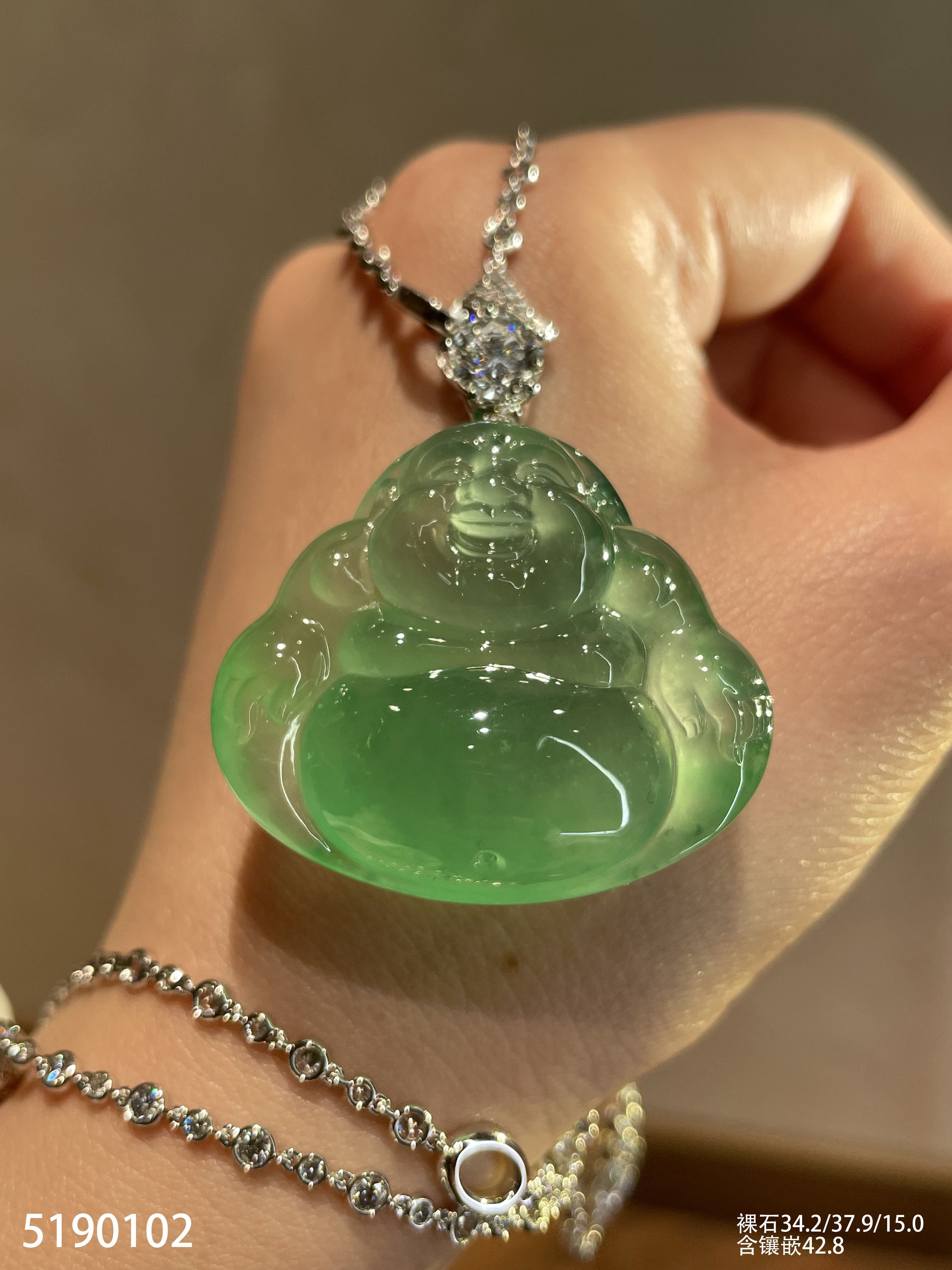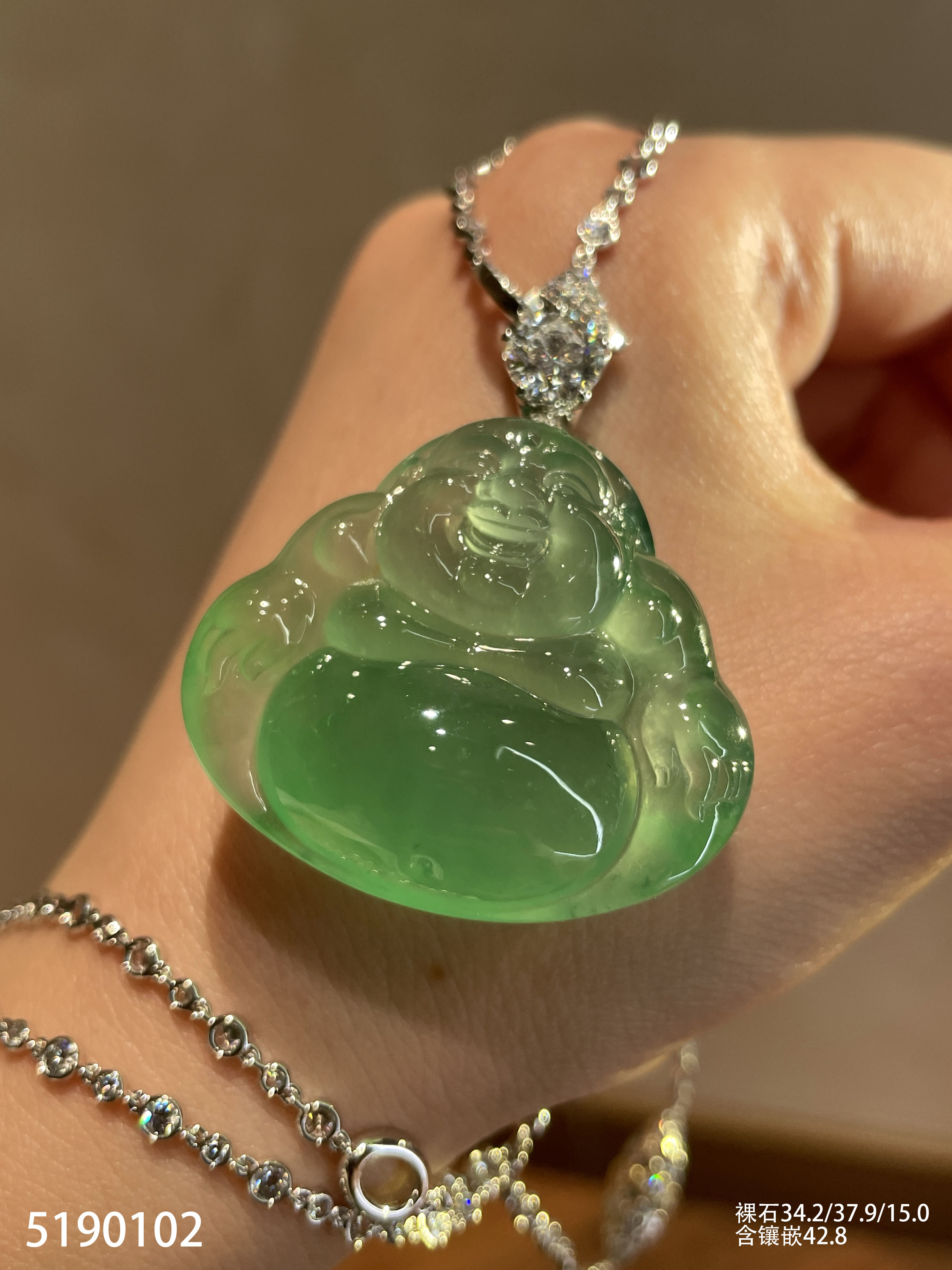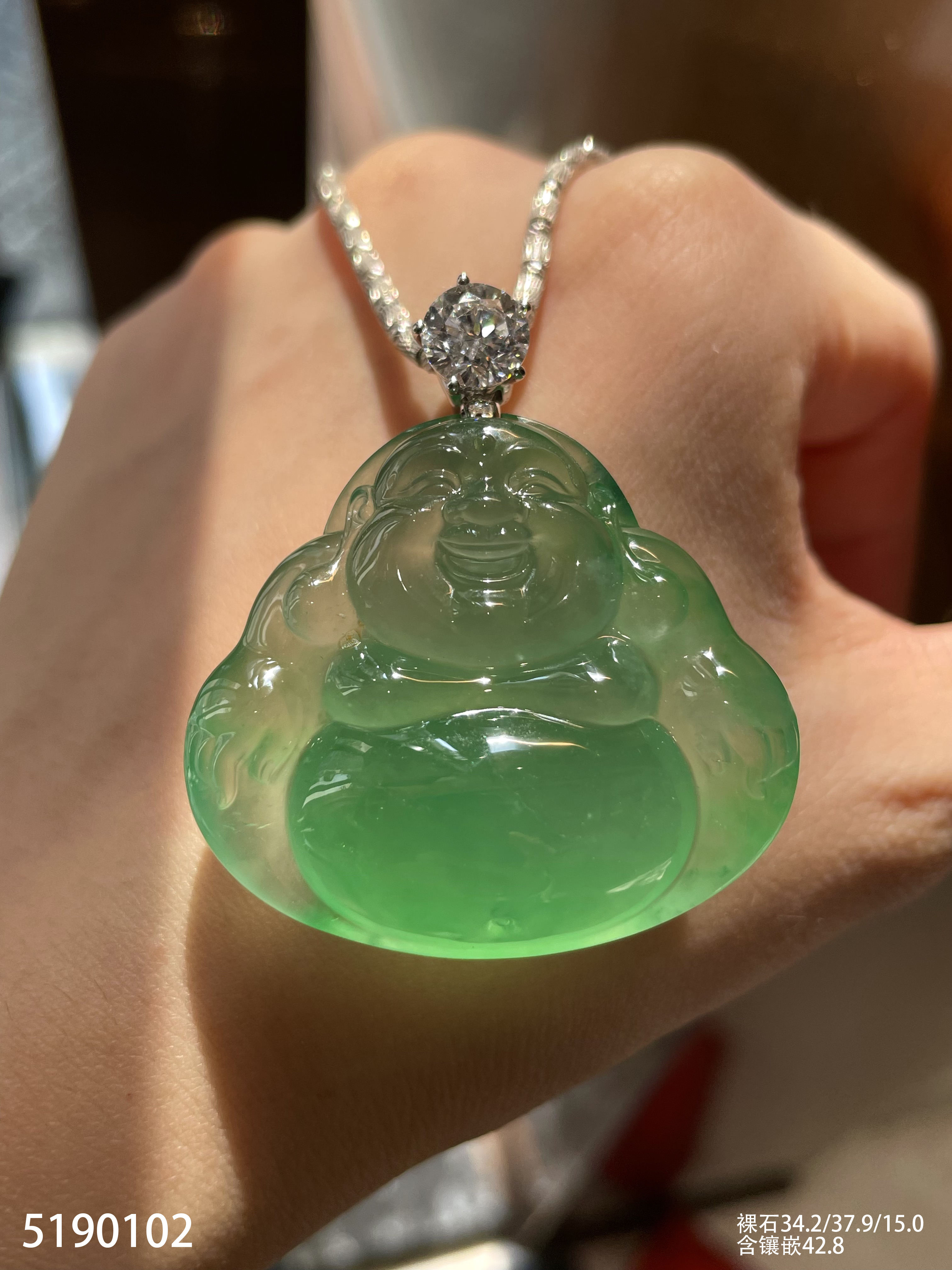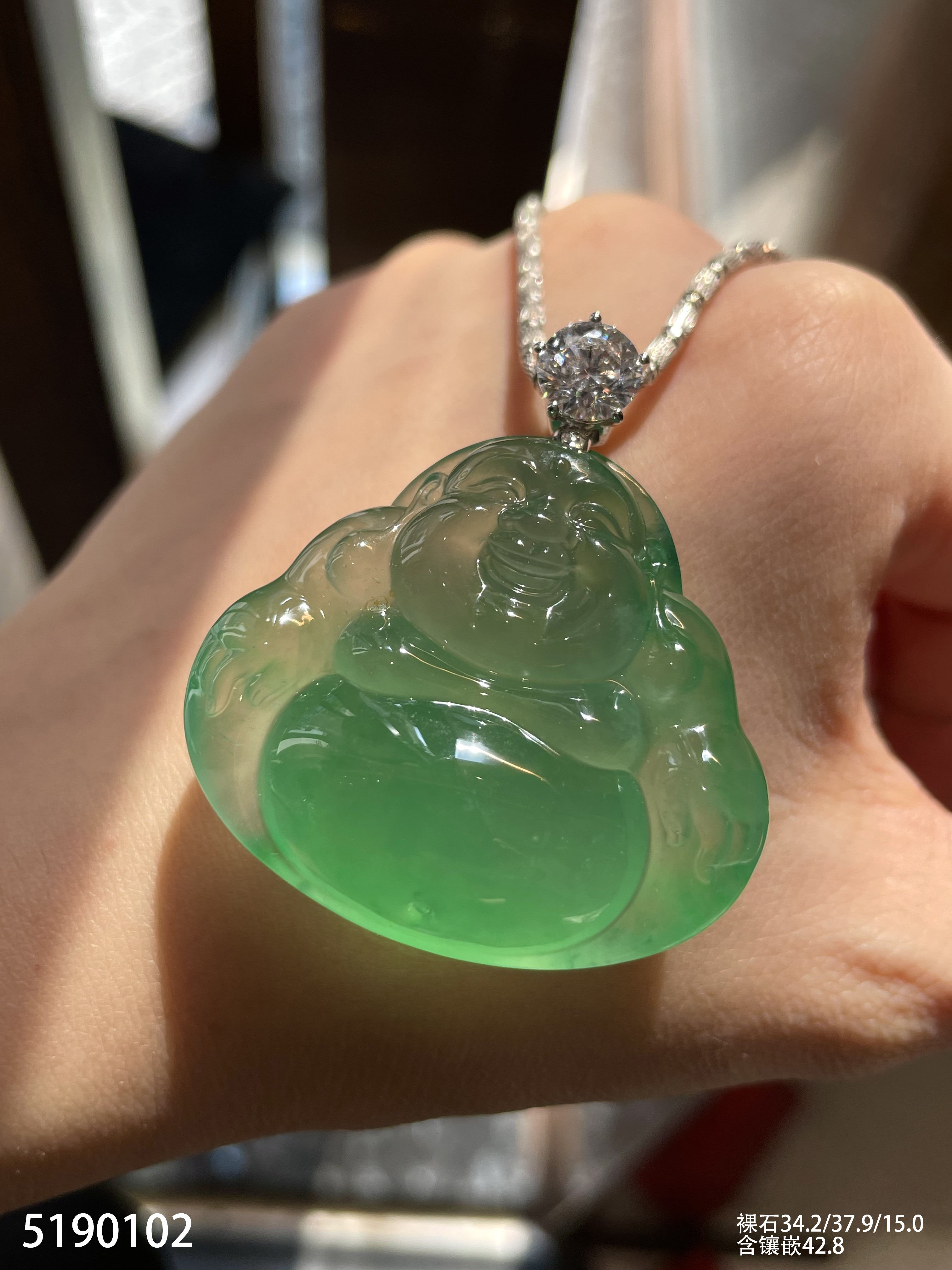 玻璃种飘翠佛公吊坠【5190102】具体价格微信咨询