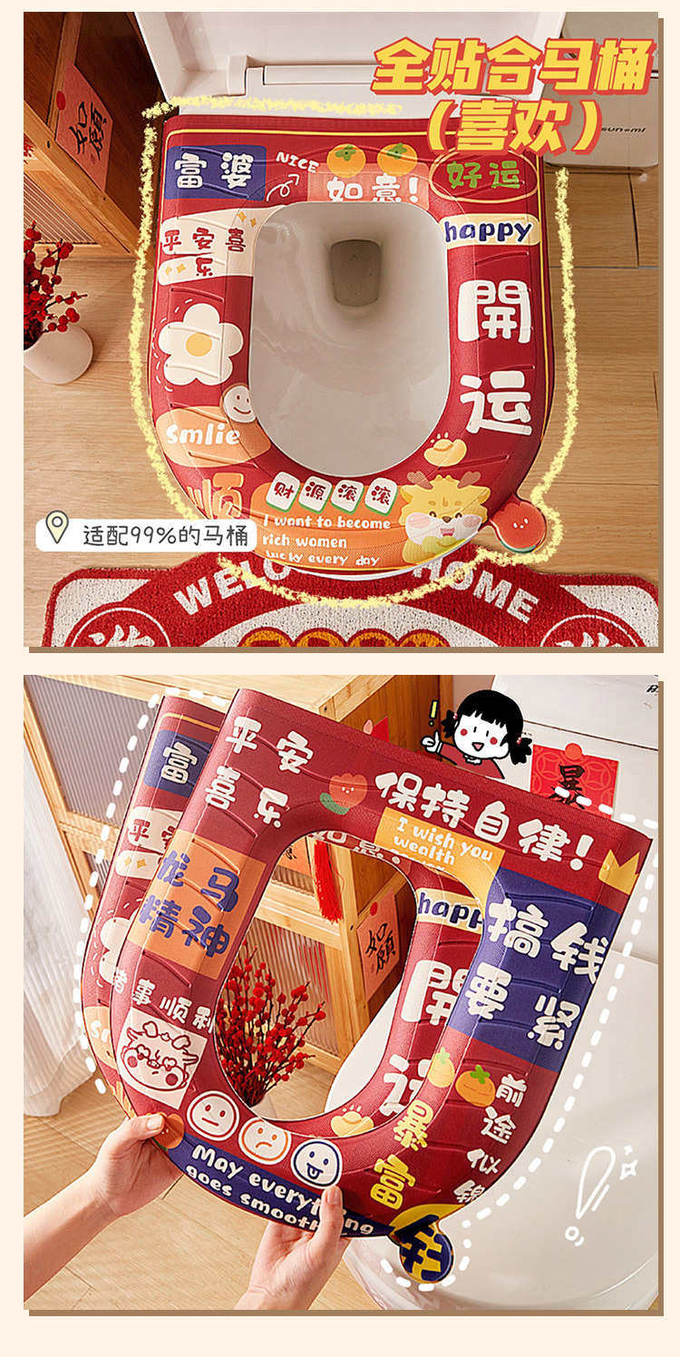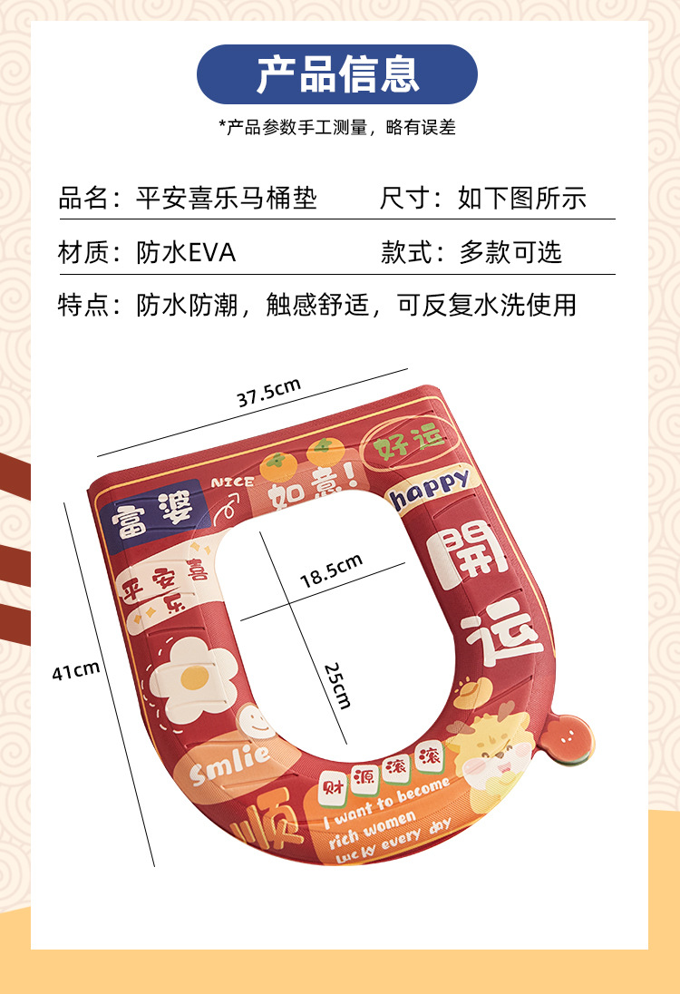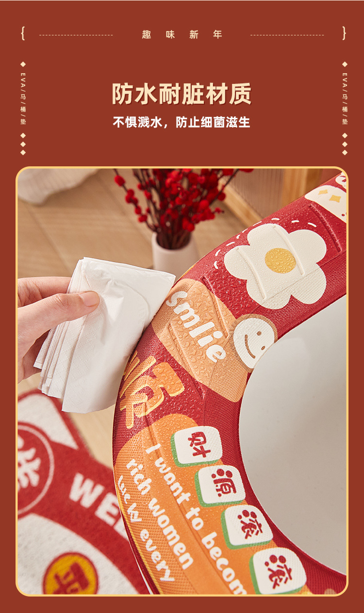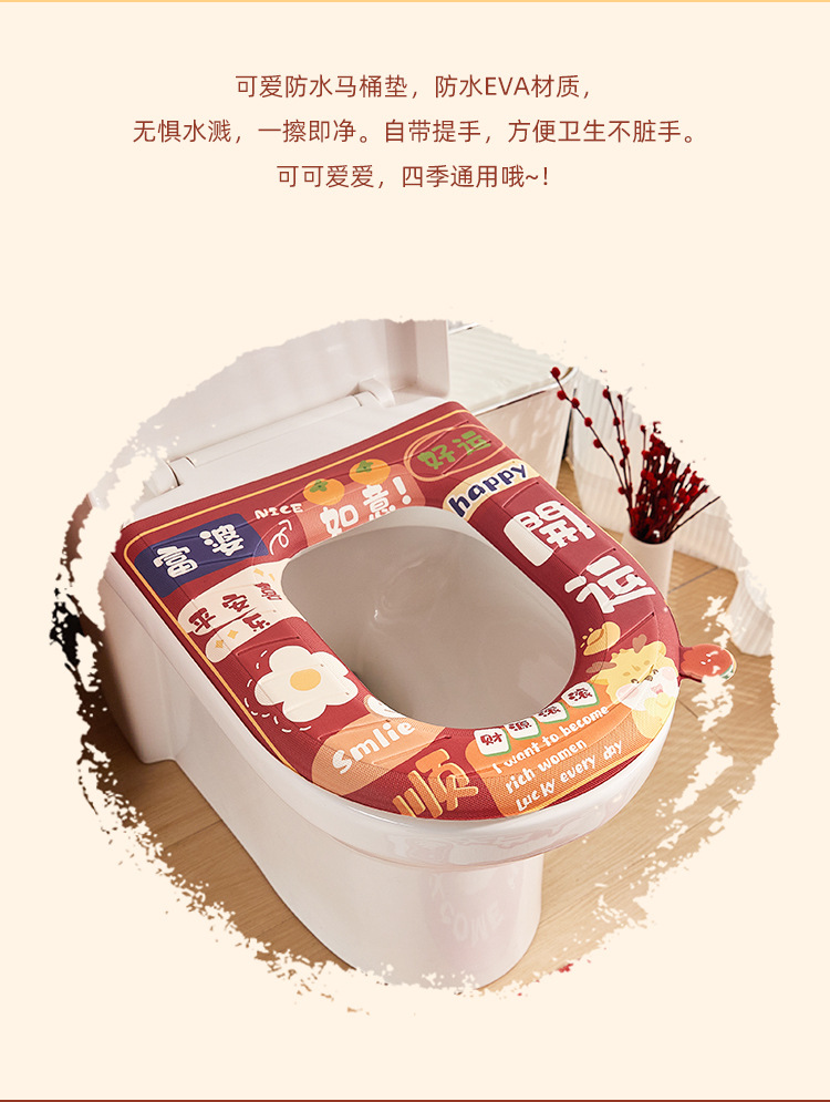 「平安喜乐款!新年新气象」eva马桶垫子四季通用可水洗马桶圈硅胶泡沫防水居家日用免洗座便器坐垫圈