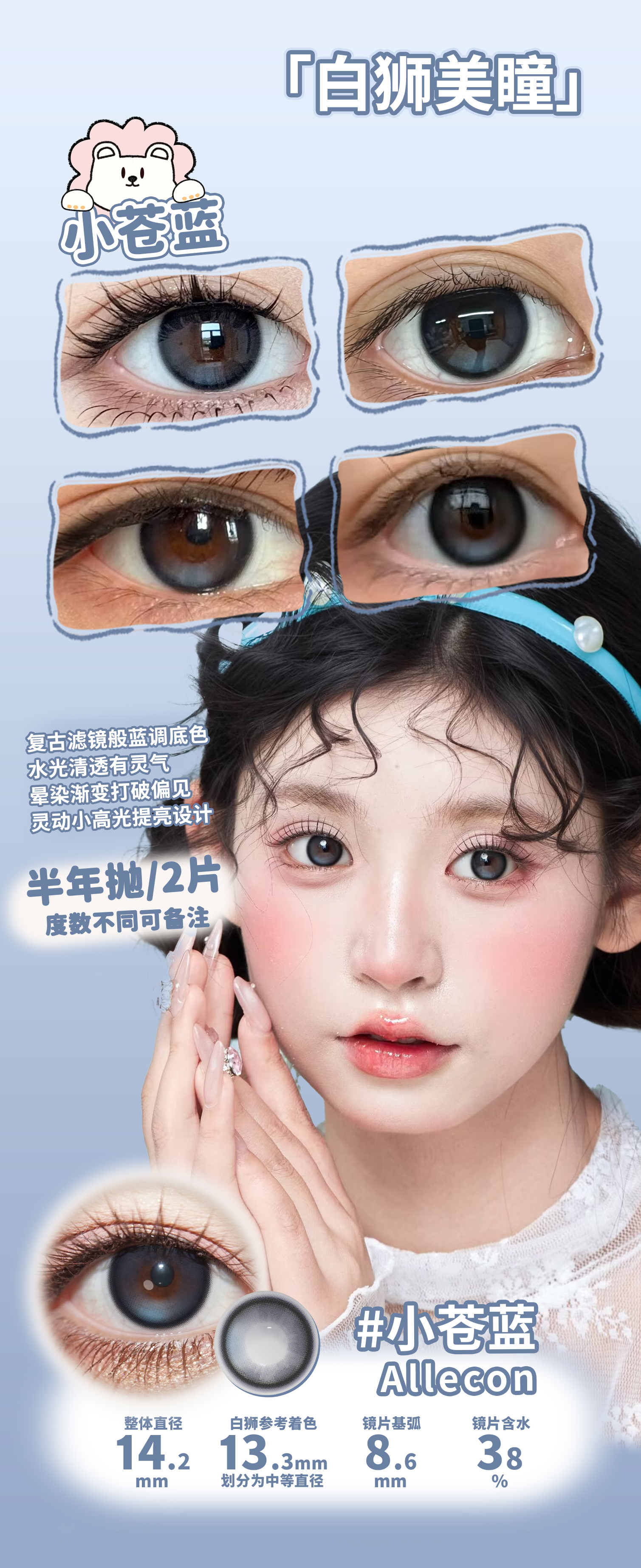 Allecon半年抛款式 · 小苍蓝 · 14.5mm白狮参考着色大直径· 韩产2片