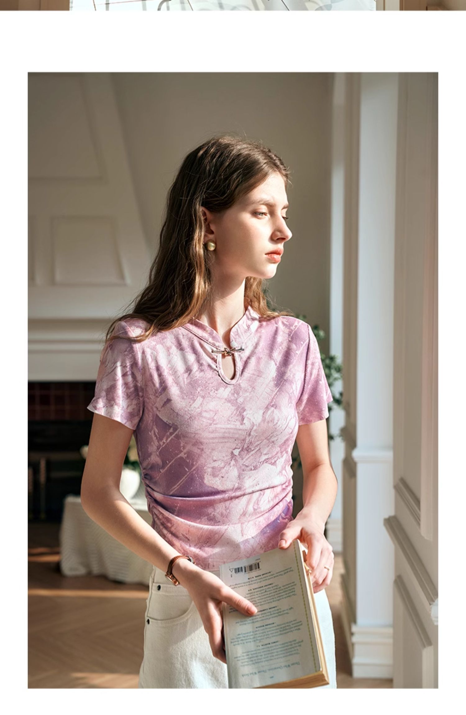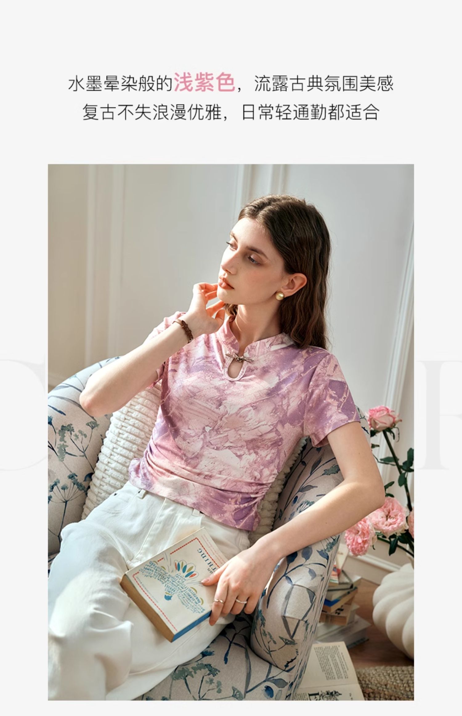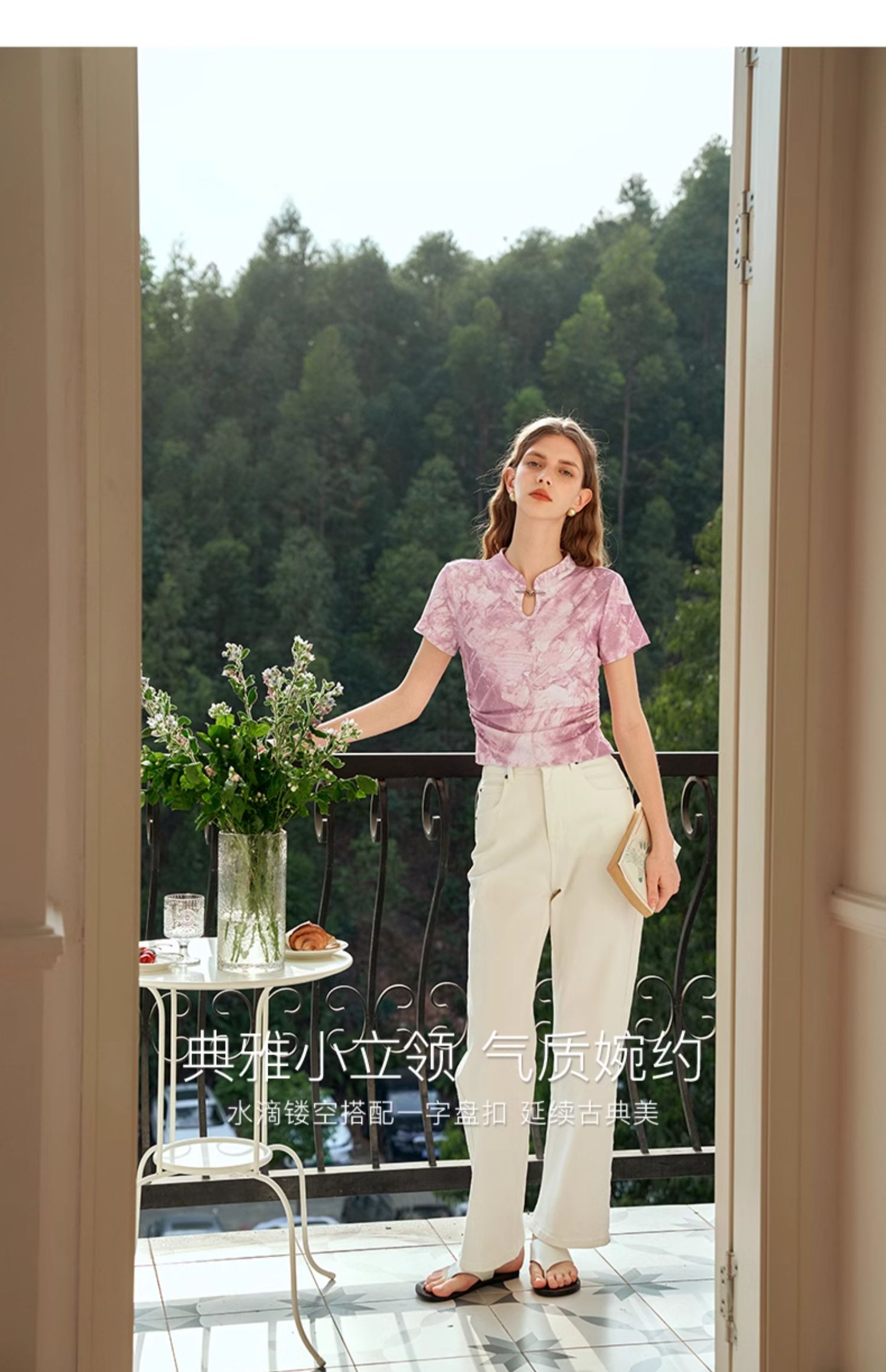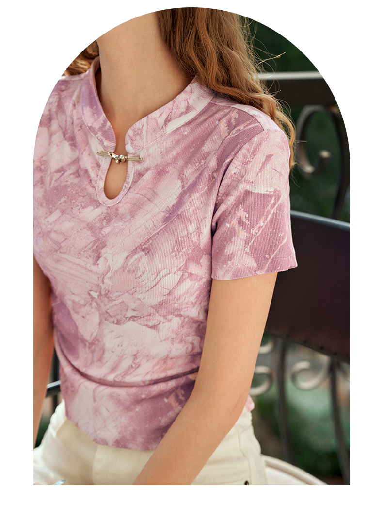 OLrain欧芮儿国风立领短袖T恤女夏季2024年新款高级感水墨画上衣