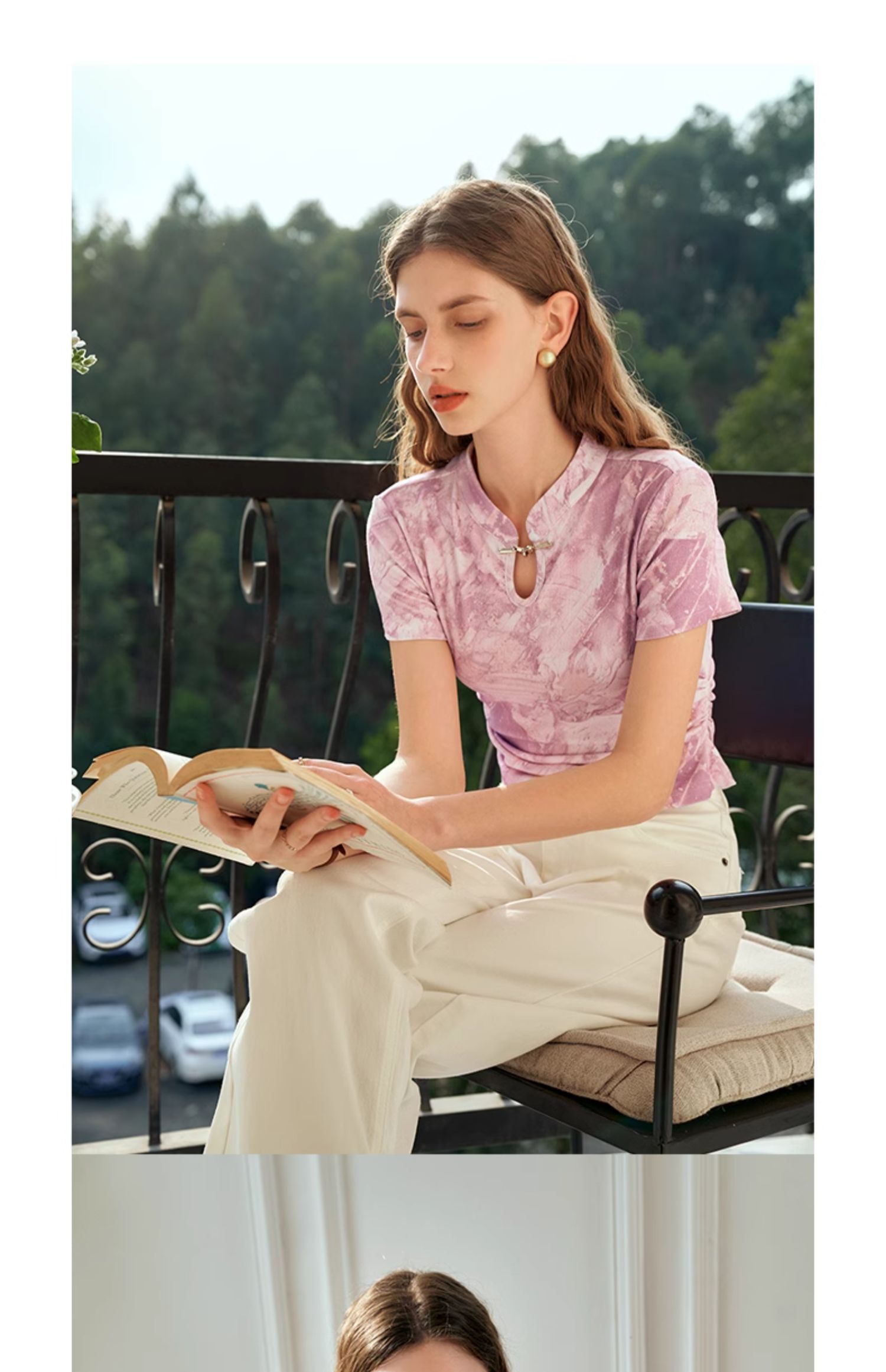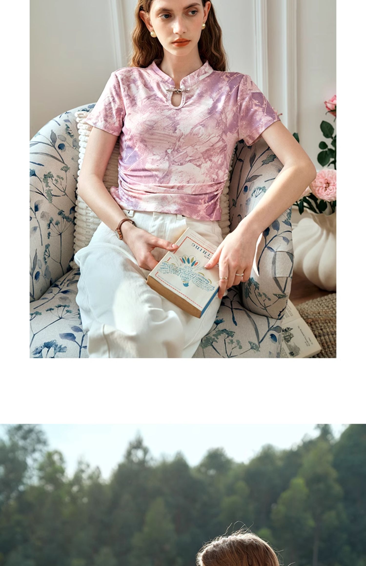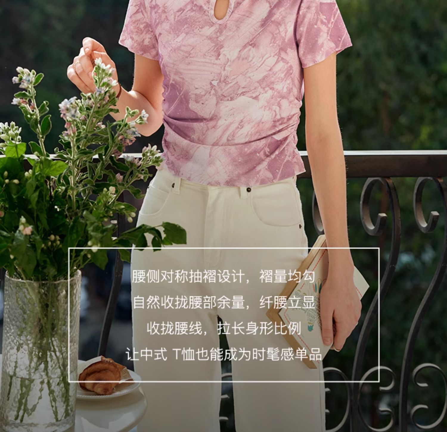OLrain欧芮儿国风立领短袖T恤女夏季2024年新款高级感水墨画上衣