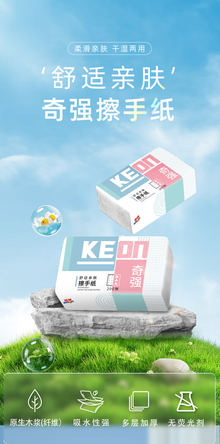 【分仓直发包邮】奇强牌擦手纸200张/包*2包