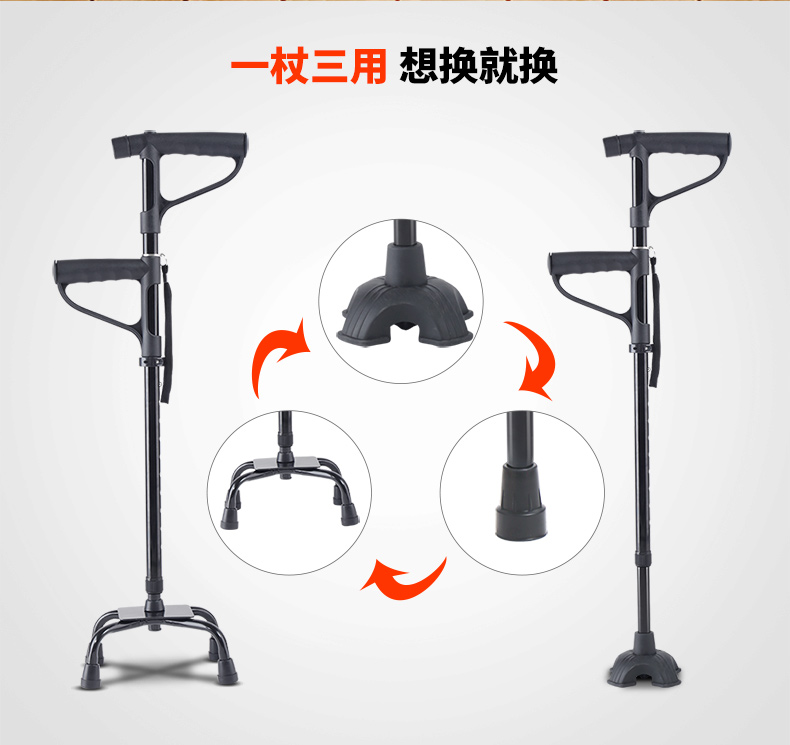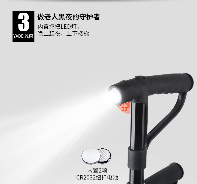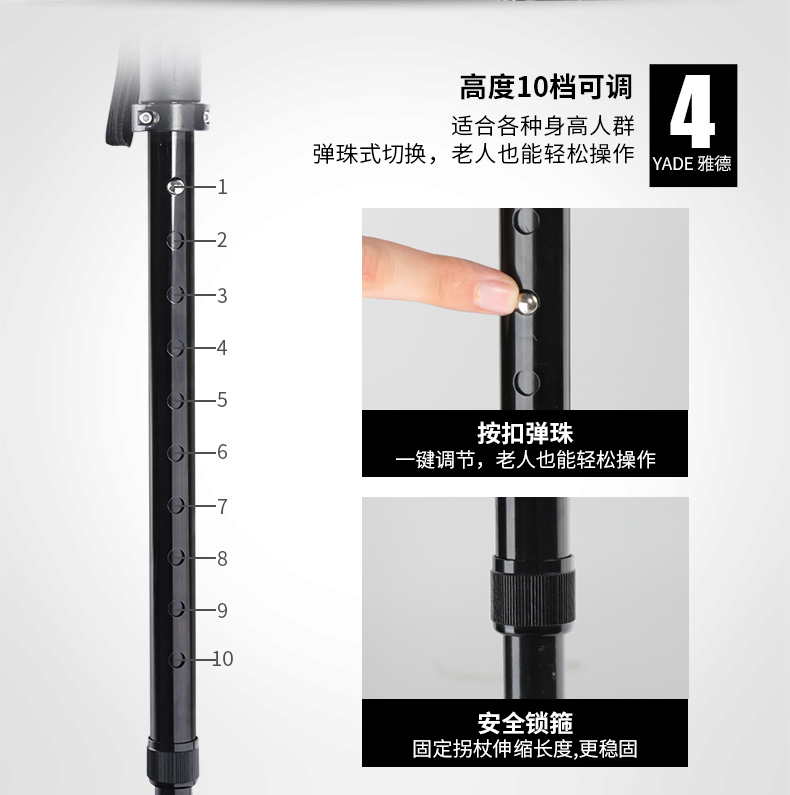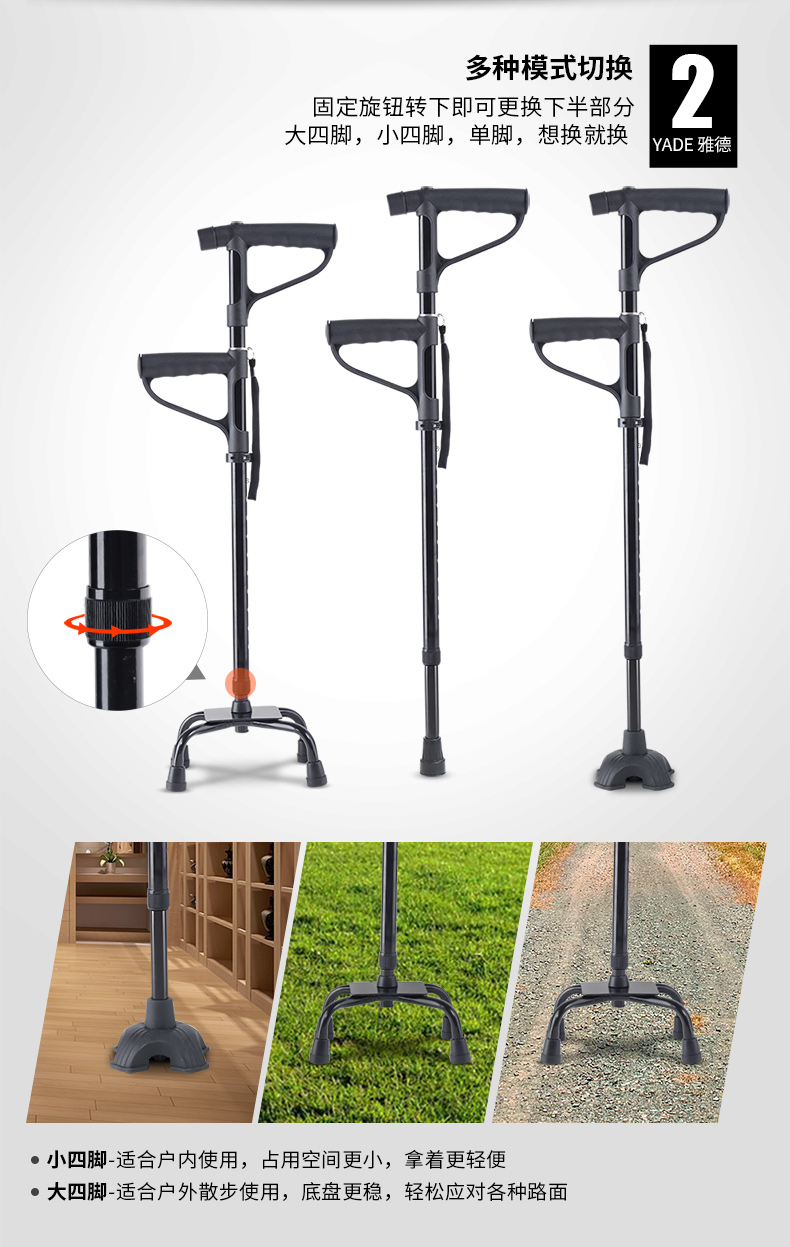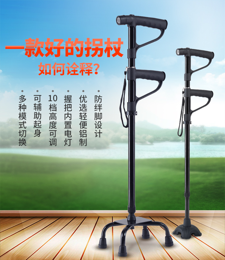 可靠拐棍YC812GB 老人手杖四脚拐扙 多功能拐杖防滑轻便捌杖残疾人助行器起身